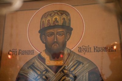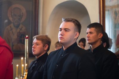 Его Высокопреосвященству сослужили секретарь Татарстанской митрополии иеромонах Кирилл (Корытко), настоятель Иоанно-Предтеченского монастыря иеромонах Гурий (Ананьев), руководитель сектора приходского просвещения Синодального отдела религиозного образования и катехизации иеромонах Геннадий (Войтишко), руководитель отдела религиозного образования и катехизации Казанской епархии протоиерей Андрей Лосык, ключарь Благовещенского собора Казанского кремля иерей Виктор Бельских, настоятель храма праведного Иоанна Кронштадтского при Казанской духовной семинарии иеромонах Алексий (Яцейко).