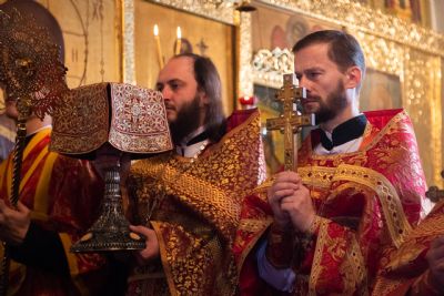 В завершение богослужения духовенство перед праздничной иконой пропело славление Иоанну Предтече.