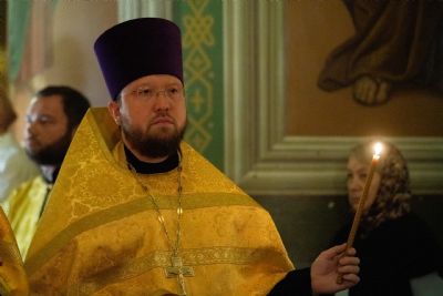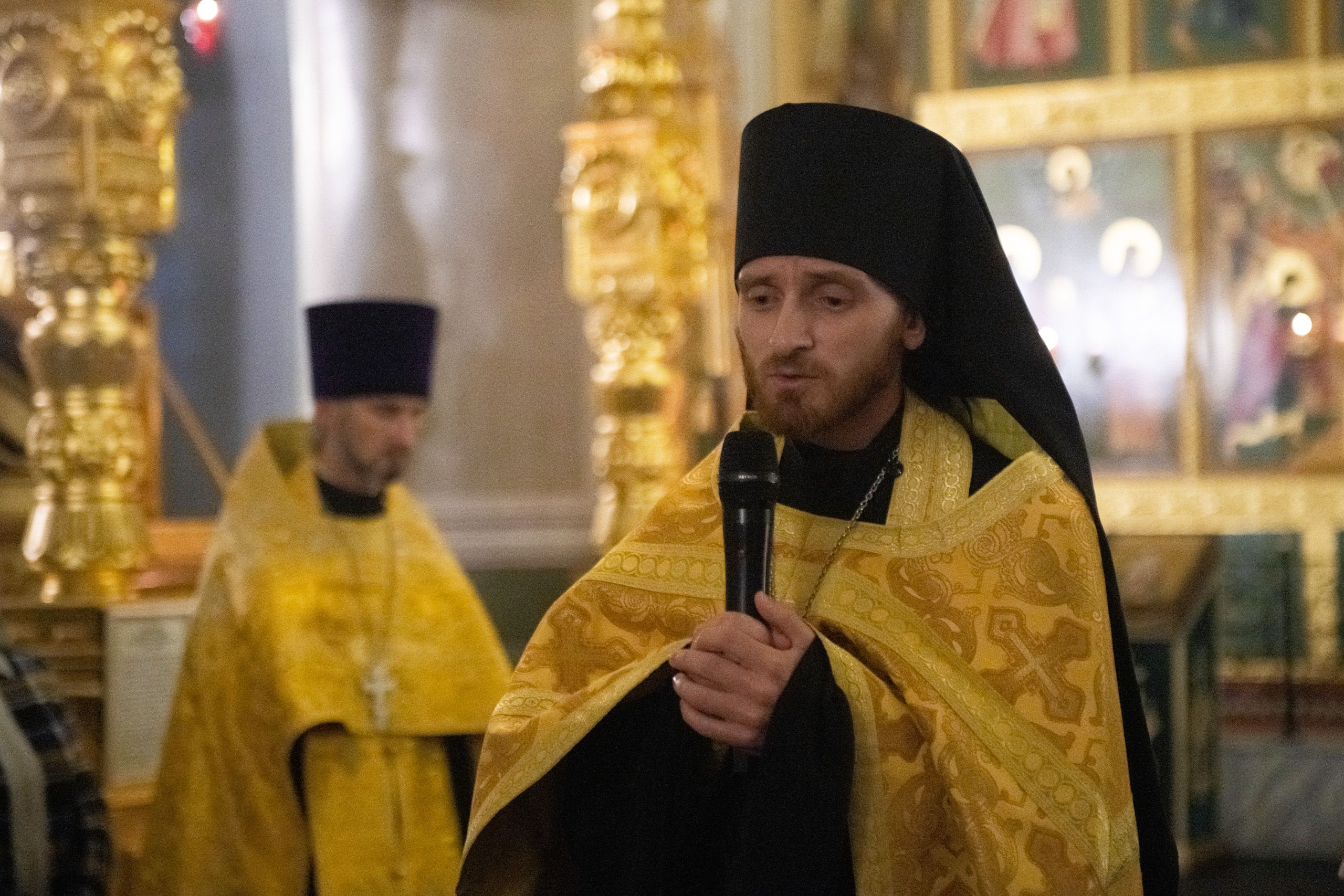 На полиелее после евангельского чтения проповедь произнёс иеромонах Гавриил (Федотов).