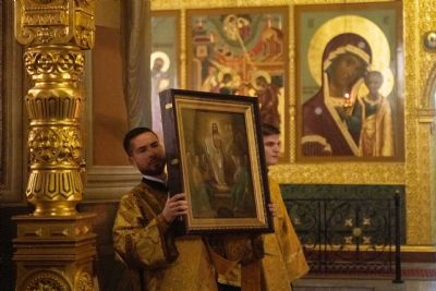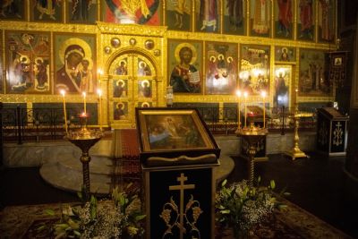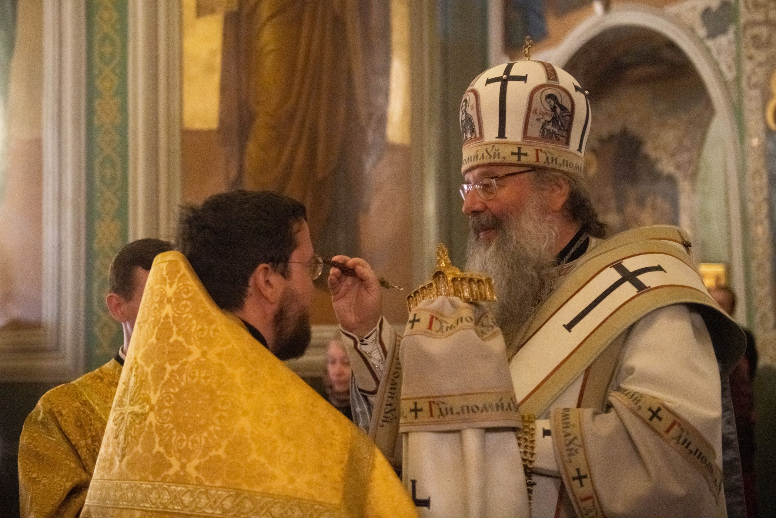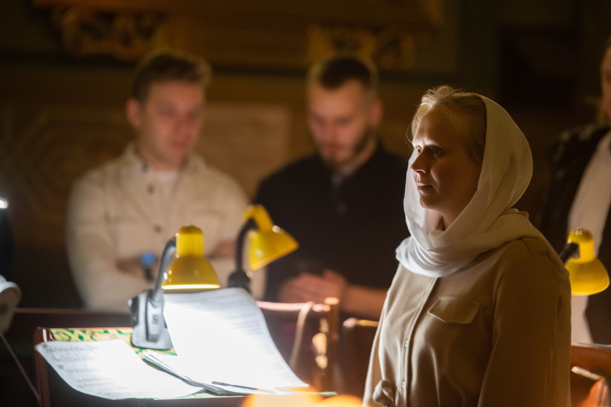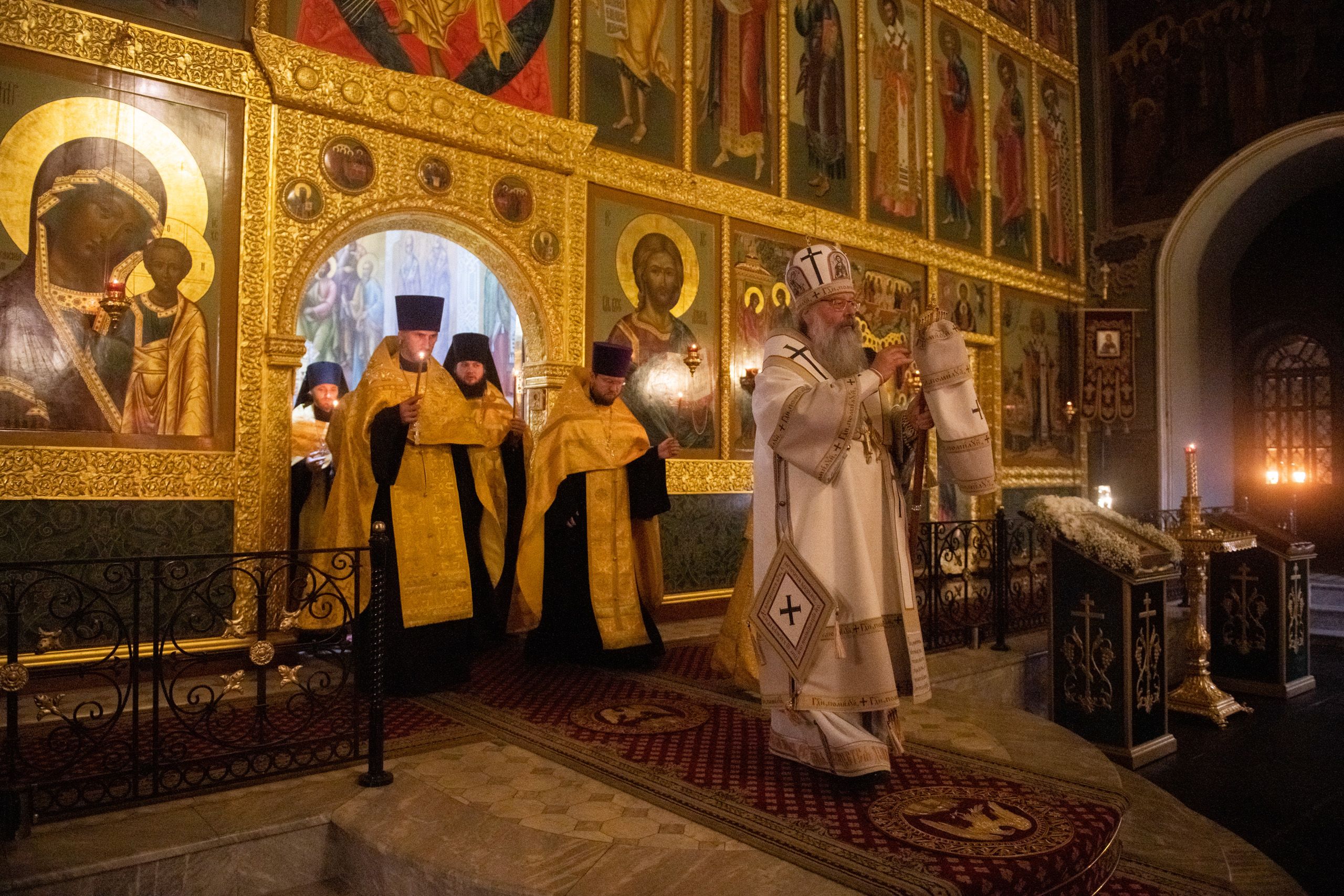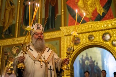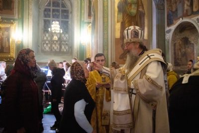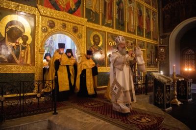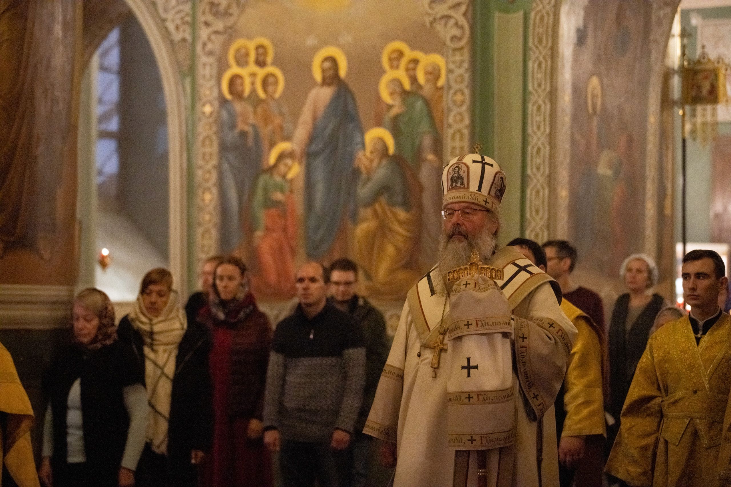 Богослужебные песнопения исполнялись архиерейским хором под управлением Марины Литвиненко.