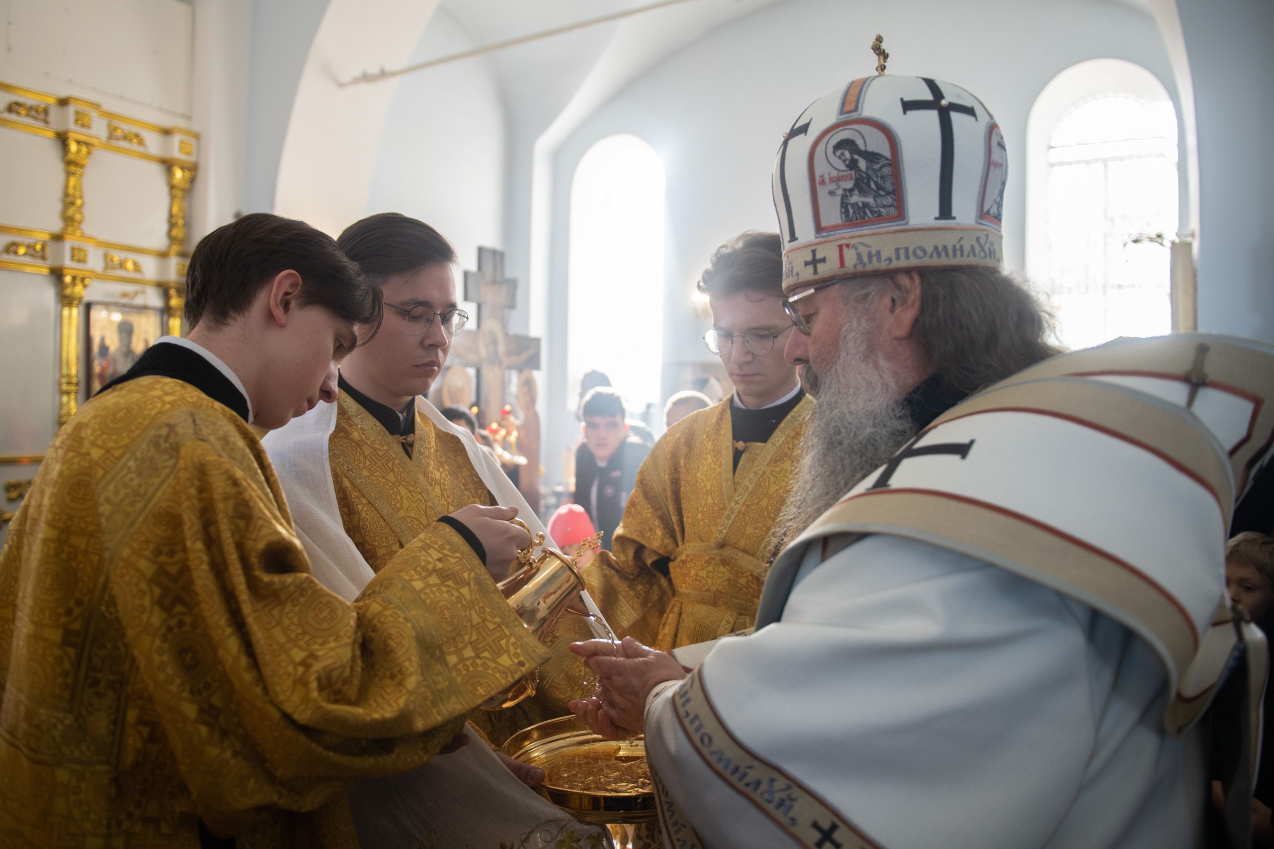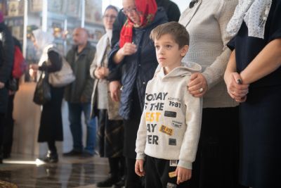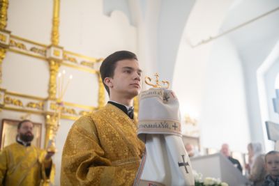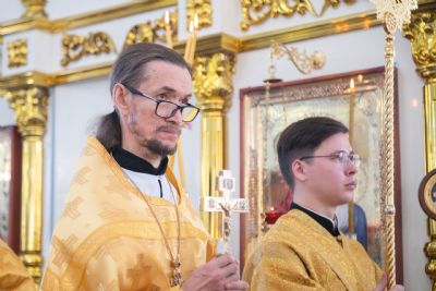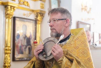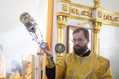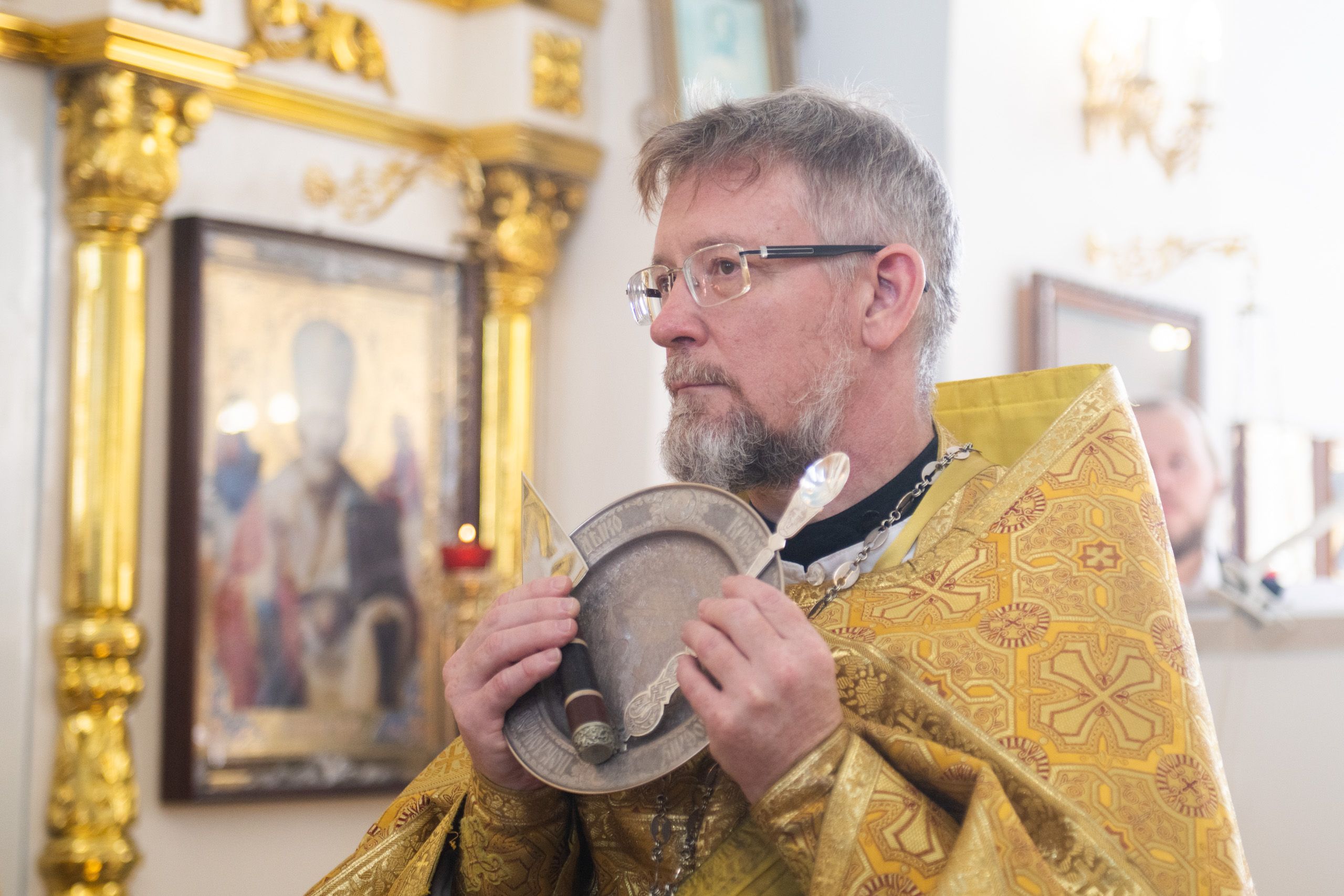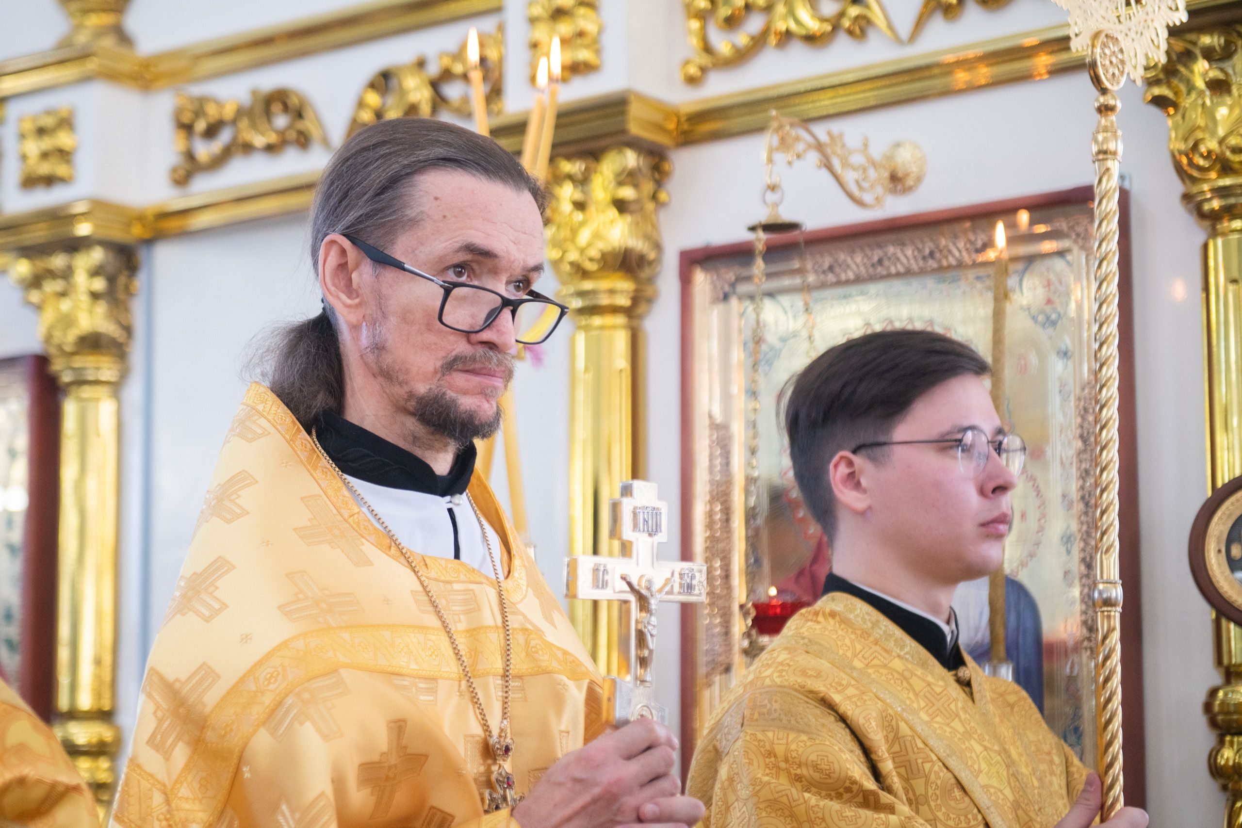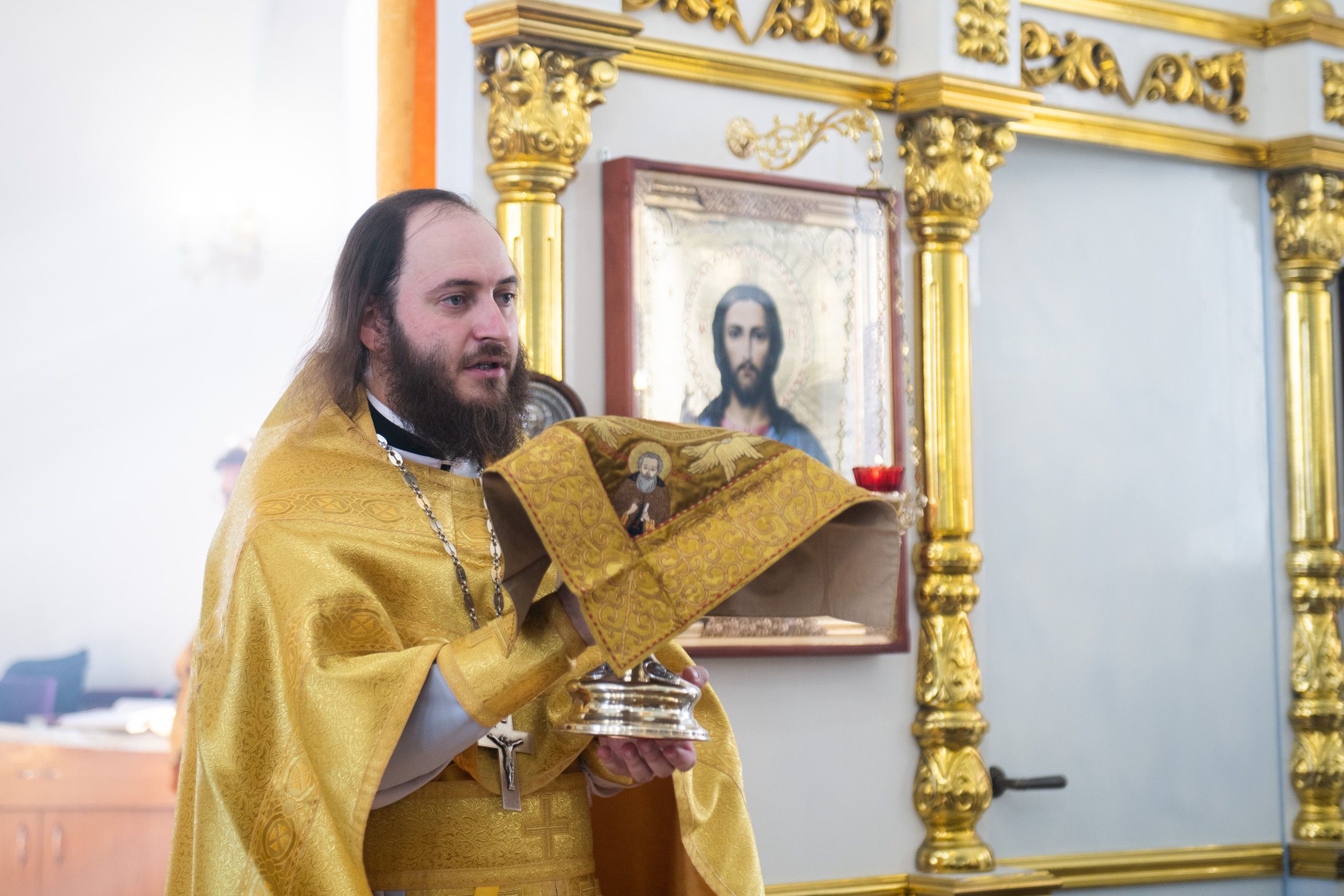 На мирной и сугубой ектениях были вознесены особые молитвенные прошения о наших военнослужащих и молитва о мире. По запричастном стихе проповедь произнёс протоиерей Святослав Мирганиев.