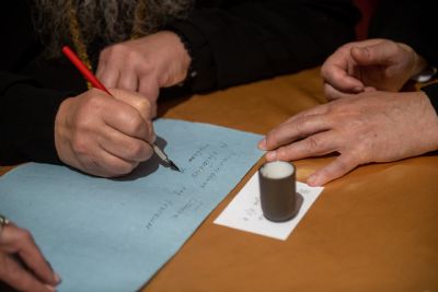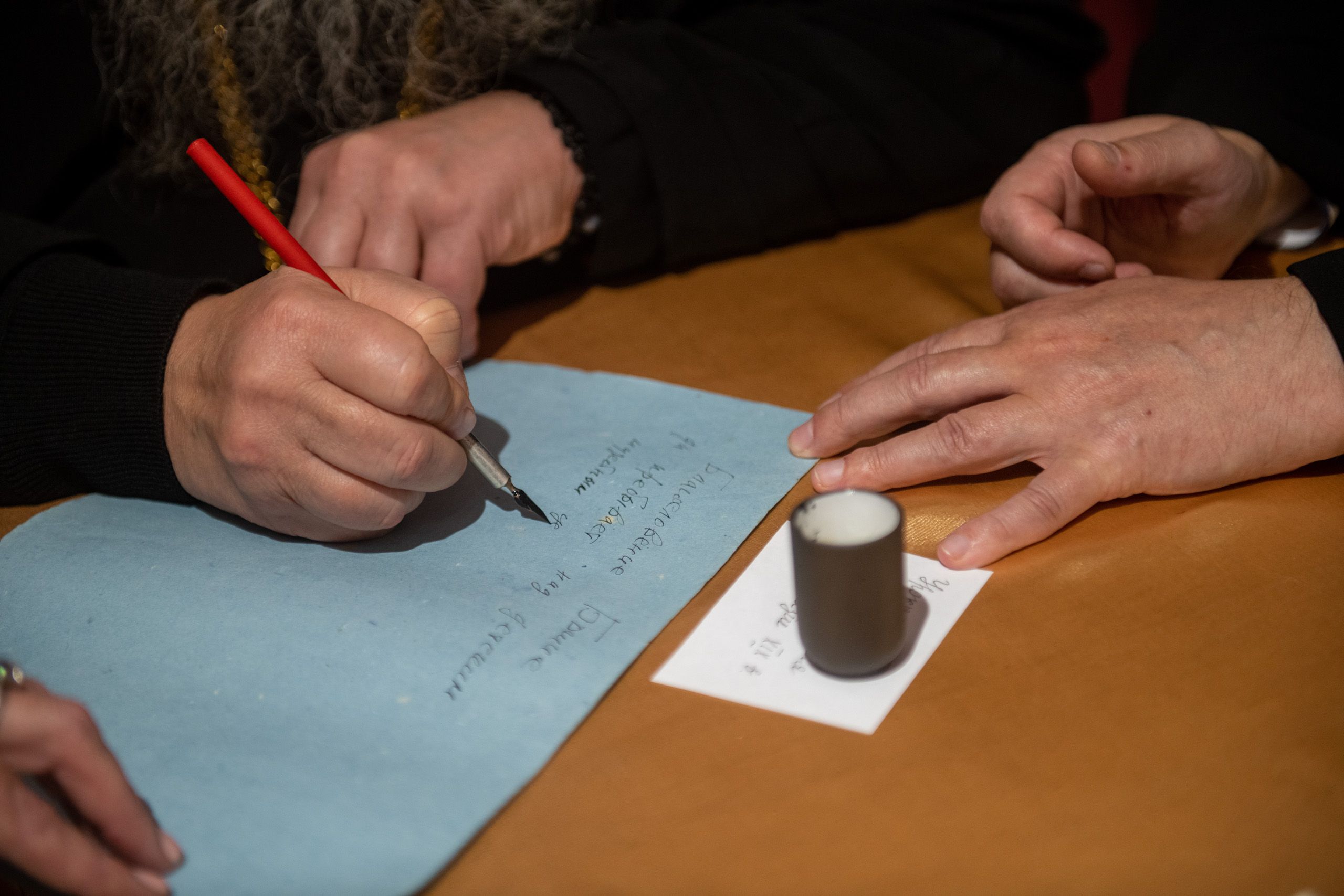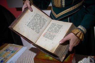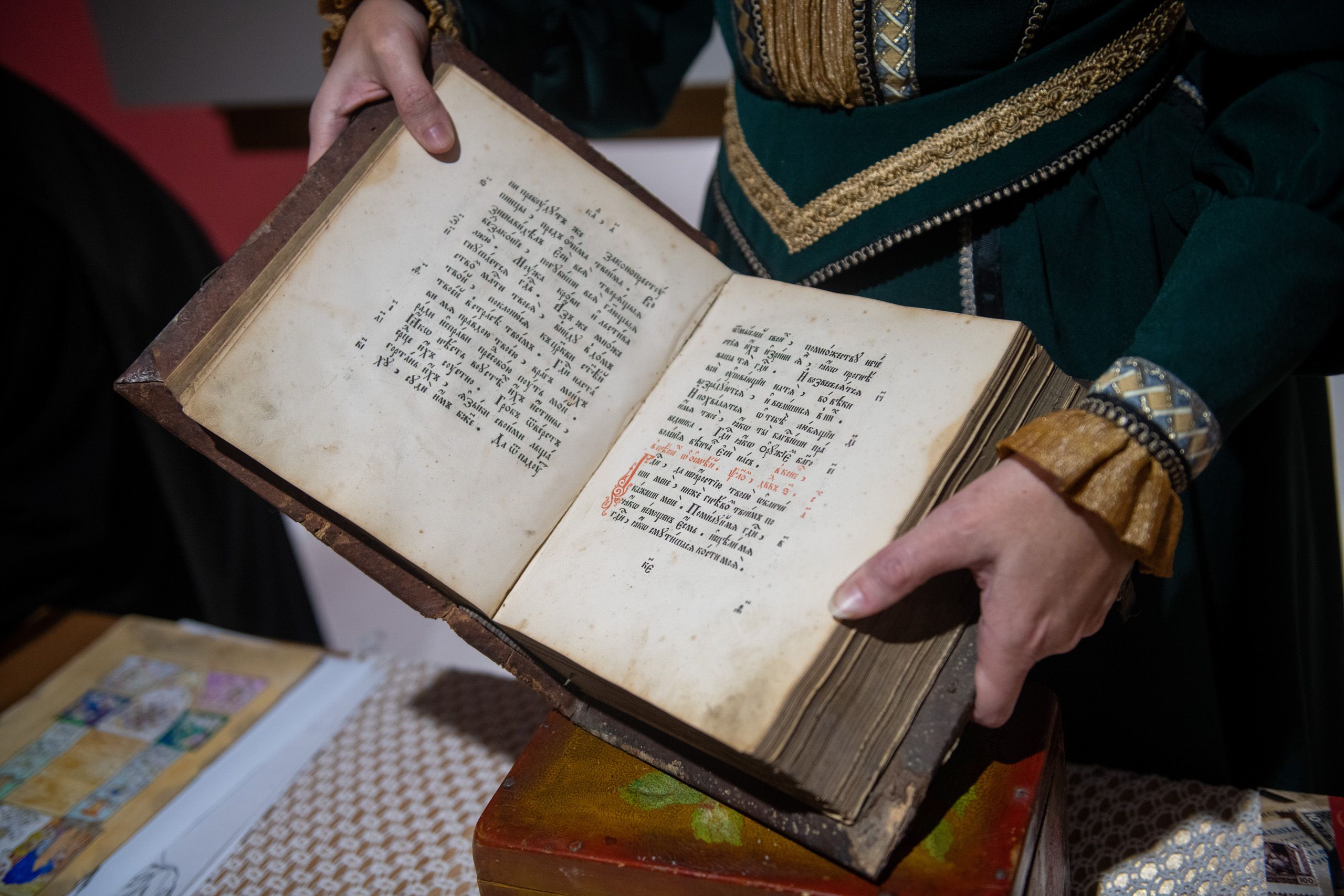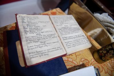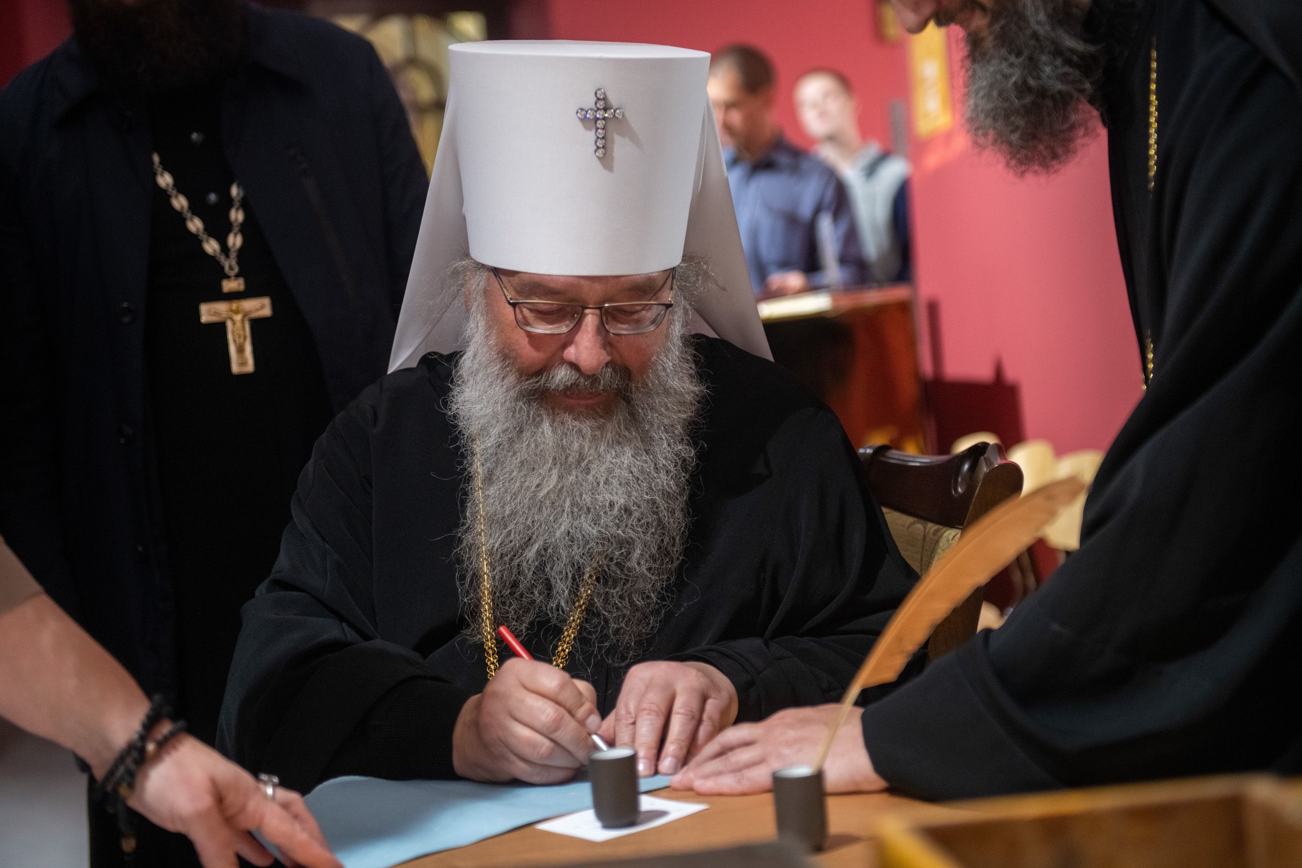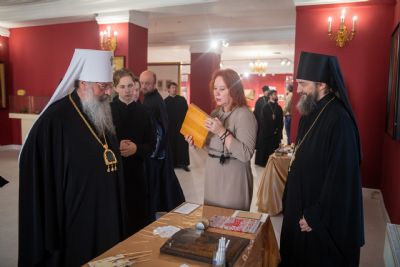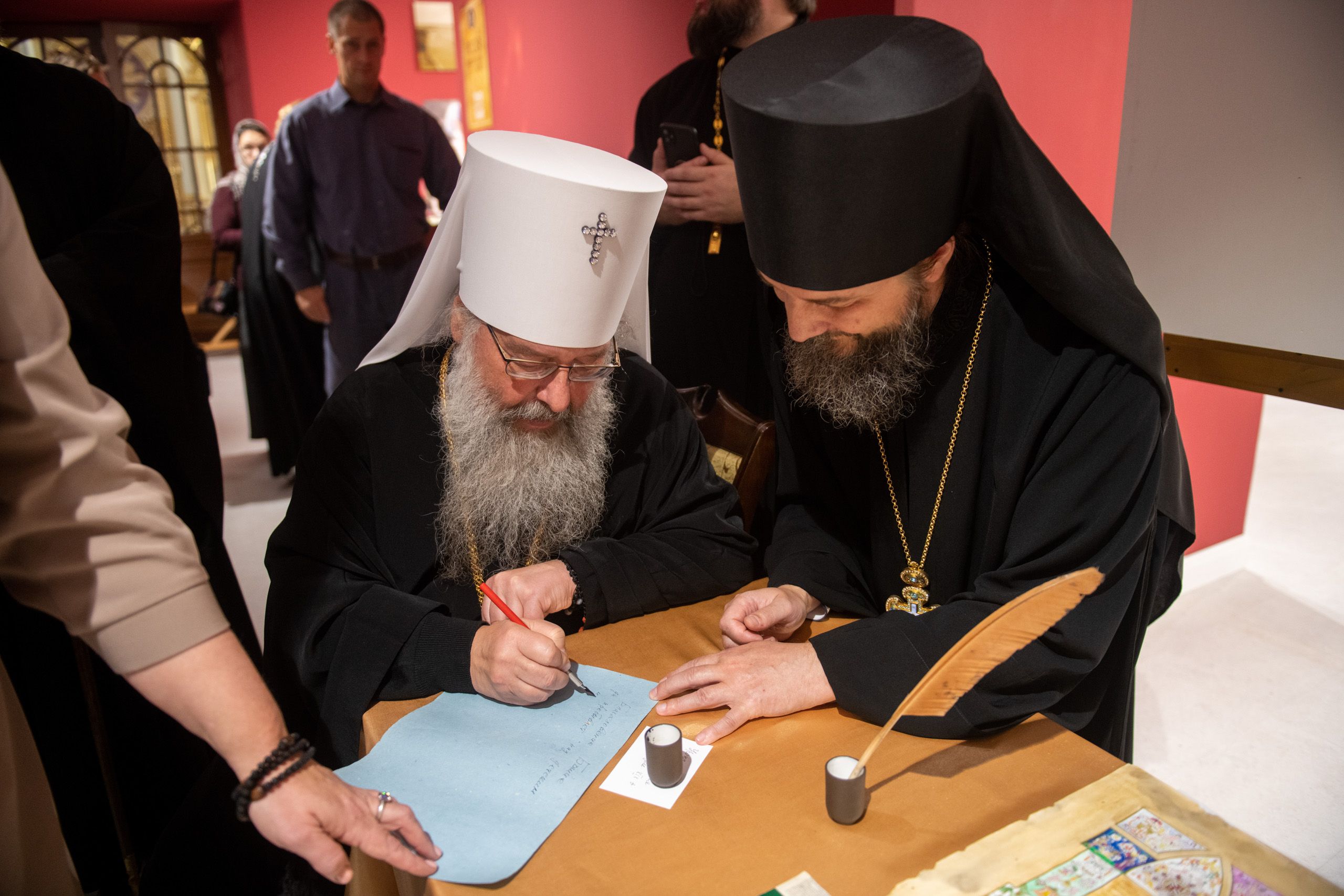 Затем правящий архиерей осмотрел музейные площадки. Здесь представлены предметы, рассказывающие об иконописи, церковной каллиграфии и рукодельном творчестве. На одной из площадок архиерей пером и чернилами оставил запись с благопожеланием.