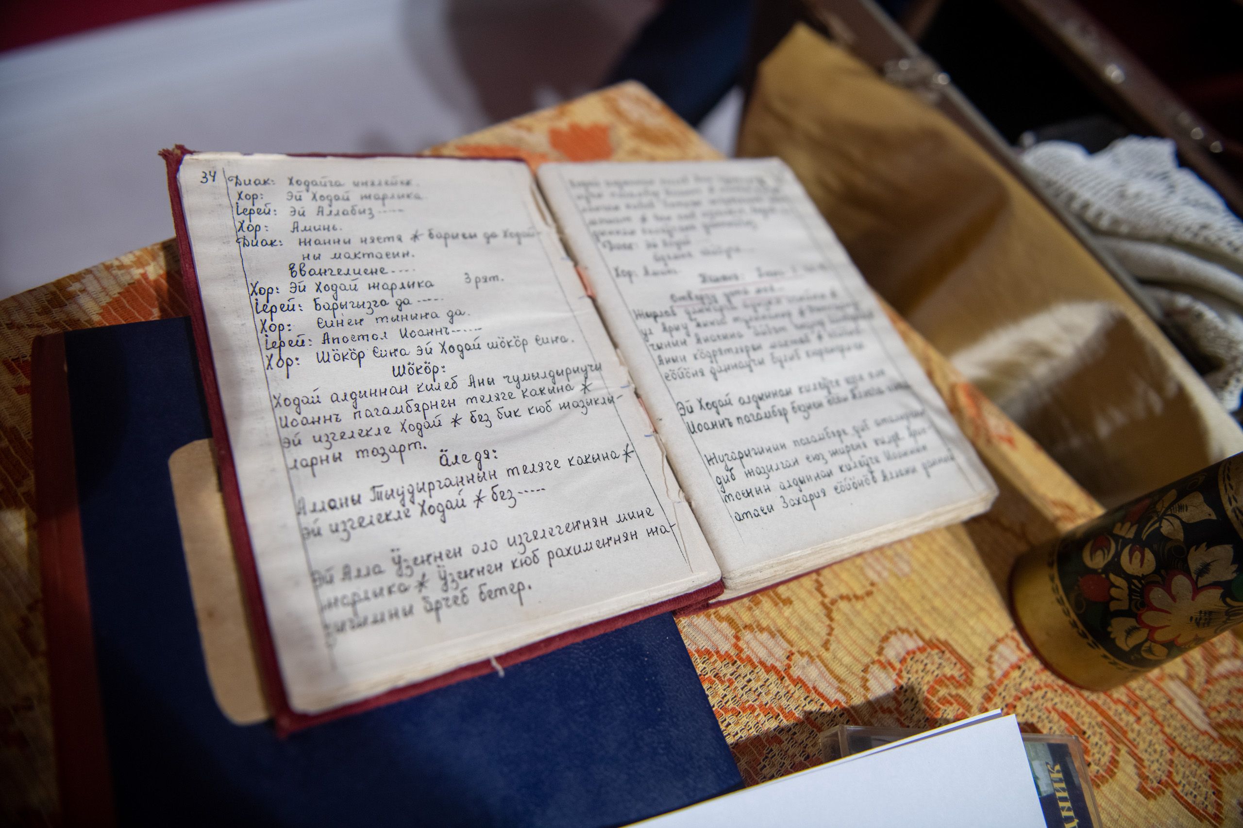 Его Высокопреосвященство сопровождали составители епархиальной музейной коллекции иеромонах Аркадий (Логинов) и Оксана Иванова, секретарь Татарстанской митрополии иеромонах Кирилл (Корытко), наместник Казанского Богородицкого монастыря игумен Марк (Виленский), руководитель отдела религиозного образования и катехизации Казанской епархии протоиерей Андрей Лосык, педагоги воскресных школ.