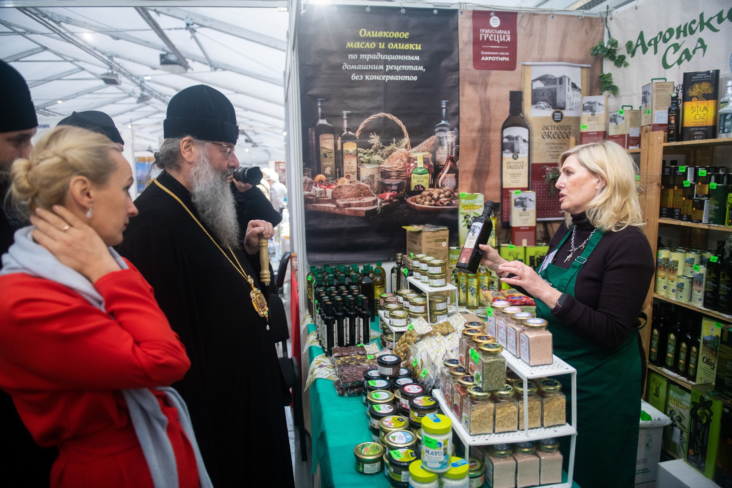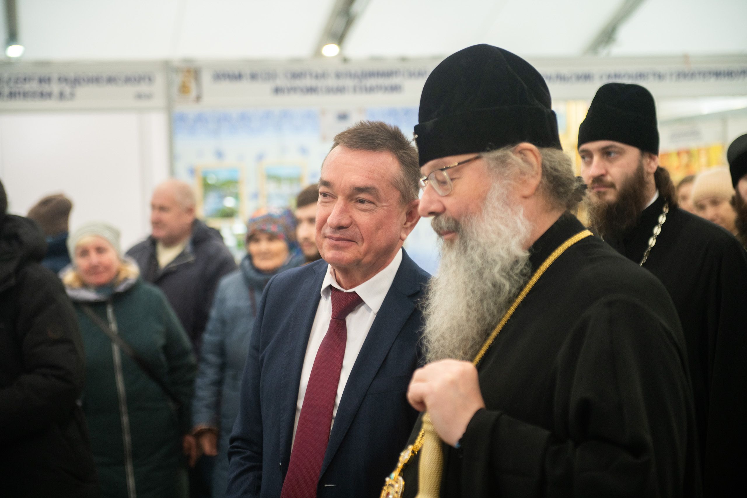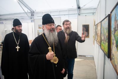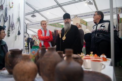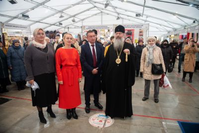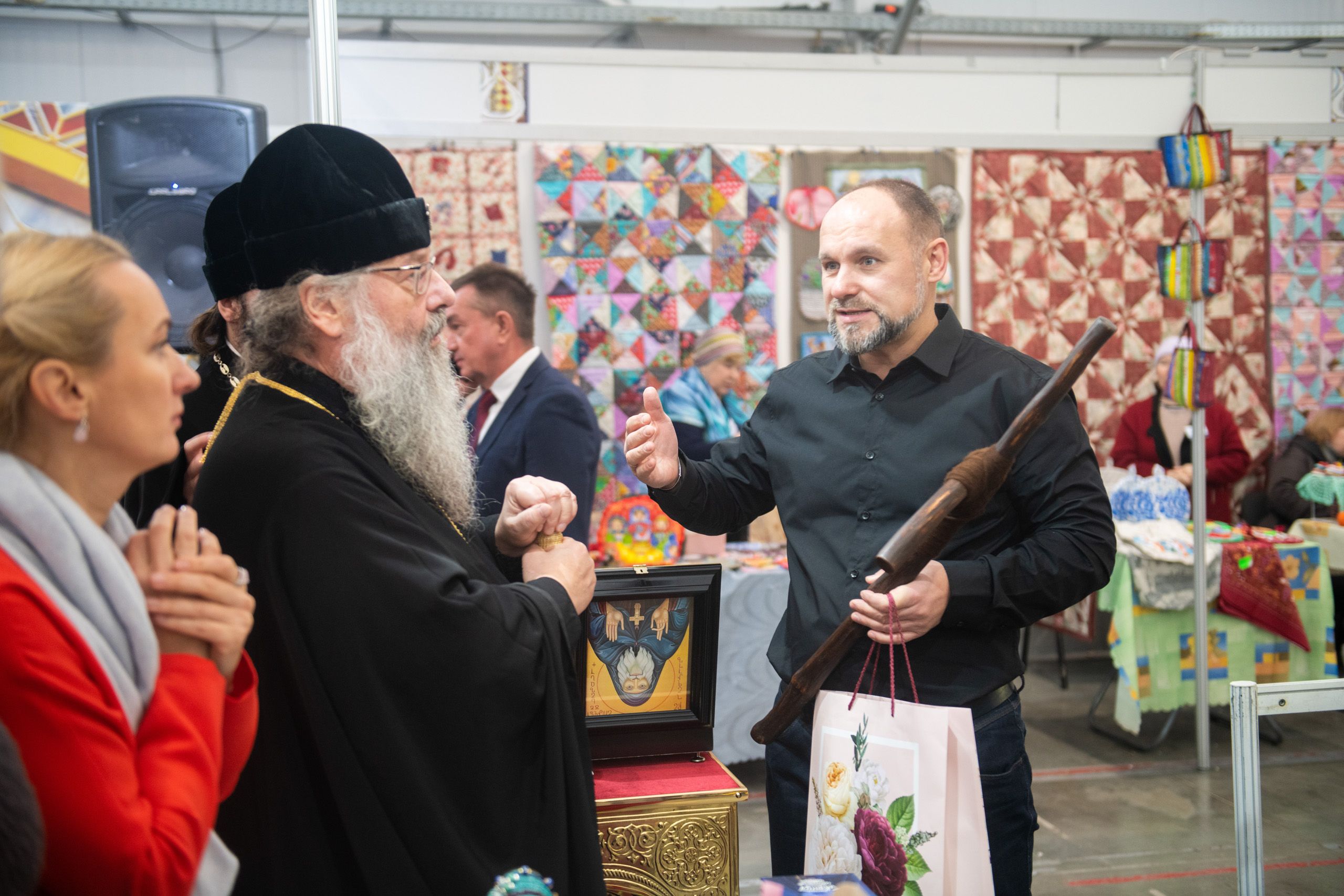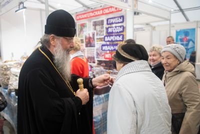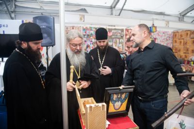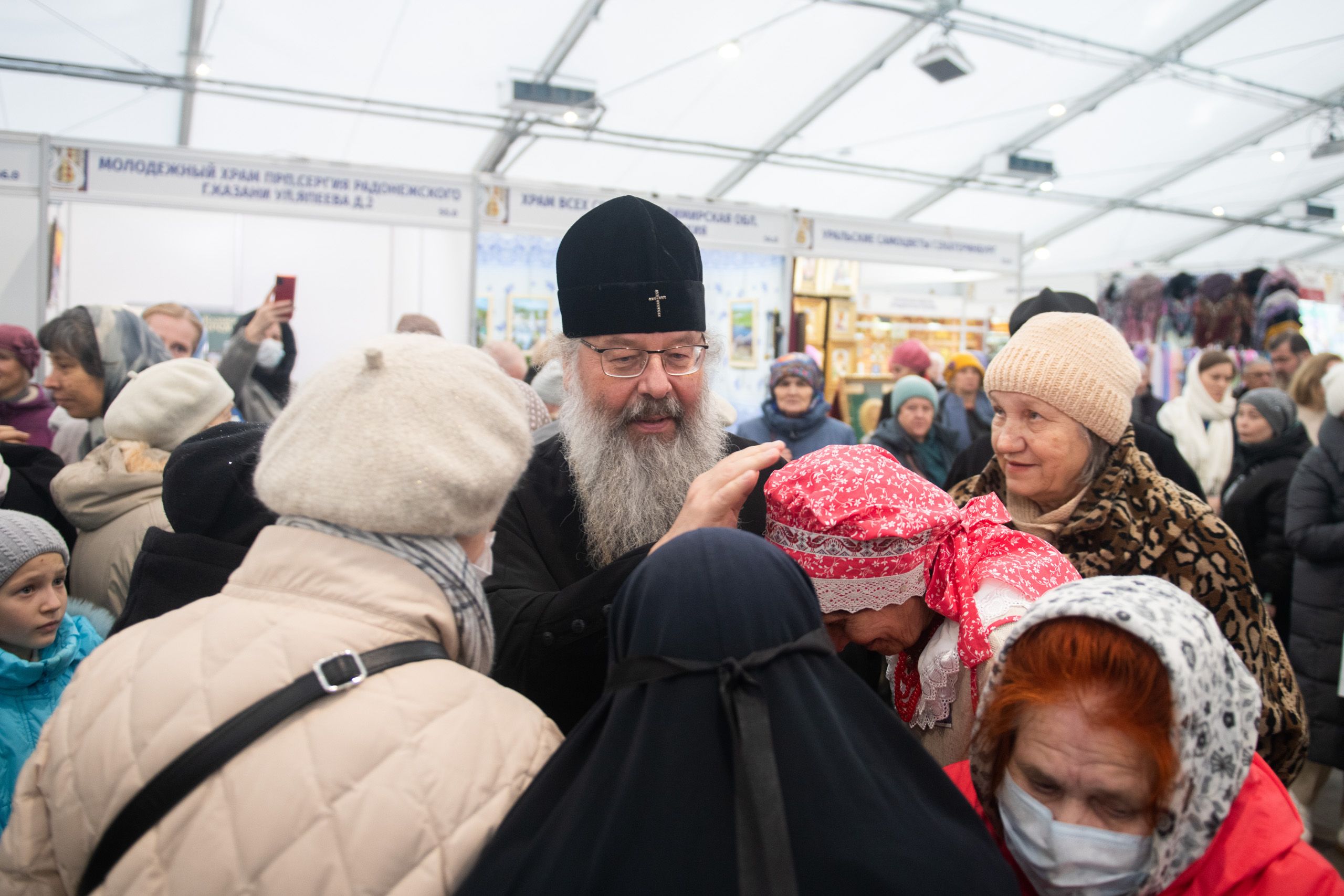 Владыка Кирилл поклонился представленным на ярмарке святыням, пообщался с посетителями выставки и преподал благословение.