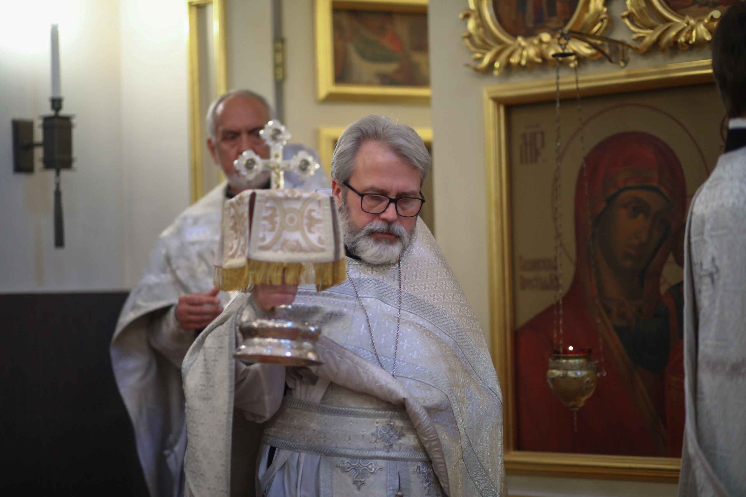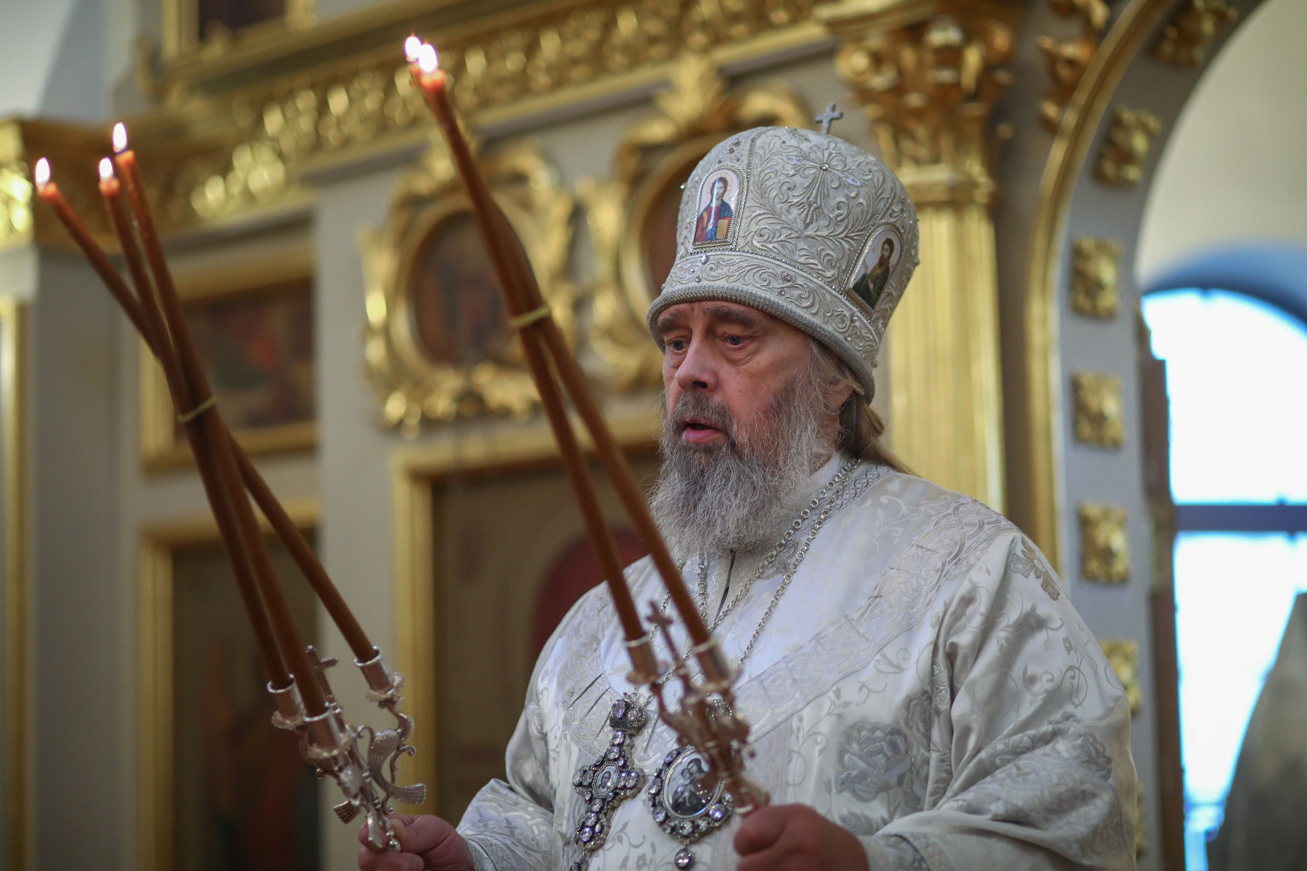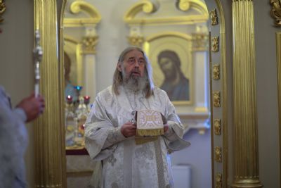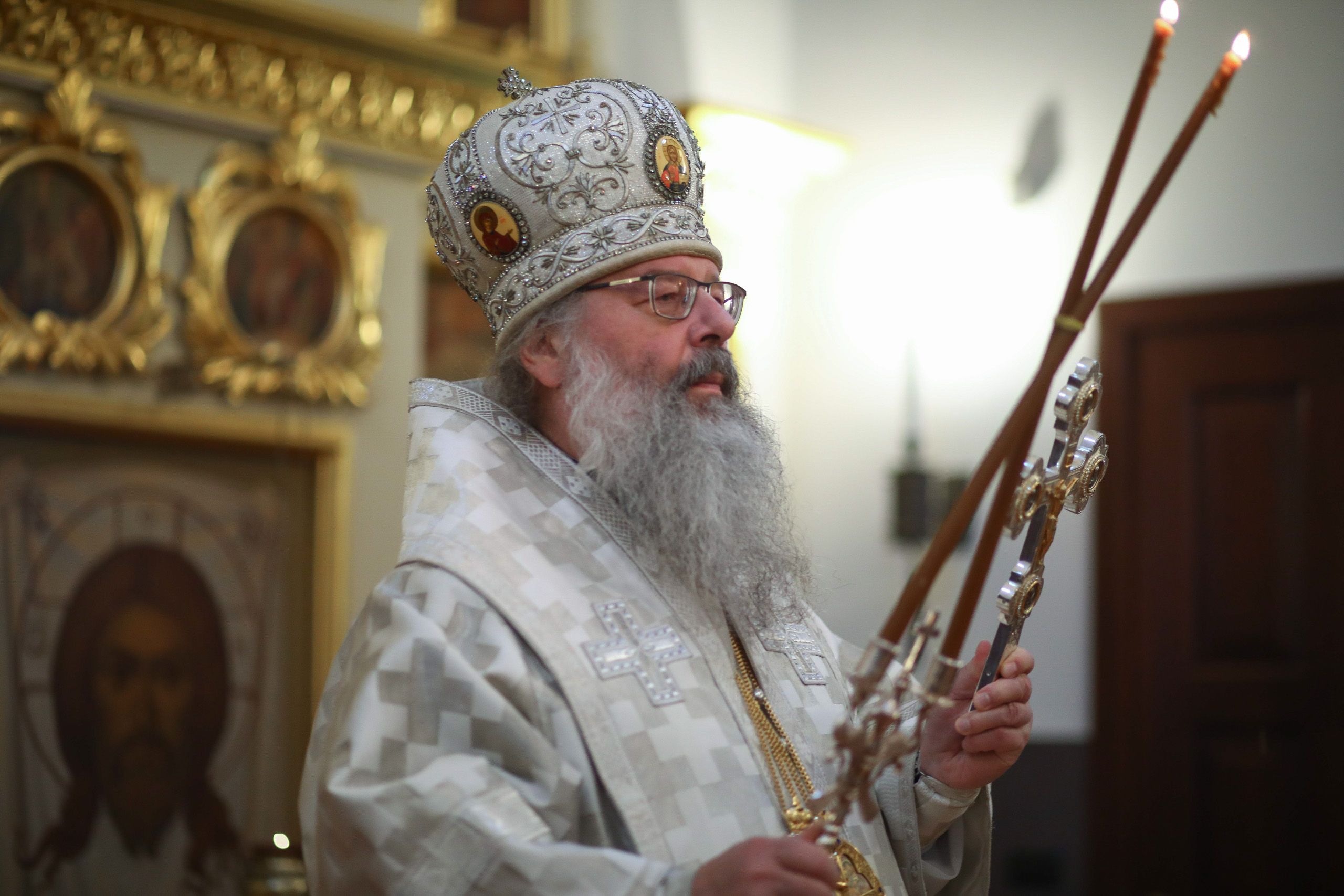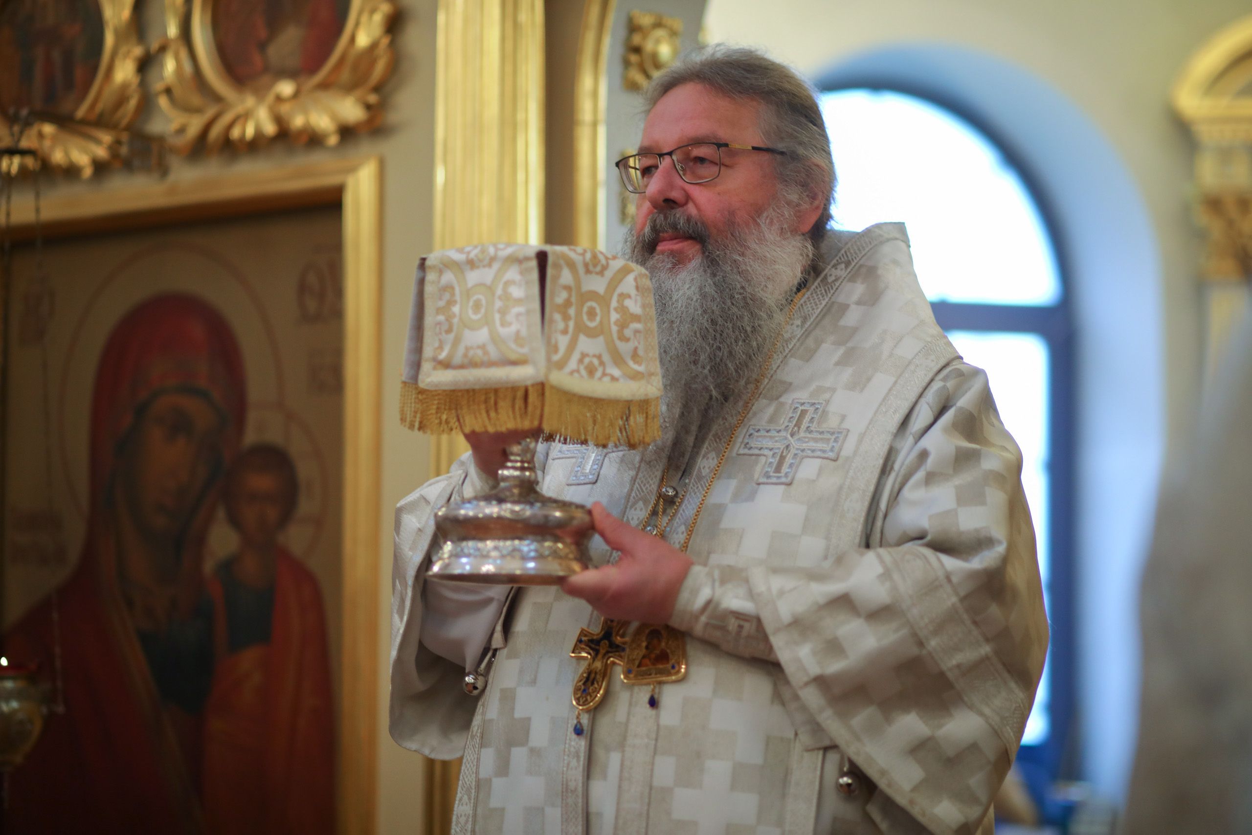 Владыка Алексий поприветствовал присутствовавшего на богослужении строителя Смоленского храма Бориса Сокола и поблагодарил верующих за молитвы.