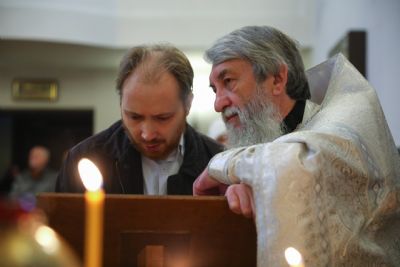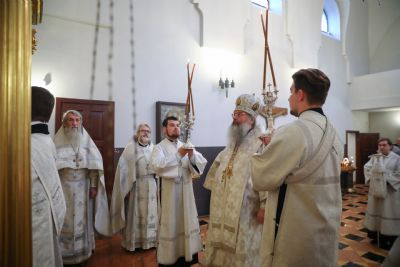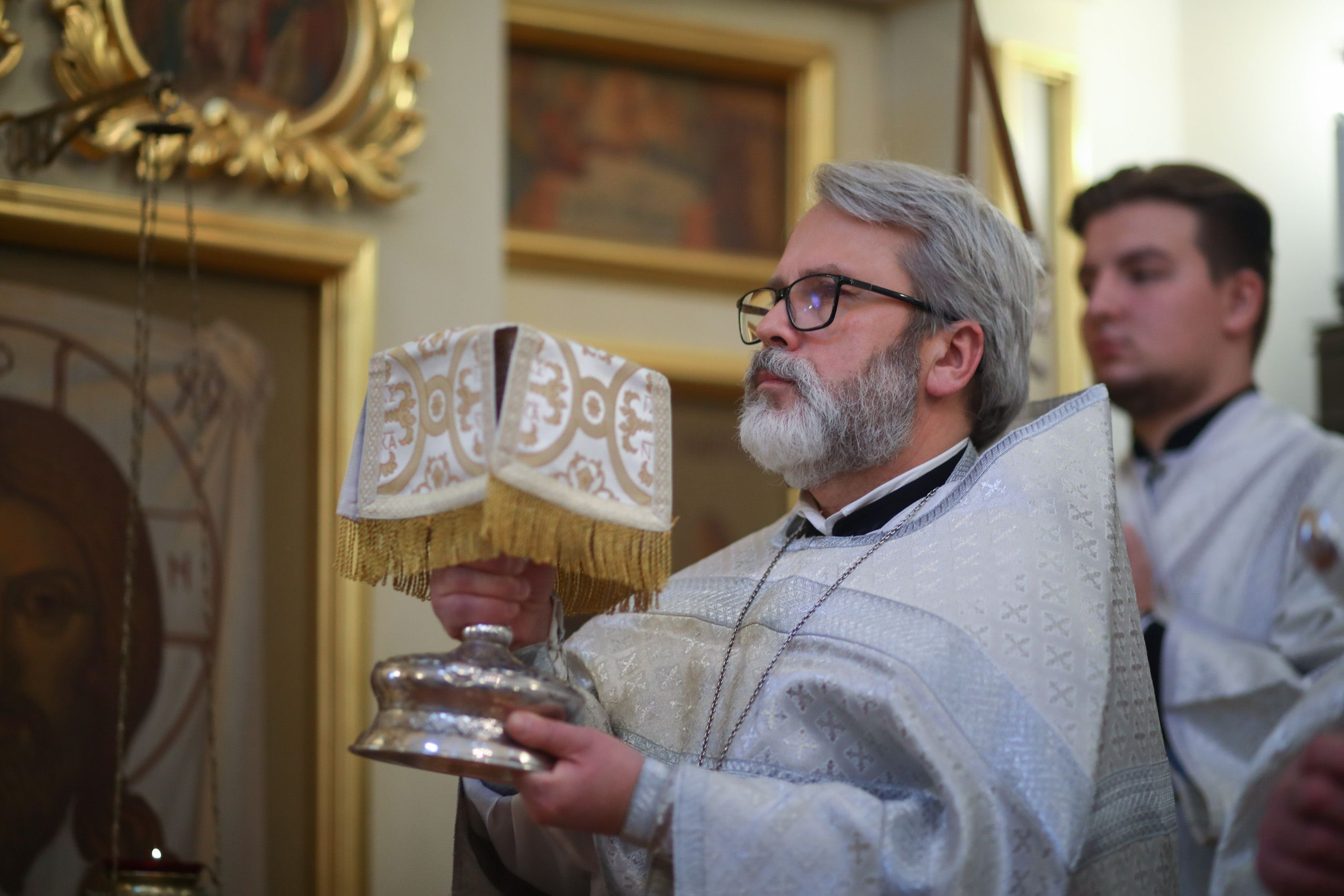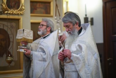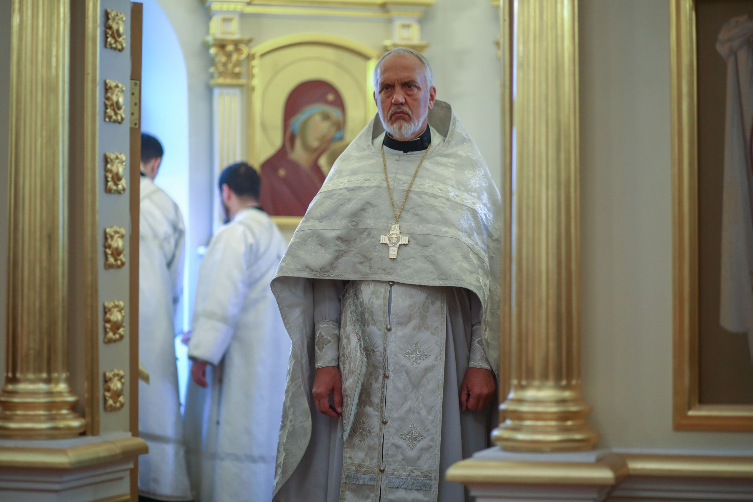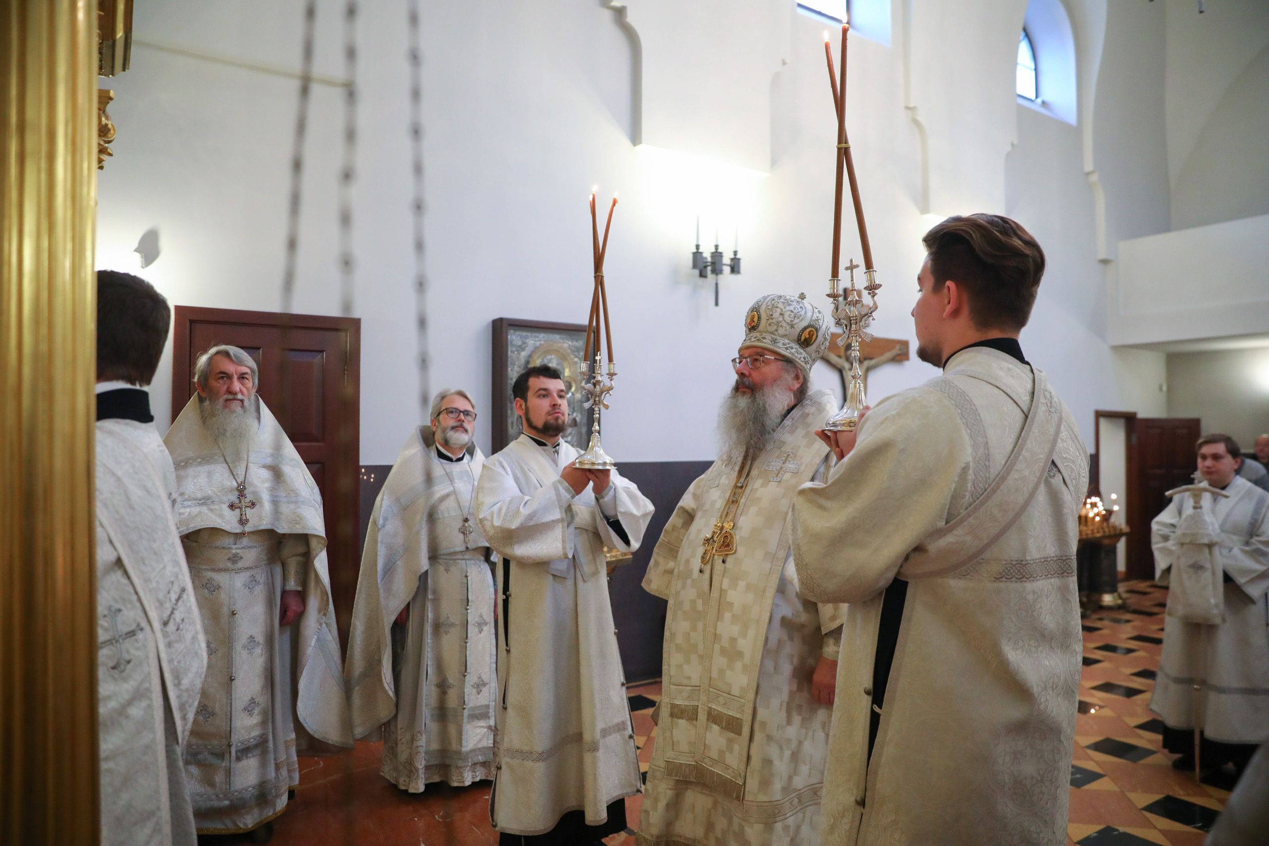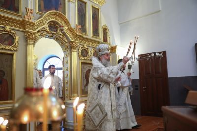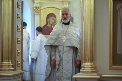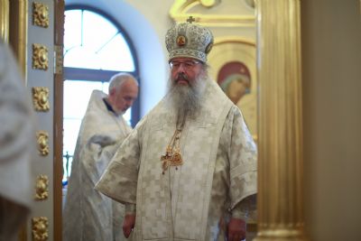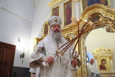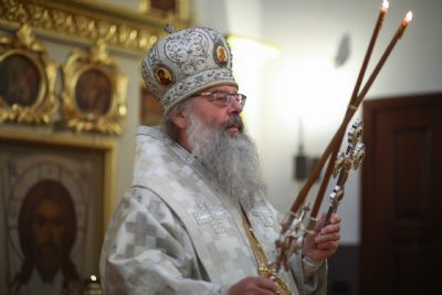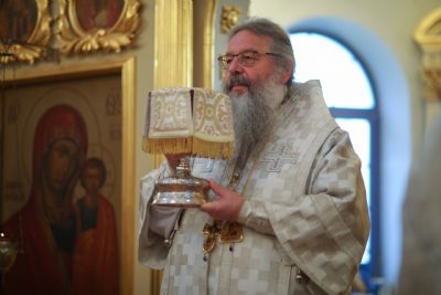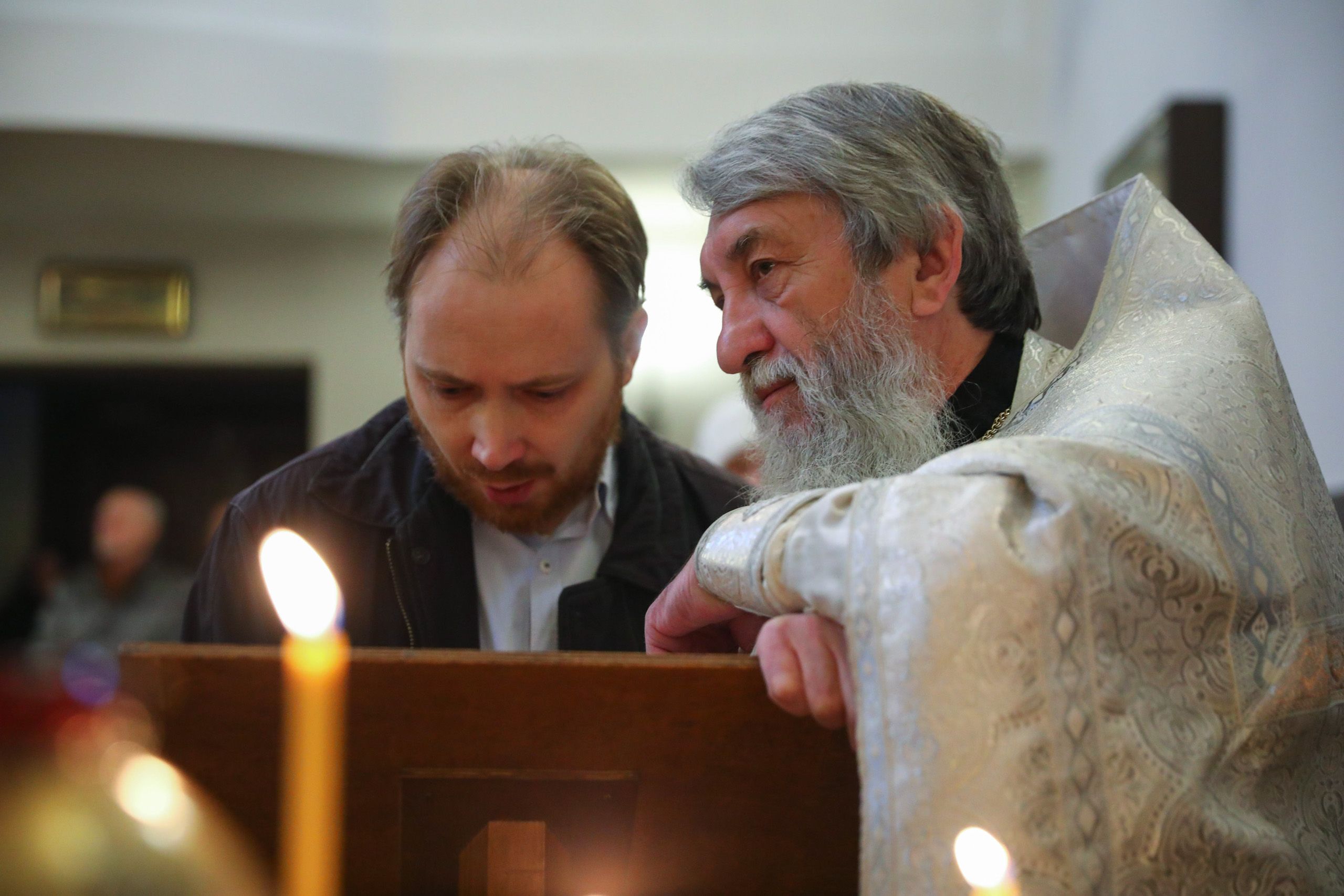 Владыка Алексий поприветствовал присутствовавшего на богослужении строителя Смоленского храма Бориса Сокола и поблагодарил верующих за молитвы.