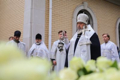 По окончании богослужения архиереи совершили панихиду по приснопамятным жителям города Тулы Анне и Романе Сокол, погребённым на территории церкви.