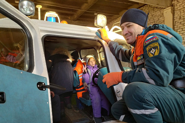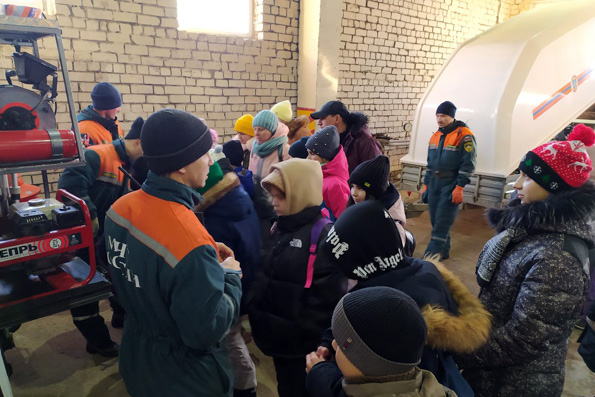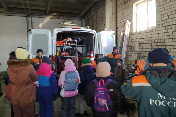 Дети понаблюдали за работой оперативного дежурного, познакомились со служебными собаками и пообщались с кинологом. Воспитанникам клуба продемонстрировали специальную спасательную технику. Юных спасателей обучили технике броска спасательного круга пострадавшему на водоёме, а также правилам использования тактических носилок.