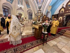 11 февраля 2023 года, в канун Недели о блудном сыне, Собора вселенских учителей и святителей Василия Великого, Григория Богослова и Иоанна Златоустого, митрополит Казанский и Татарстанский Кирилл совершил всенощное бдение в храме мученицы царицы Александры, расположенном на территории Русской духовной миссии в Иерусалиме.