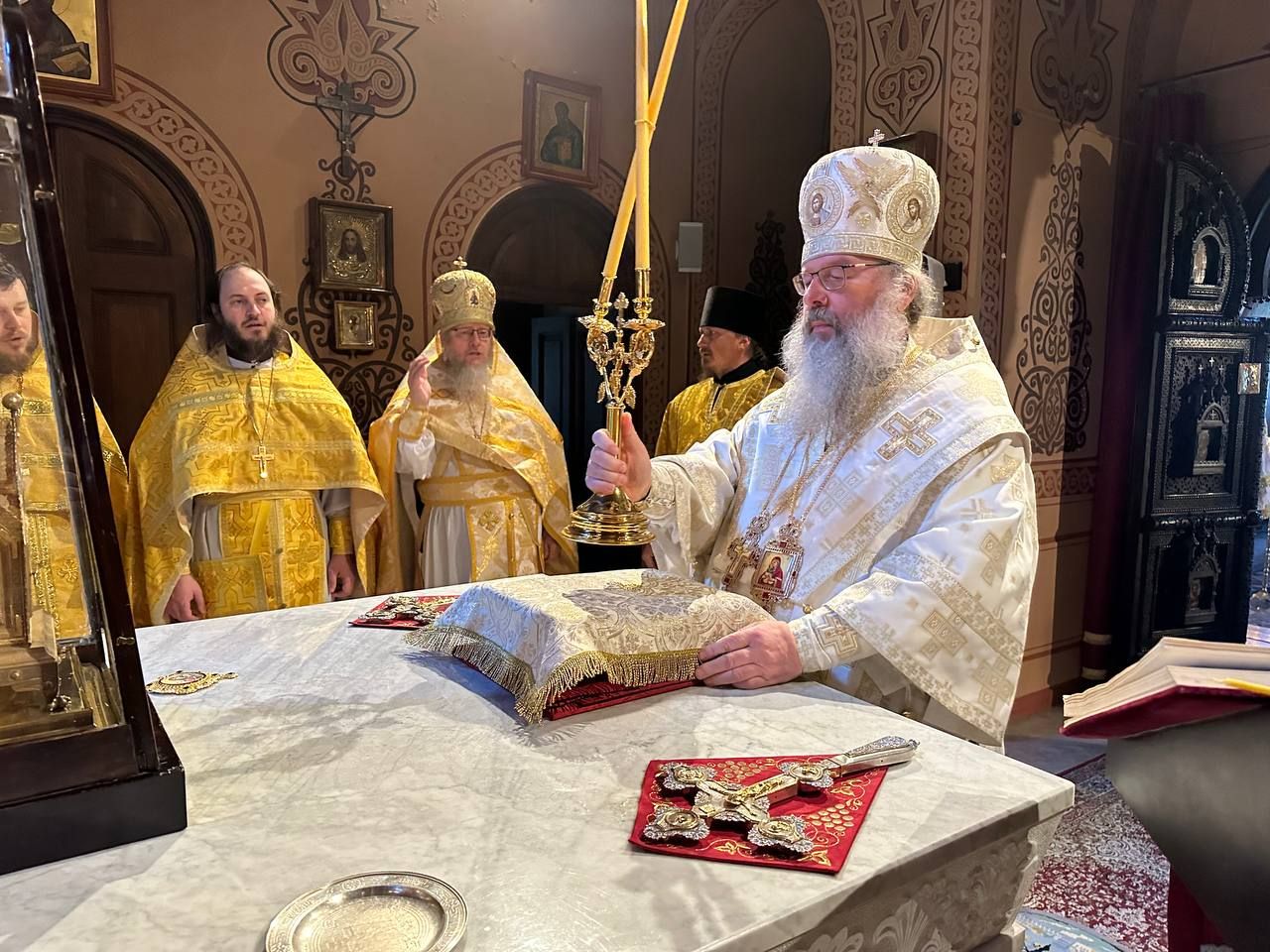 В завершение было совершено славление трём вселенским святителям. Владыка Кирилл прочитал молитву святым.