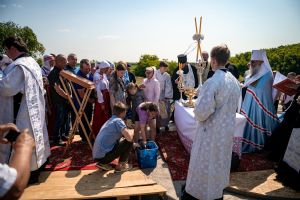 Хотел бы вас попросить сугубо помолиться о том, чтобы здесь был построен дом Божией Матери в образе Казанском. Когда-то это место было освящено этим дивным образом Царицы Небесной. Дай Бог, чтобы мир и благополучие воцарились в нашей жизни, чтобы из неё ушли всякие неправды, злоба, ненависть, чтобы мы были людьми праведными, благочестивыми, любящими Бога, уважающими друг друга.