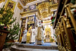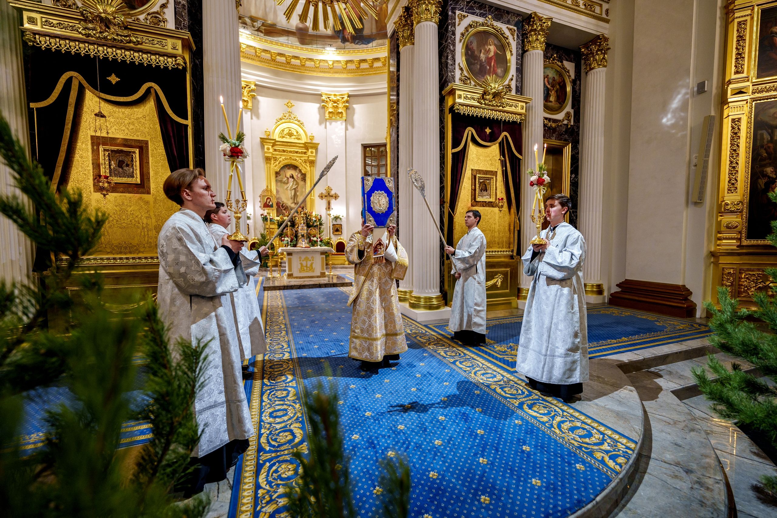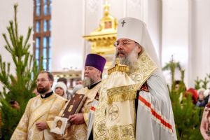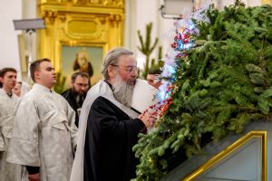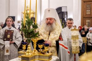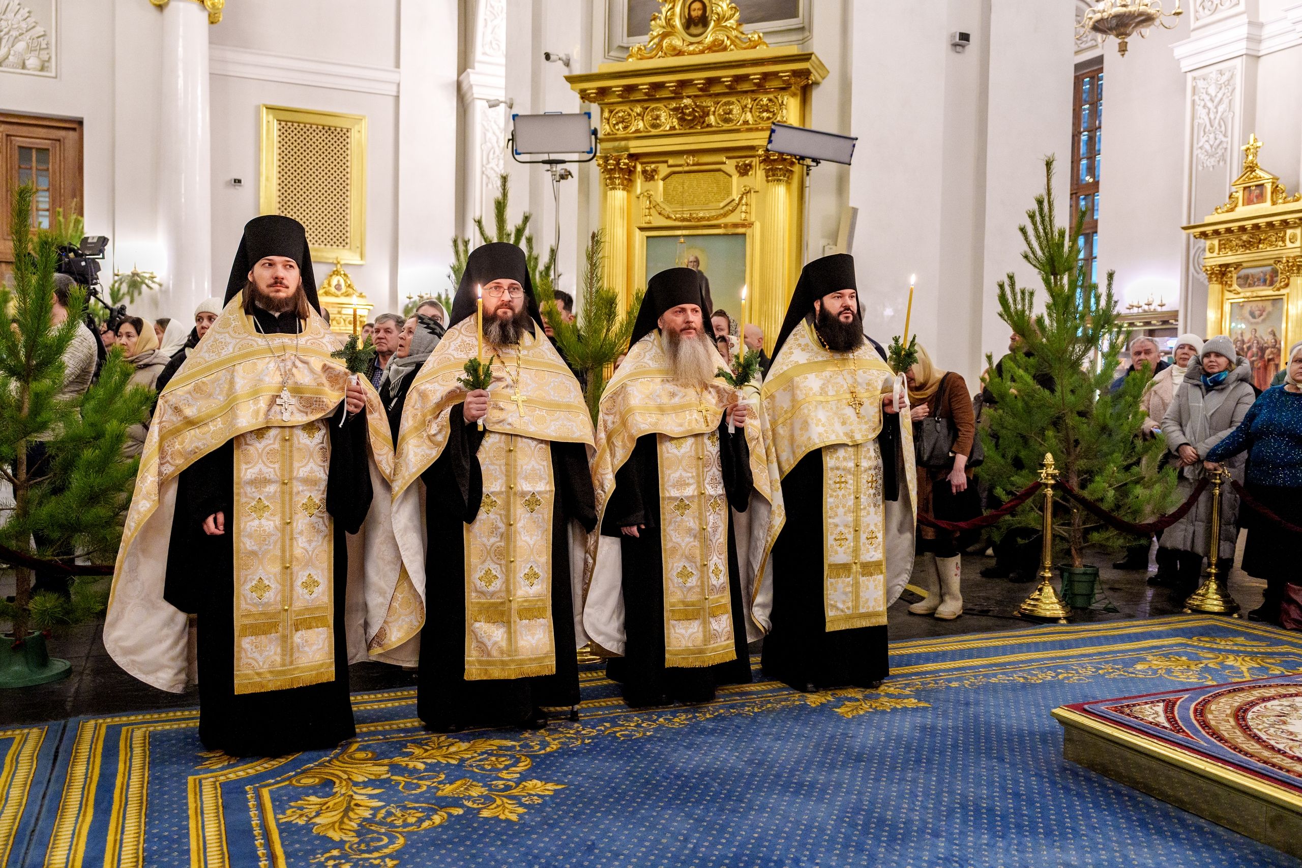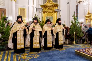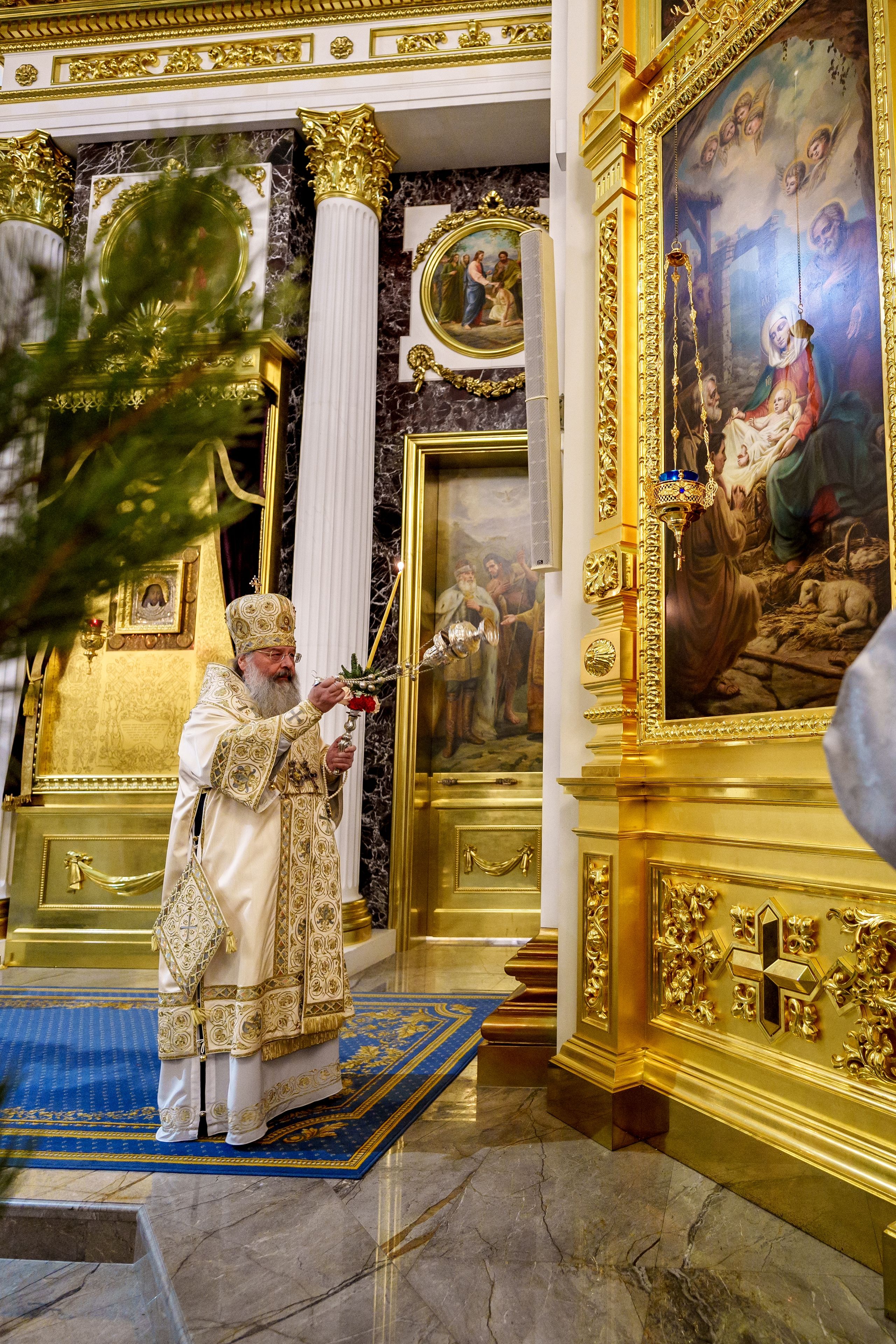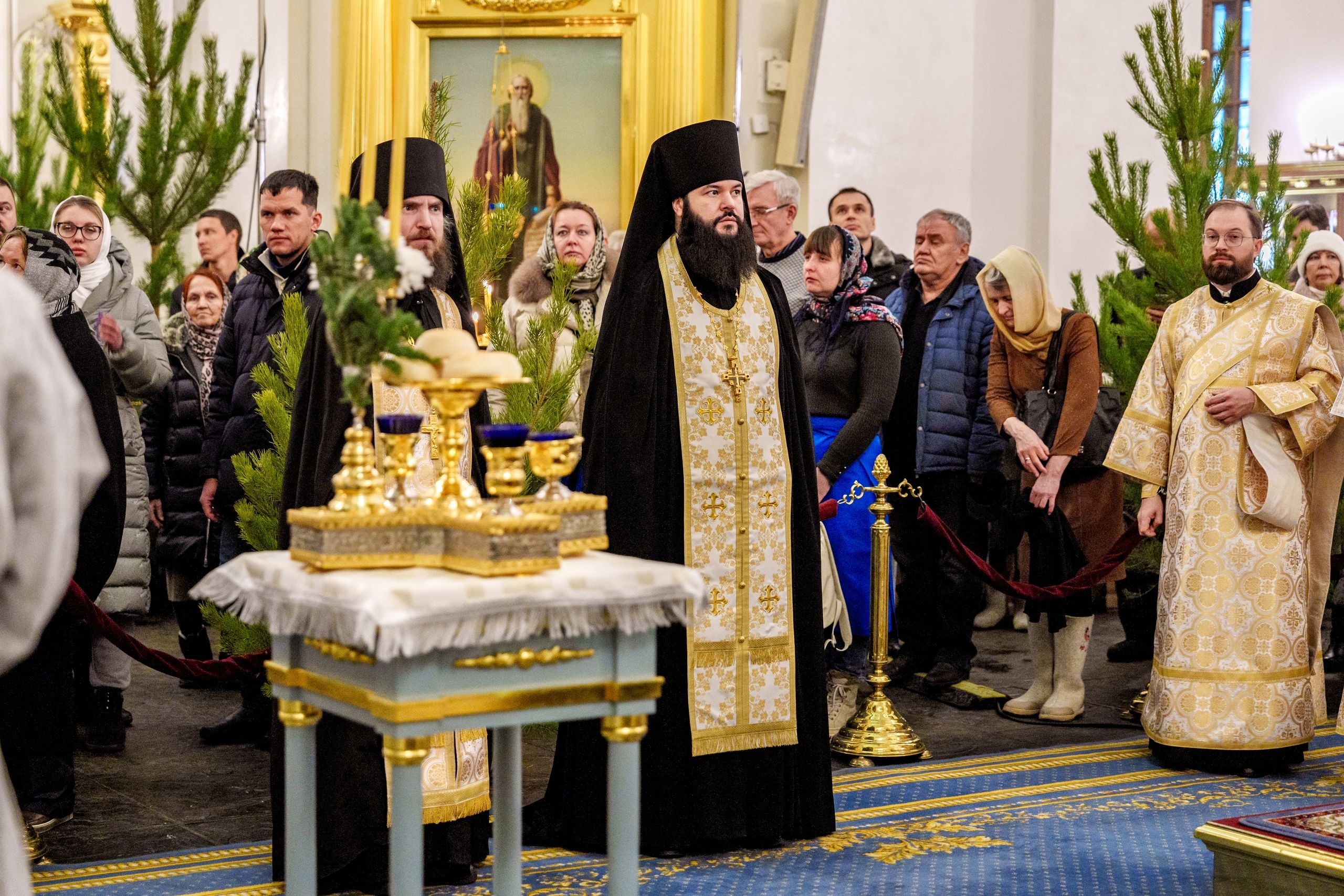 Вечером 6 января 2024 года, в канун праздника Рождества Господа Бога и Спаса нашего Иисуса Христа, митрополит Казанский и Татарстанский Кирилл совершил всенощное бдение в кафедральном соборе Казанской иконы Божией Матери Казанского Богородицкого мужского монастыря.