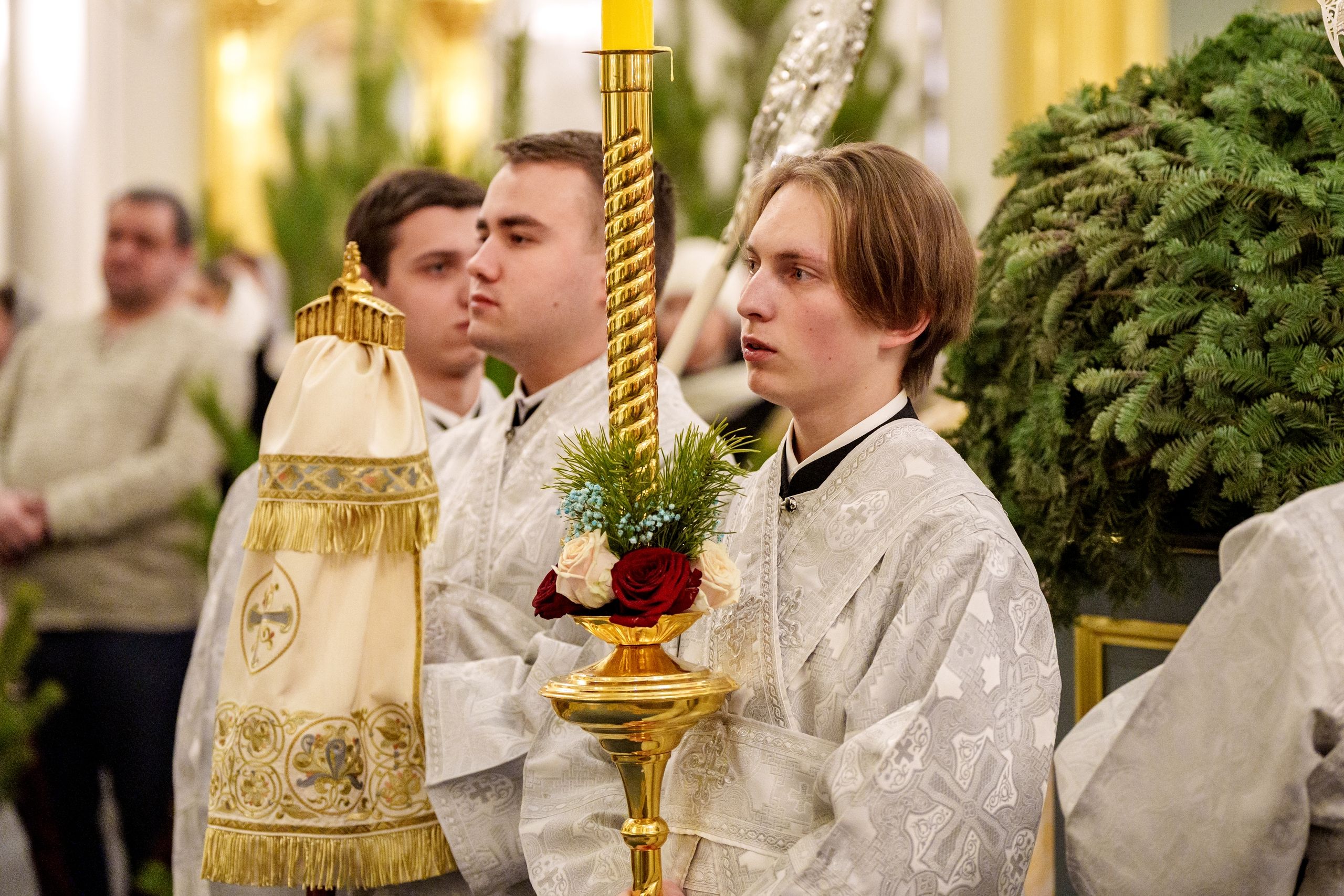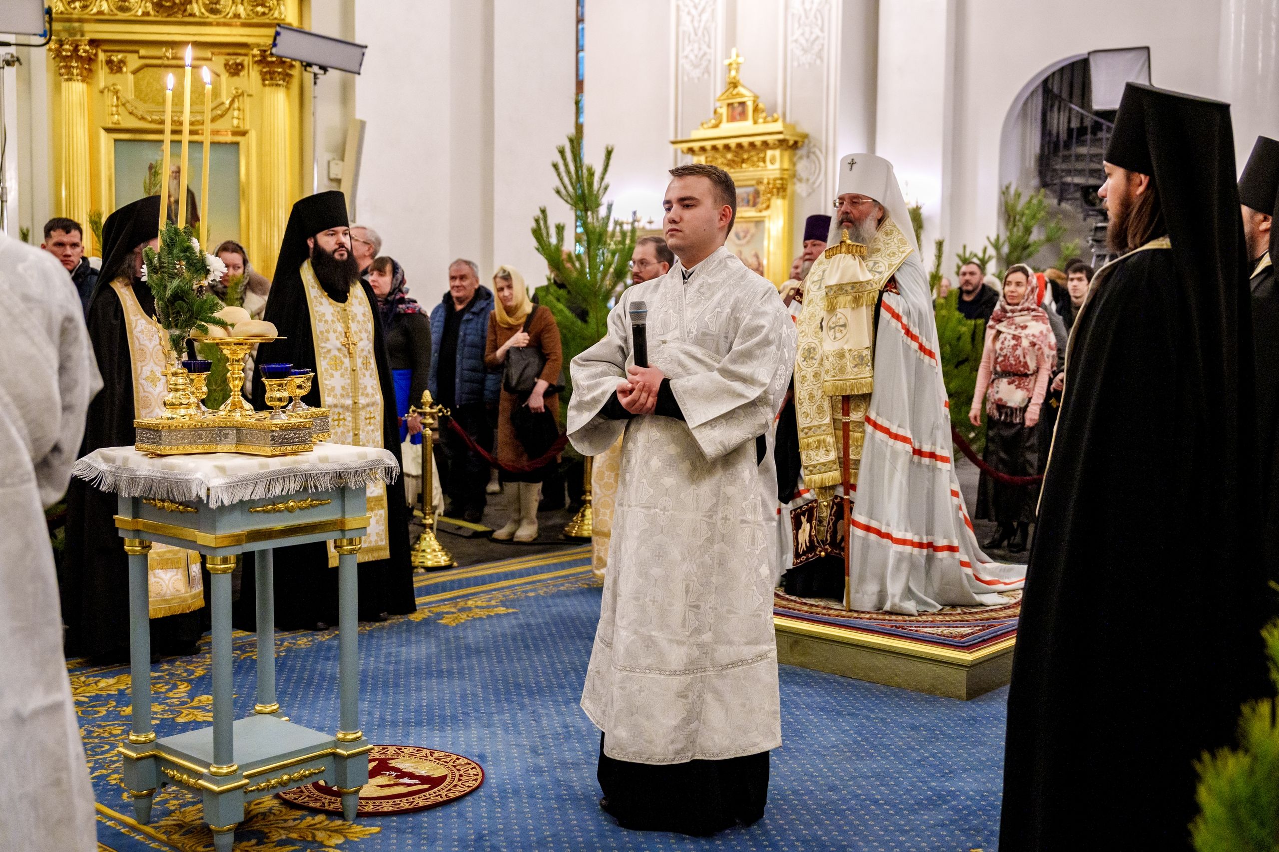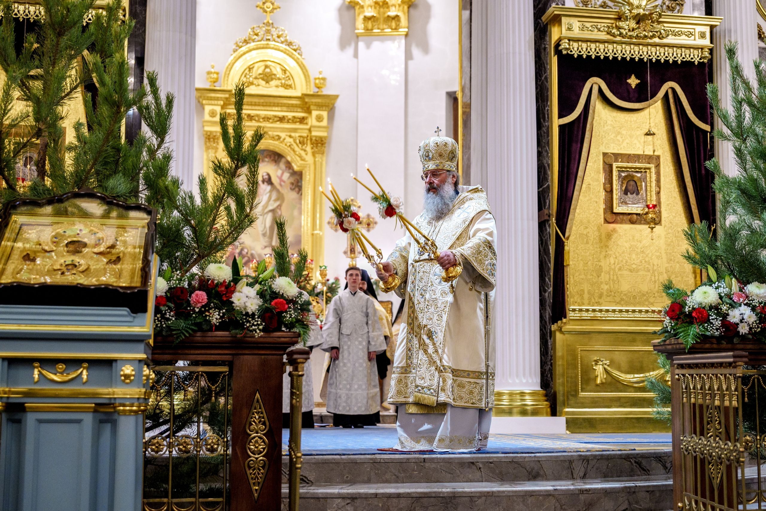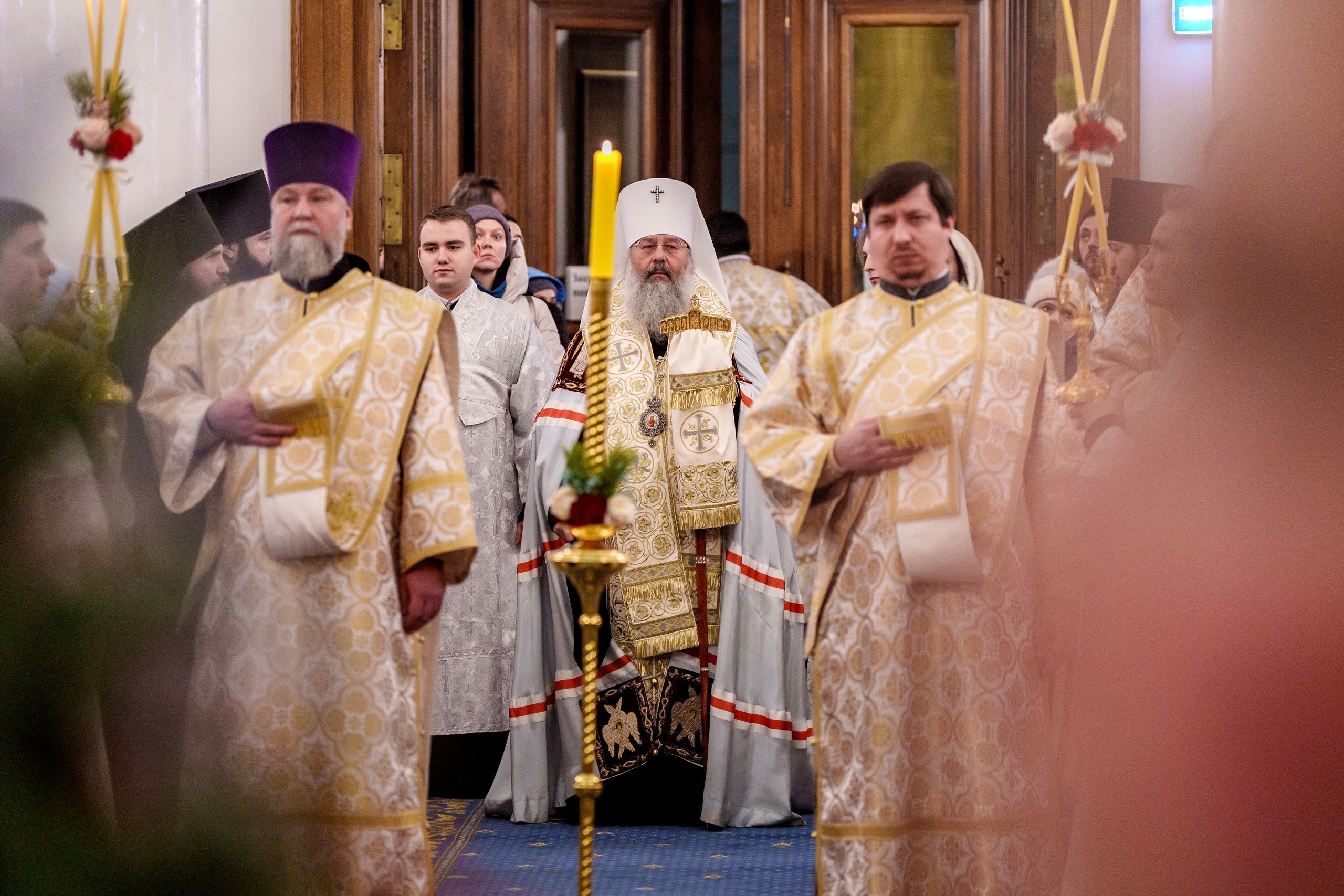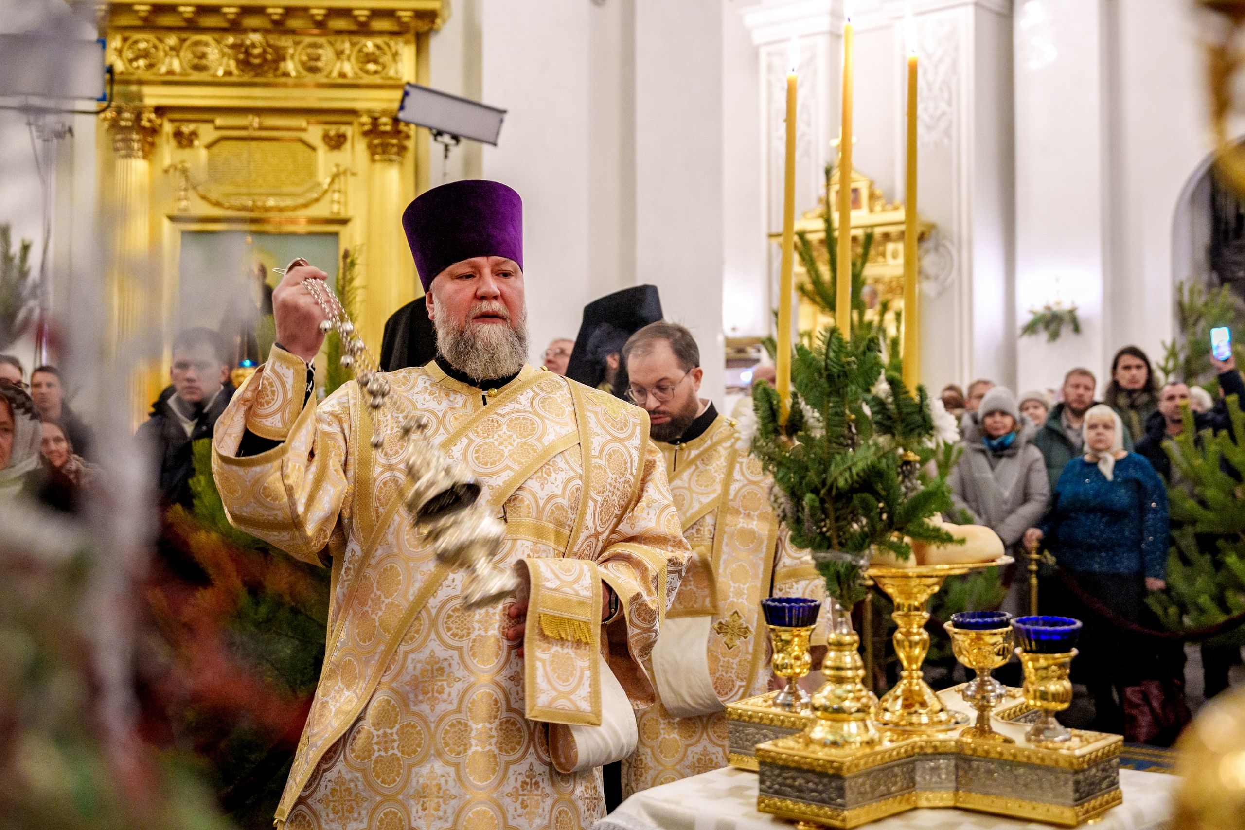 Вечером 6 января 2024 года, в канун праздника Рождества Господа Бога и Спаса нашего Иисуса Христа, митрополит Казанский и Татарстанский Кирилл совершил всенощное бдение в кафедральном соборе Казанской иконы Божией Матери Казанского Богородицкого мужского монастыря.