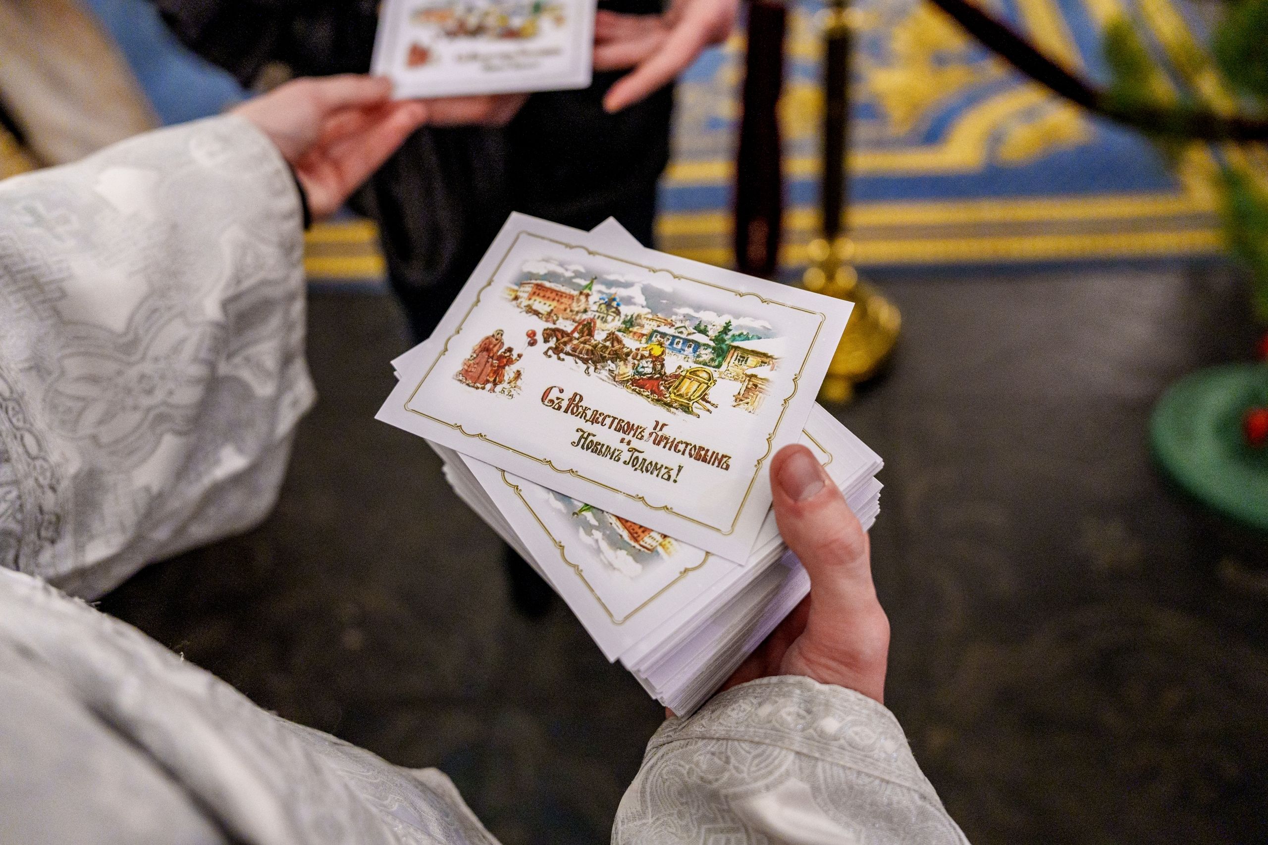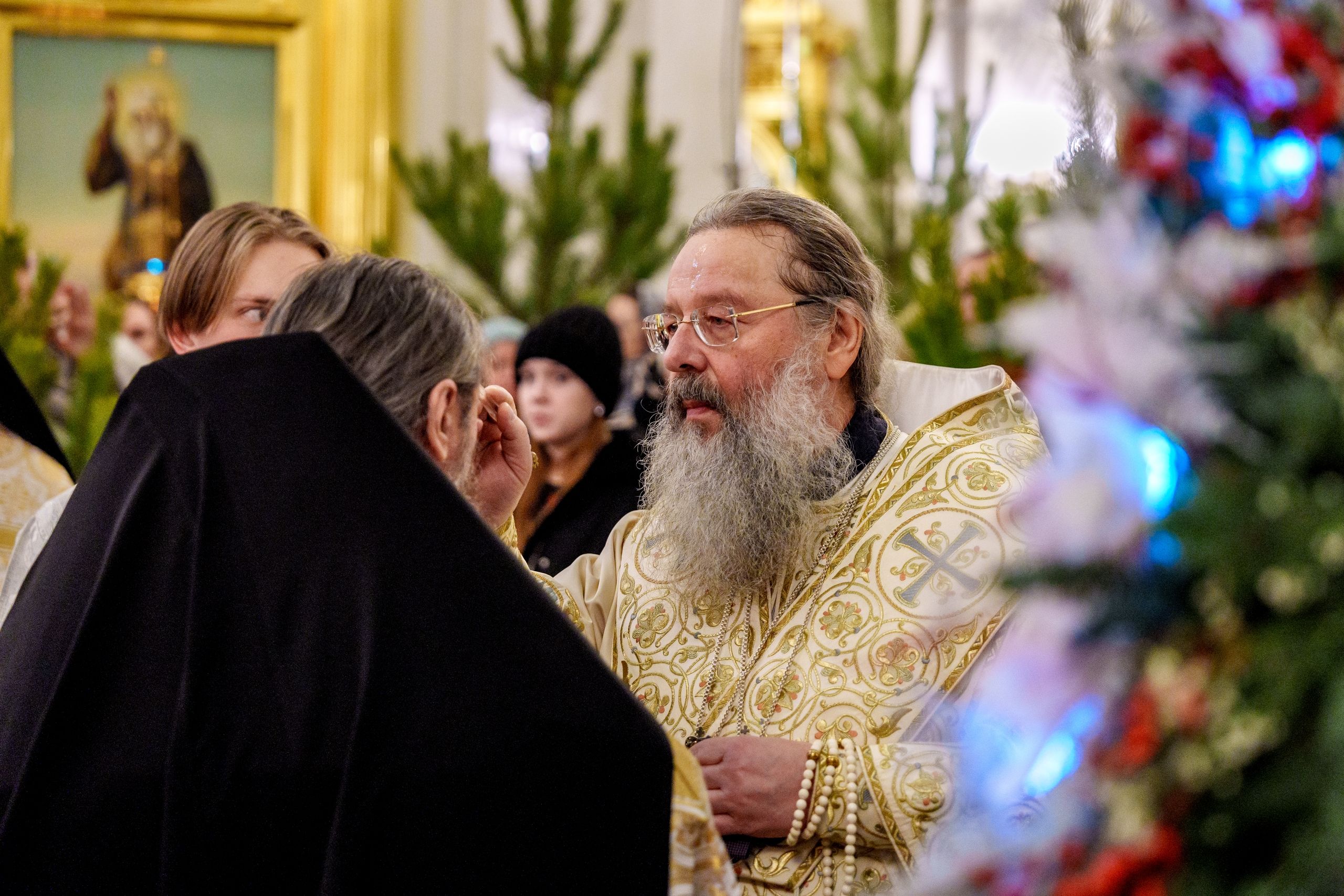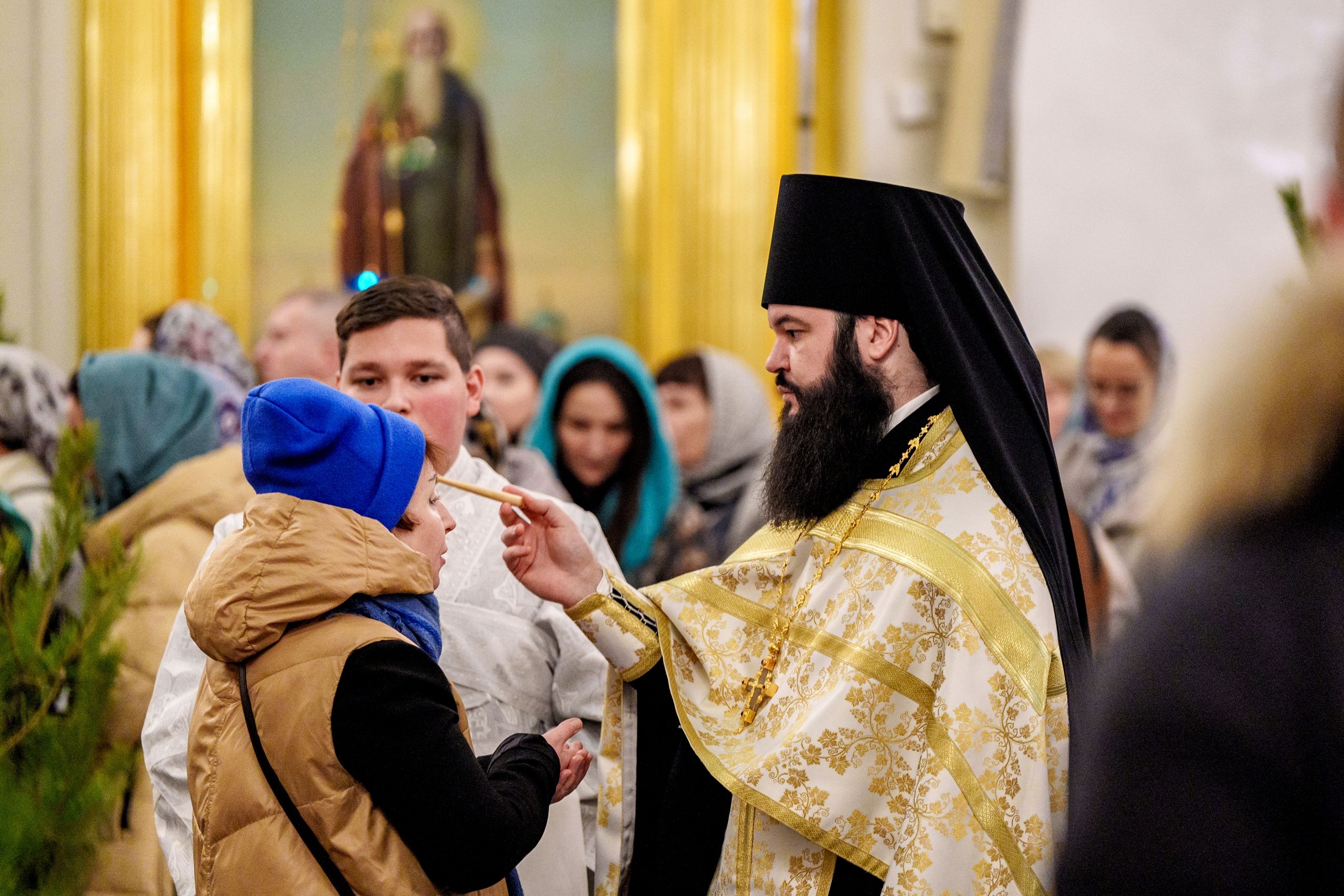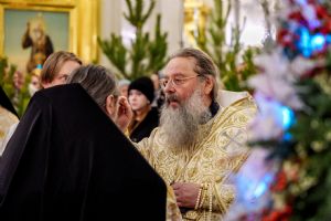 Проповедь после Евангельского чтения на полиелее произнёс иеромонах Ермоген (Рубан). Во время помазания верующим вручались рождественские открытки с архипастырским благословением.