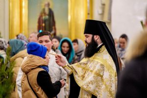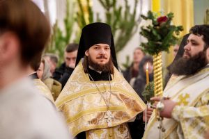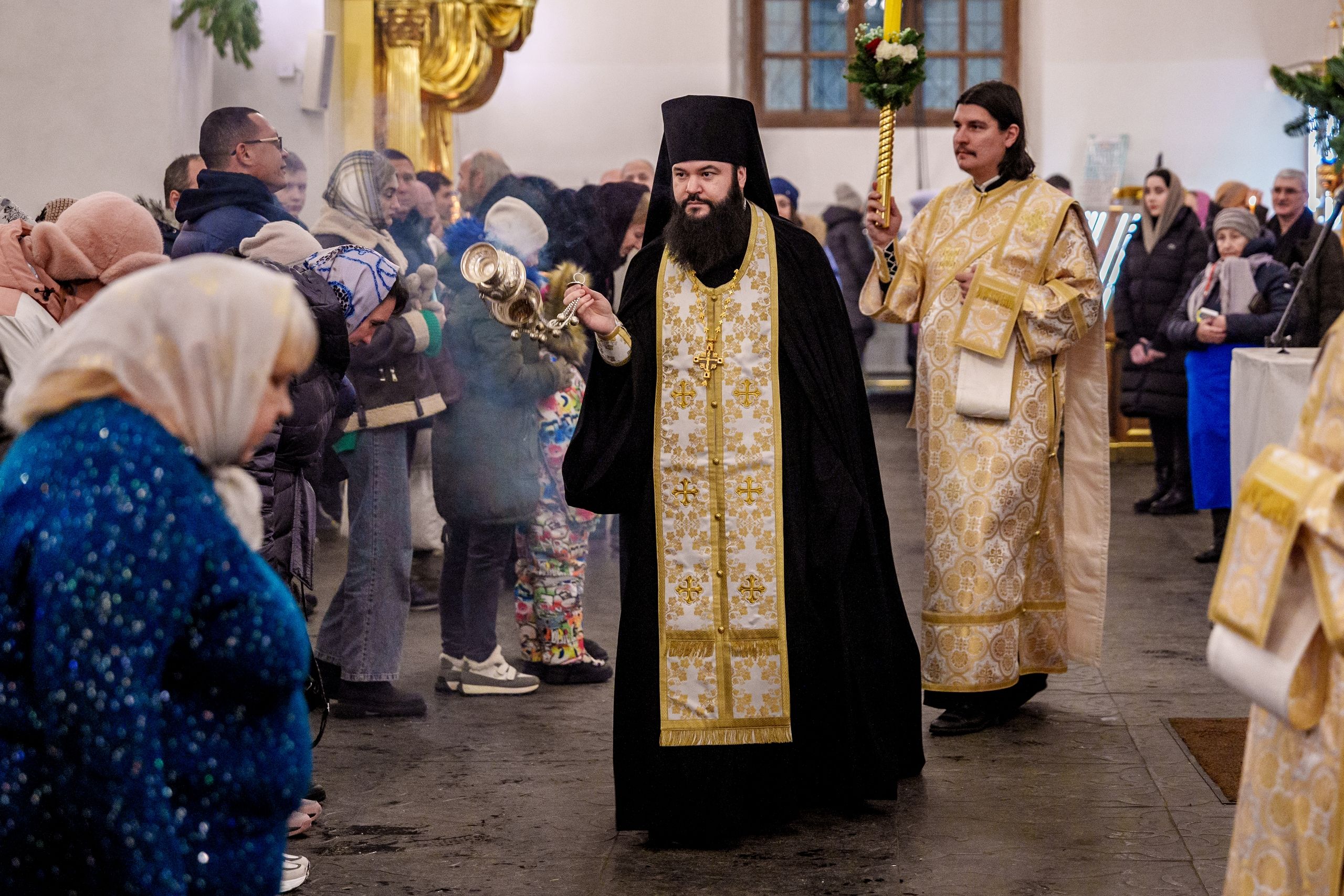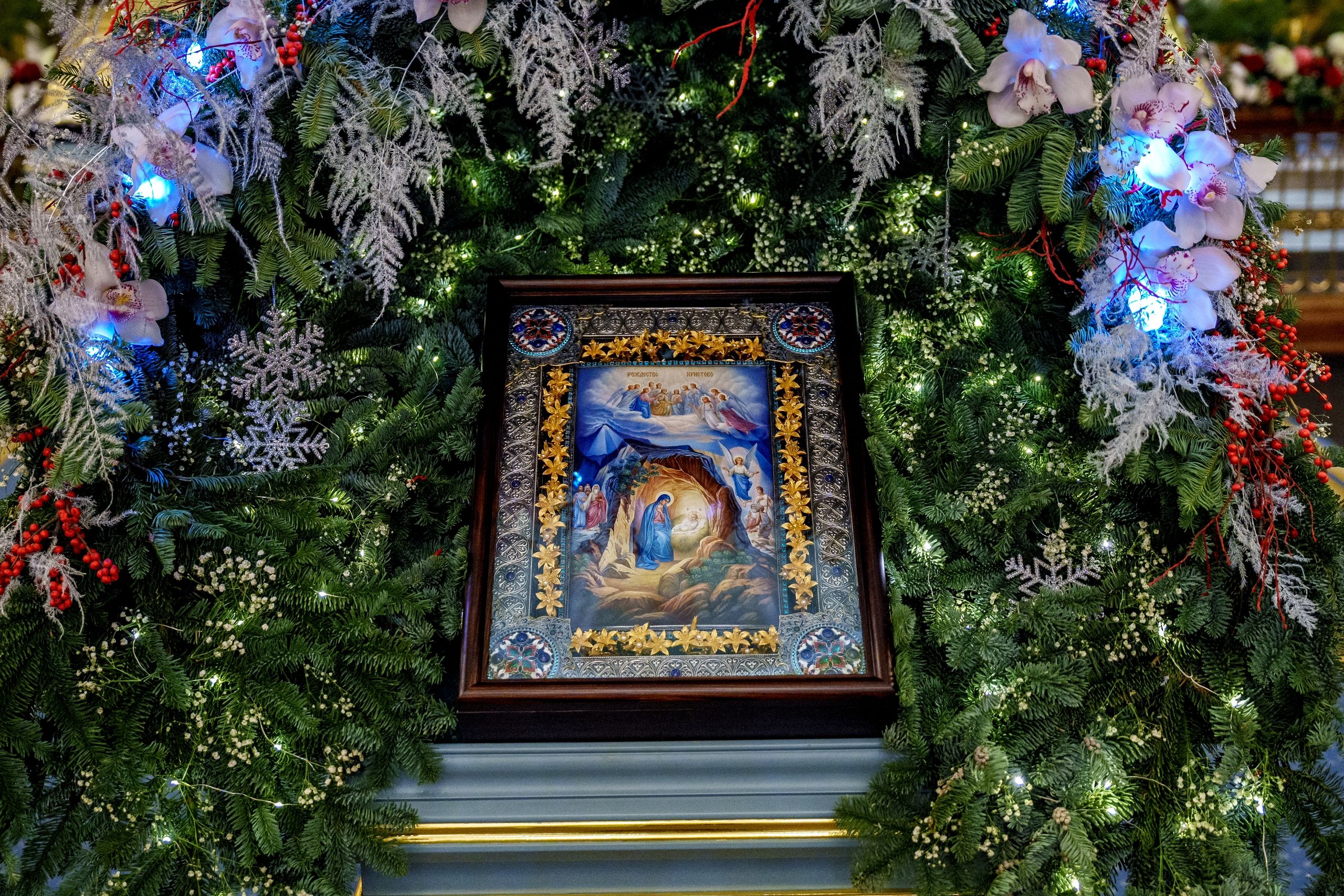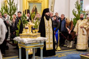 Проповедь после Евангельского чтения на полиелее произнёс иеромонах Ермоген (Рубан). Во время помазания верующим вручались рождественские открытки с архипастырским благословением.