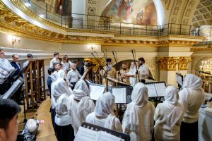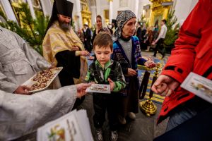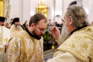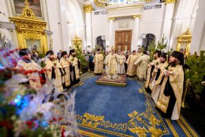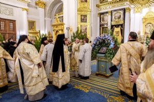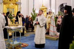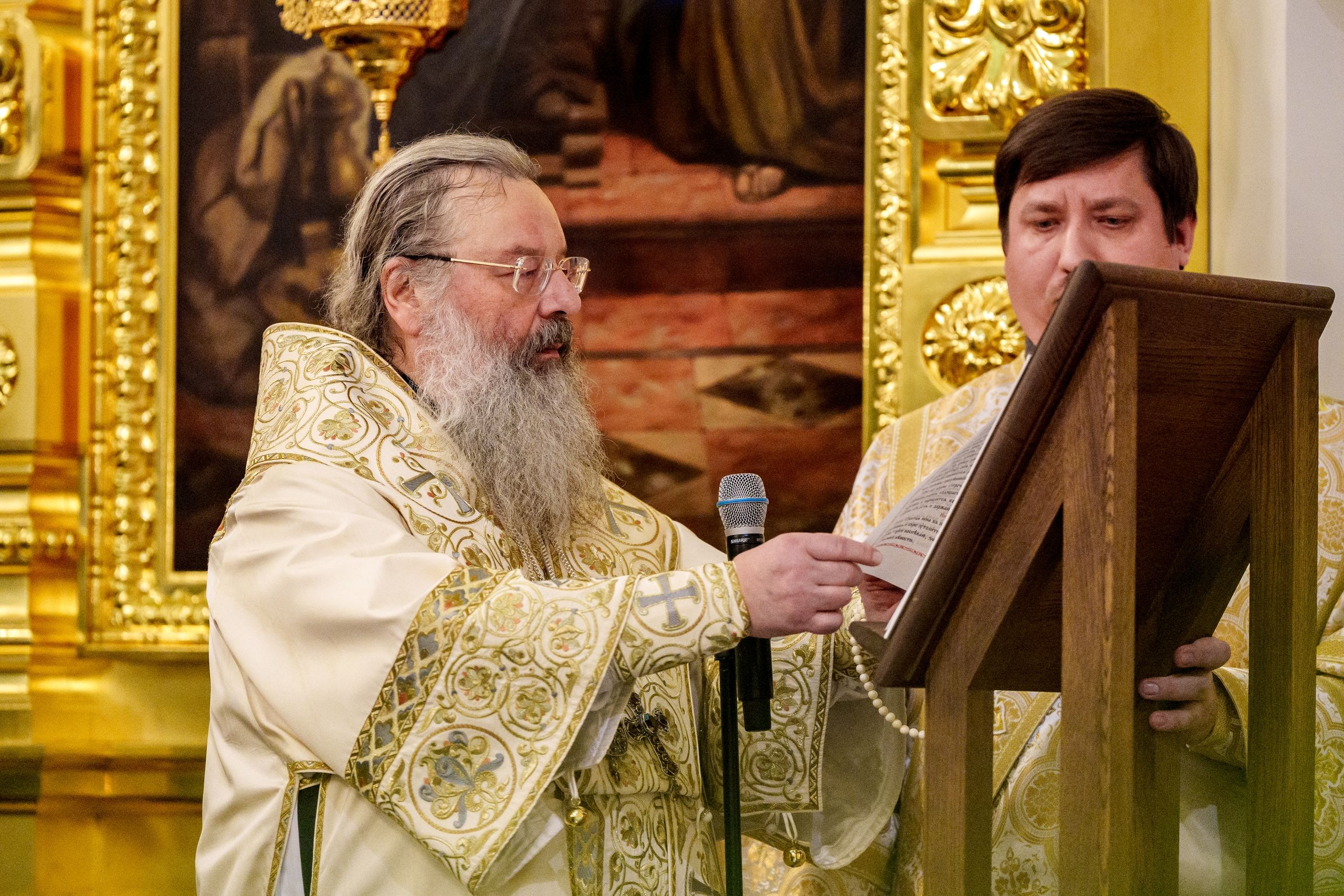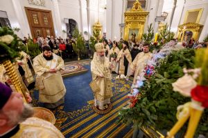 Песнопения исполнили архиерейский мужской хор под управлением Дениса Рогова и архиерейский смешанный хор под управлением Марины Литвиненко.