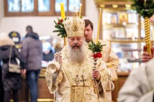 Архипастырю сослужили наместник игумен Марк (Виленский) и насельники Богородицкого монастыря в священном сане.