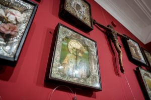 Иконы, подобные тем, что представлены на выставке, были почти в каждом доме. Помню, у бабушки был сундук, на который она запрещала садиться. Как-то бабушка открыла его, и мы увидели, что внутри хранятся разные святыни. Крышка сундука была заклеена изображениями Царской семьи. Я впервые увидел изображение Царской семьи в возрасте 5-6 лет, и мне это очень запомнилось.