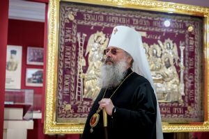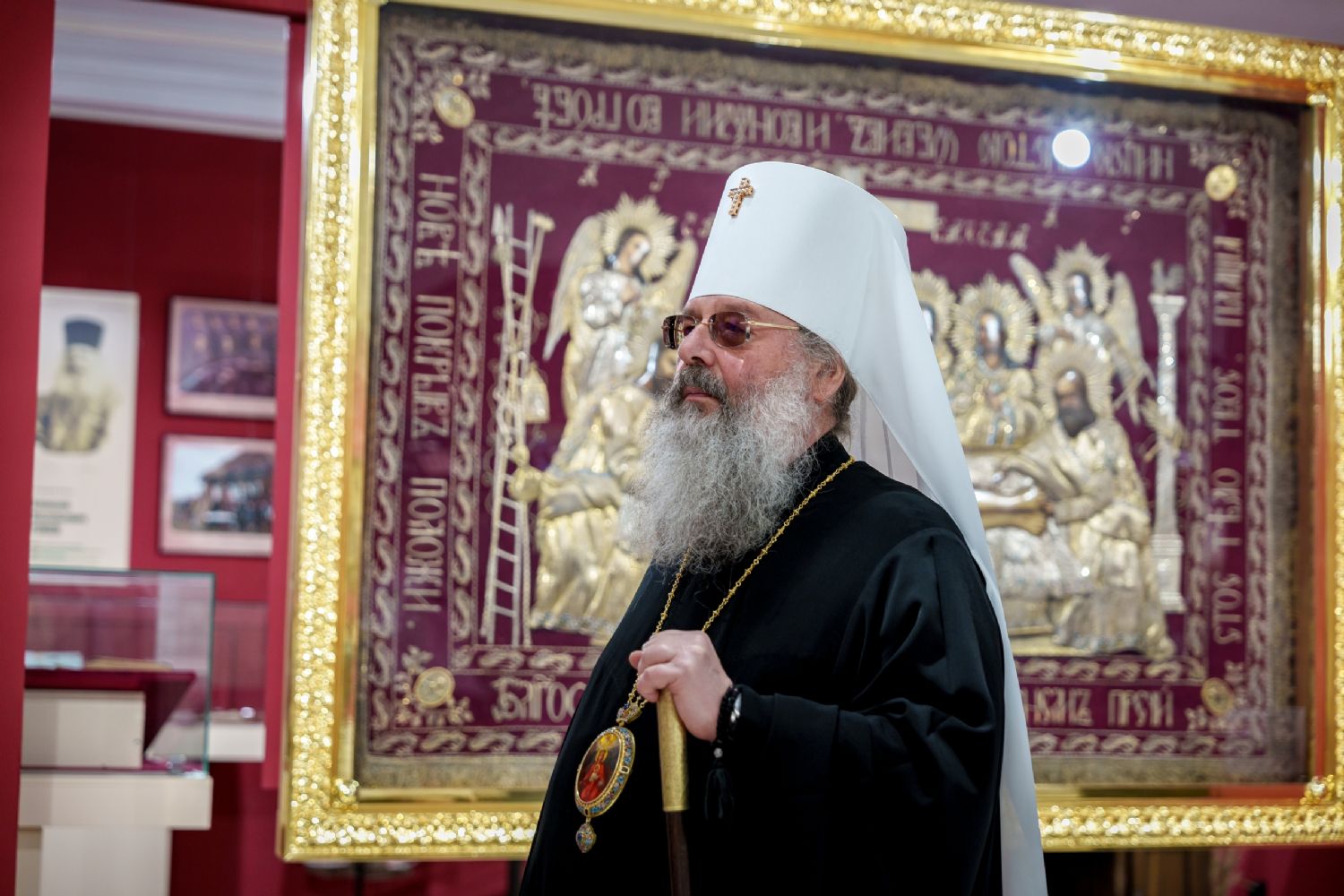 Архипастырь рассказал о представленных на выставке архиерейских облачениях.