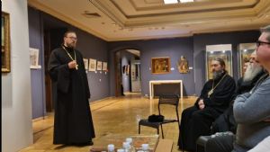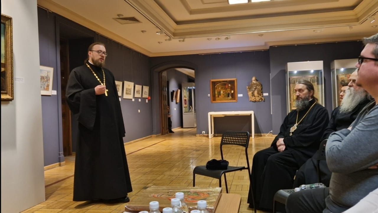Выступая на круглом столе, руководитель Музея Казанской епархии иеромонах Аркадий (Логинов) обратил внимание аудитории на принципиальное отличие иконы от произведения светского искусства: