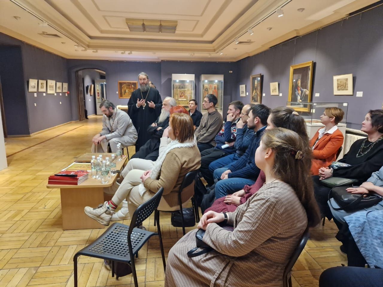 8 февраля в Национальной художественной галерее «Хазинэ» Государственного музея изобразительных искусств Республики Татарстан состоялся круглый стол на тему «Традиции и современность в христианском искусстве: диалог как основа образности». В дискуссии приняли участие священники и миряне Казанской епархии, музейные сотрудники, иконописцы, художники, представители РПСЦ. В числе участников мероприятия были директор епархиального музея иеромонах Аркадий (Логинов), составитель музейной коллекции Оксана Иванова, руководитель епархиального миссионерского отдела иерей Александр Ермолин, заместитель руководителя миссионерского отдела иерей Александр Данилов.