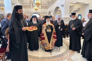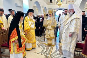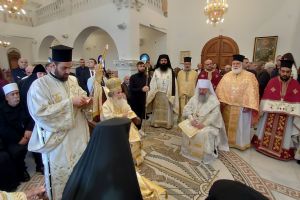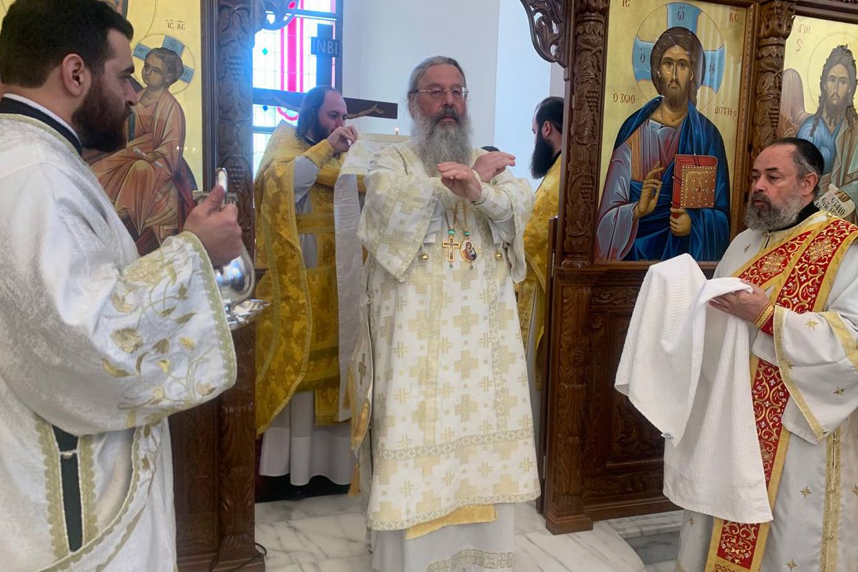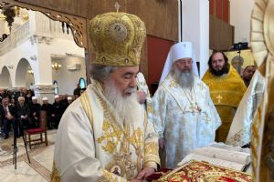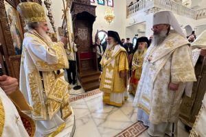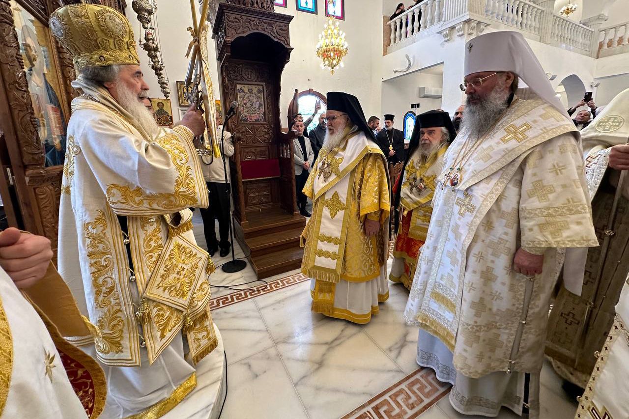 Его Блаженству сослужили митрополит Назаретский Кириак, митрополит Казанский и Татарстанский Кирилл и архиепископ Константинский Аристарх.