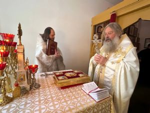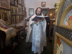 Его Высокопреосвященству сослужили секретарь Татарстанской митрополии иеромонах Кирилл (Корытко) и секретарь главы митрополии иеромонах Алексий (Яцейко).