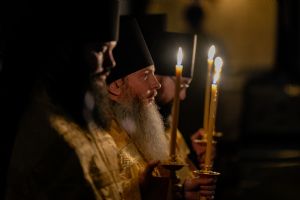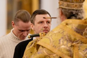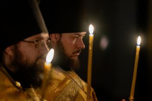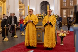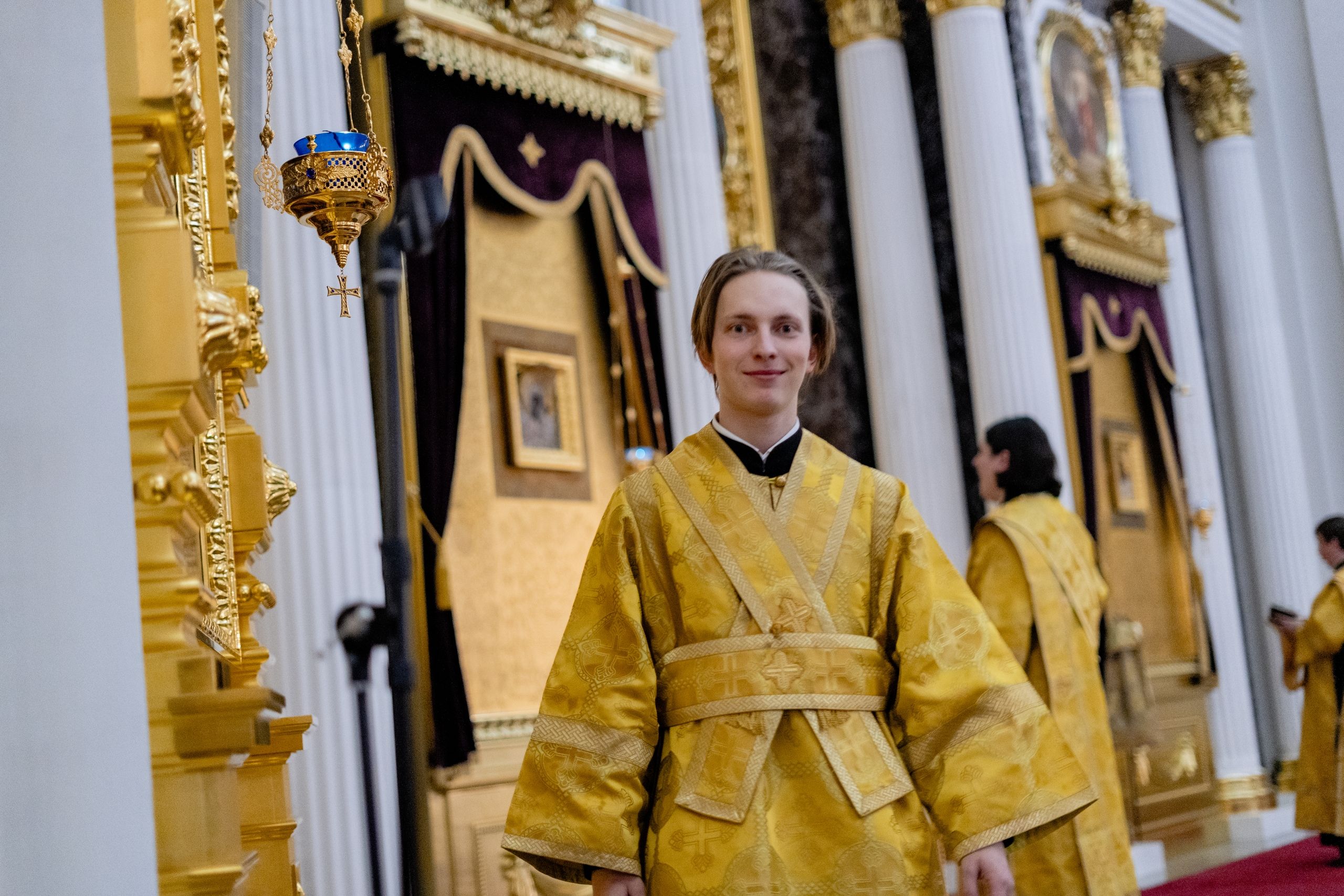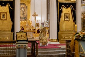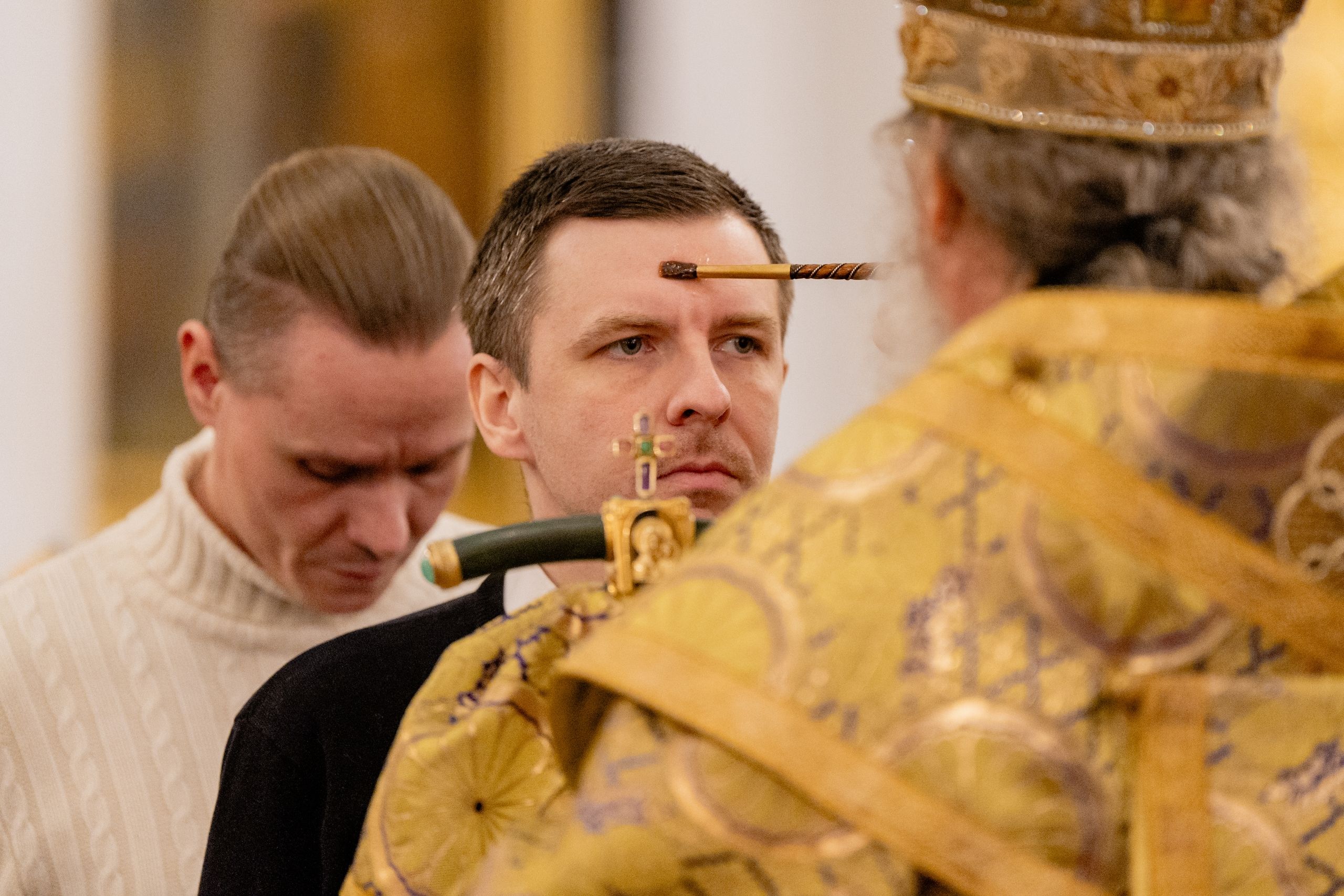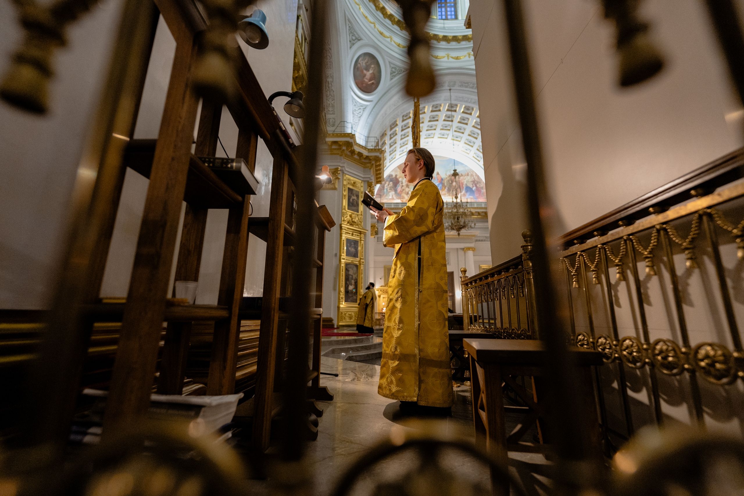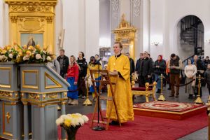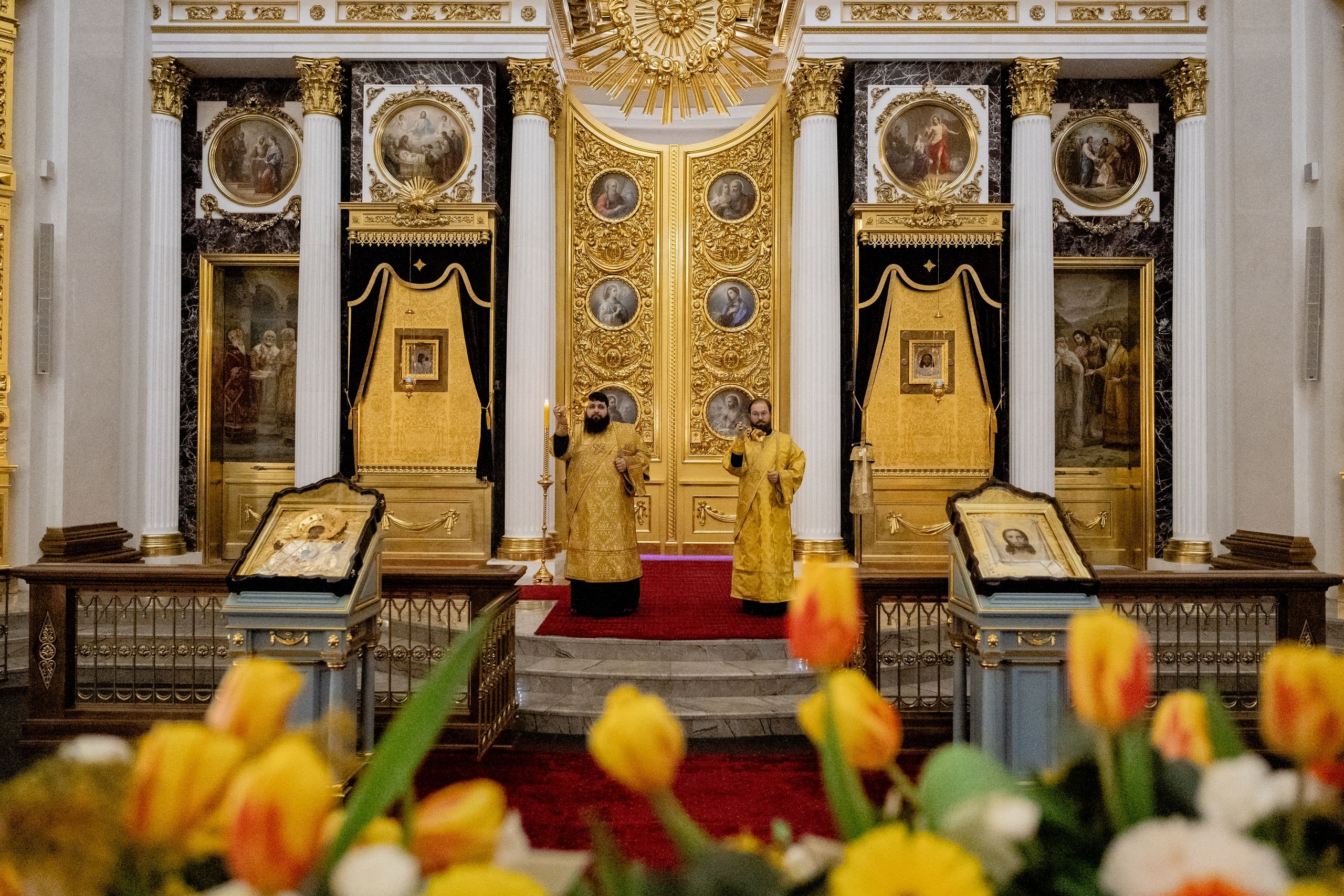 Богослужебные песнопения исполнили два архиерейских хора: мужской под управлением Дениса Рогова и смешанный под управлением Марины Литвиненко.