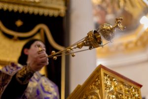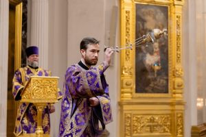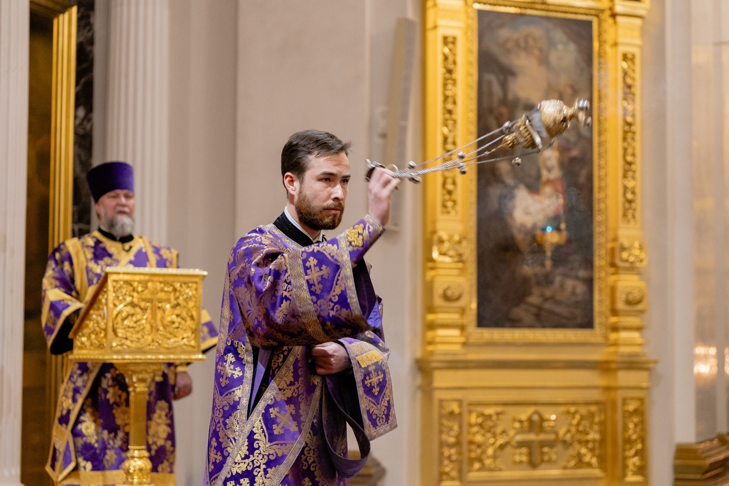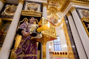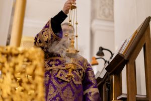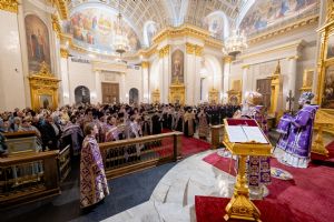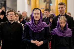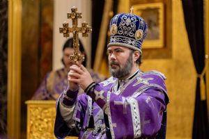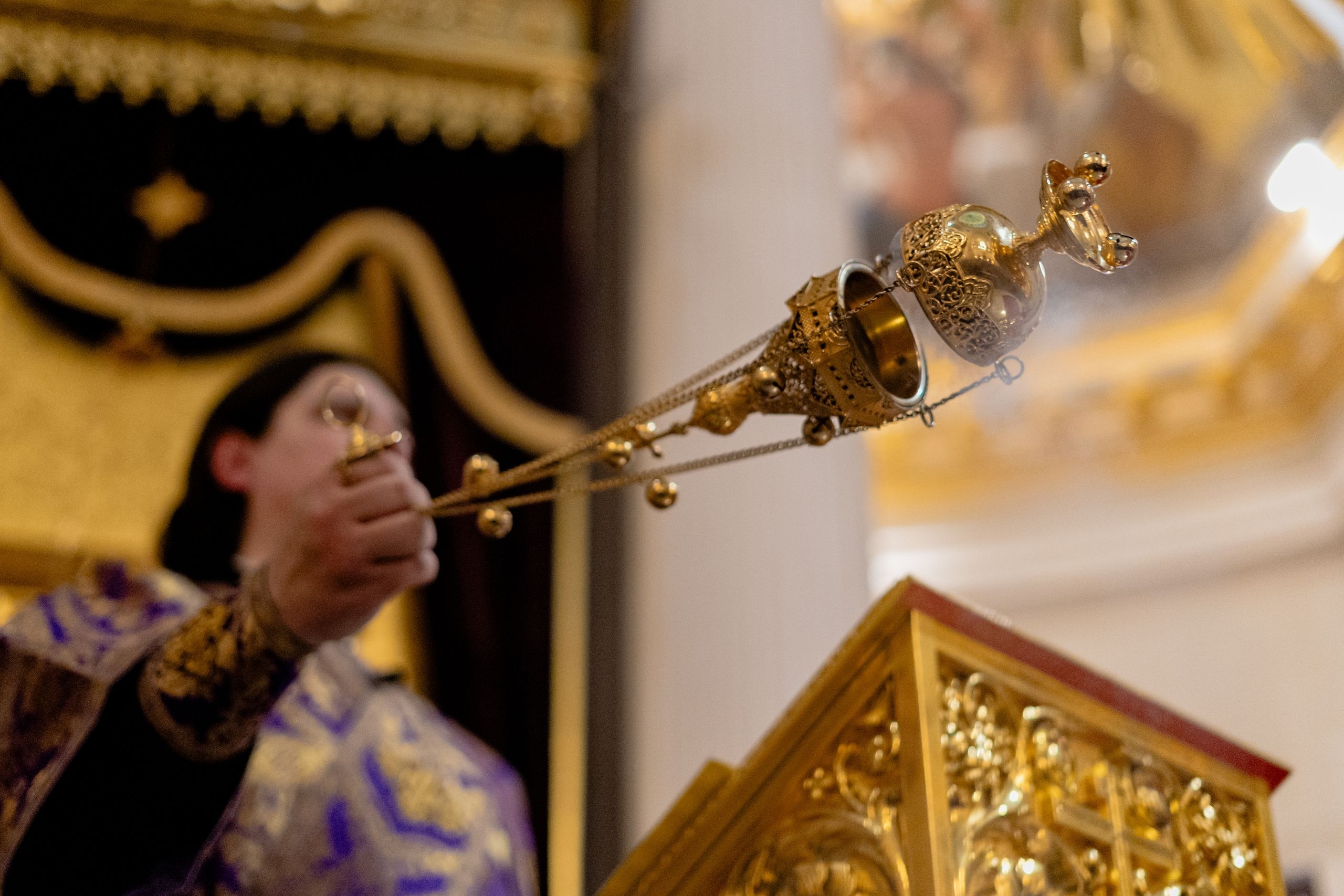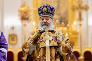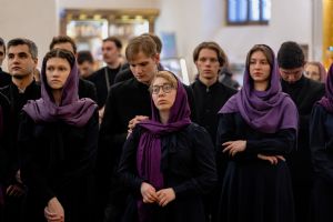 За богослужением возносились сугубые молитвы об упокоении погибших и об исцелении пострадавших в результате террористического акта в концертном зале «Крокус Сити Холл» в подмосковном Красногорске.