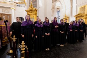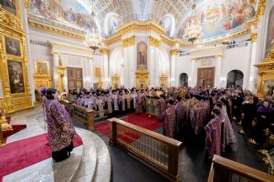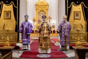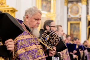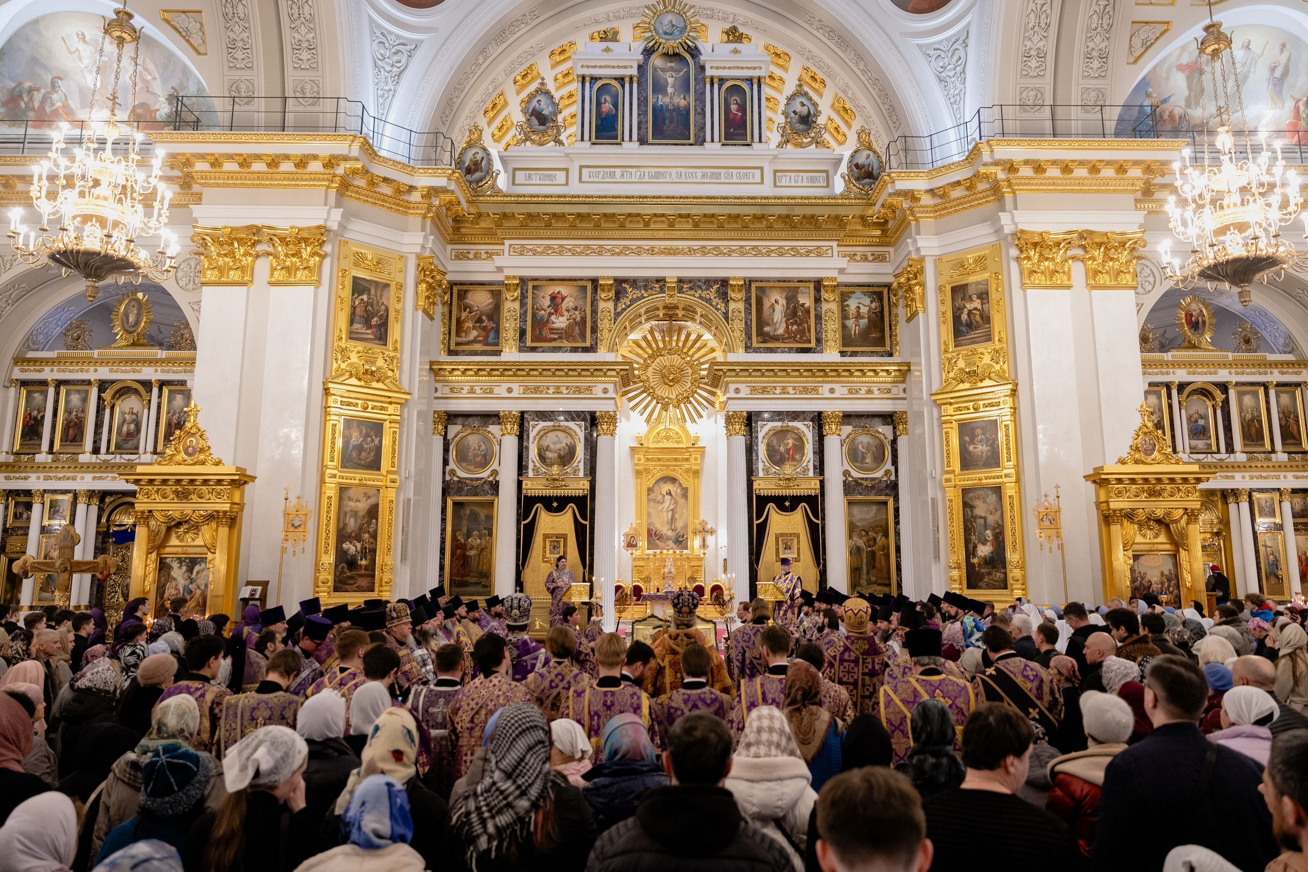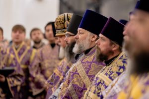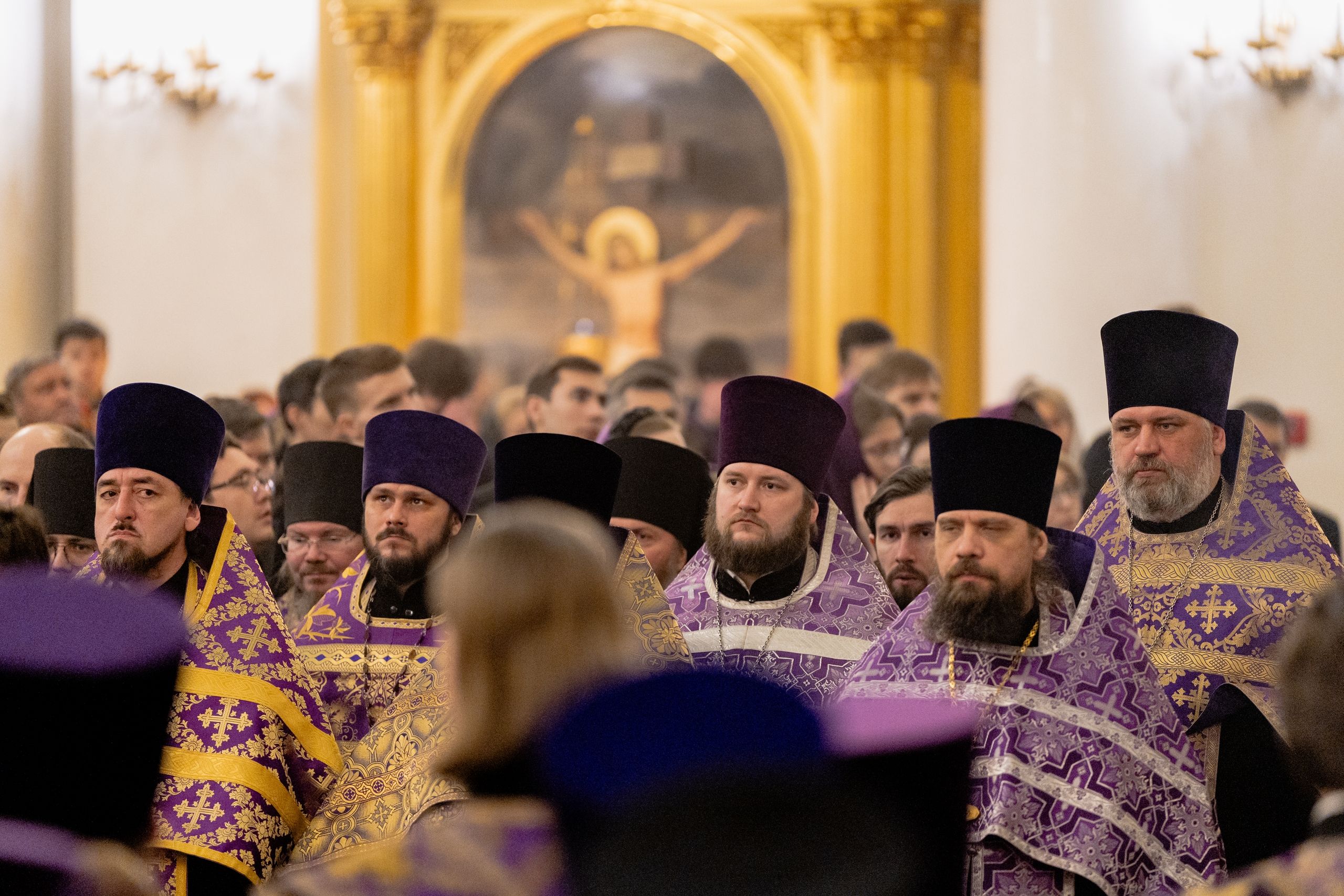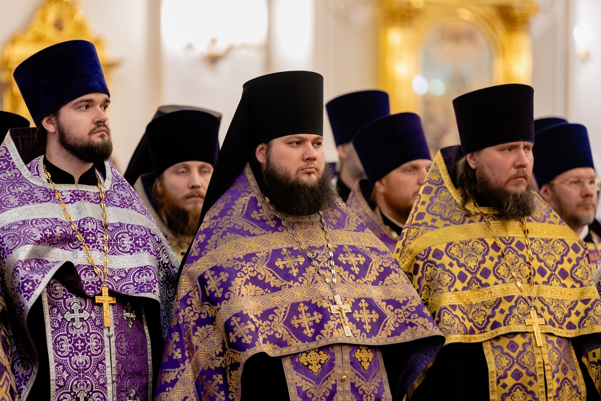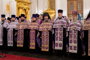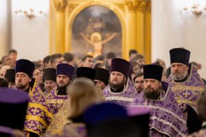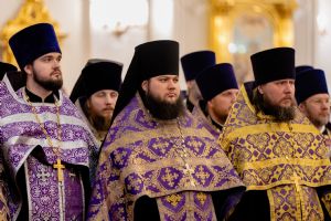 Архипастырям сослужили наместники монастырей и благочинные церковных округов Казанской епархии, настоятели и духовенство храмов столицы Татарстана. Богослужебные песнопения исполнили архиерейский мужской хор под управлением Дениса Рогова, архиерейский смешанный хор под управлением Марины Литвиненко.