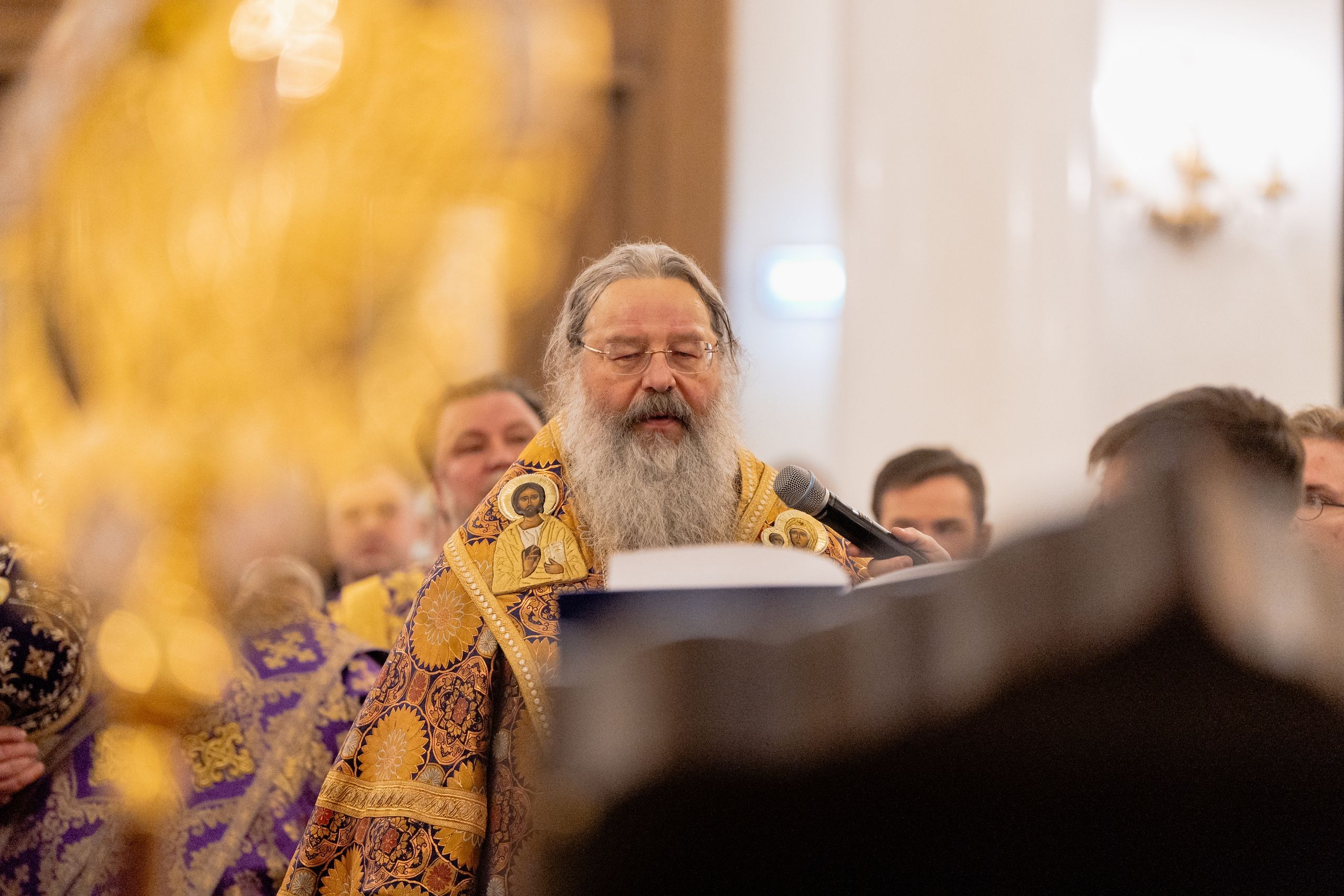Ваши Преосвященства, всечестные отцы, дорогие братья и сестры! Праздник Торжества Православия сегодня совершается во всех уголках земли, где есть православные храмы, где живут люди, которые исповедуют апостольскую веру в Пресвятую Троицу, в Господа и Спасителя нашего Иисуса Христа. Всех вас поздравляю с сегодняшним праздником и желаю быть истинными носителями великой благодати, которую имеют христиане.