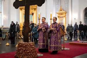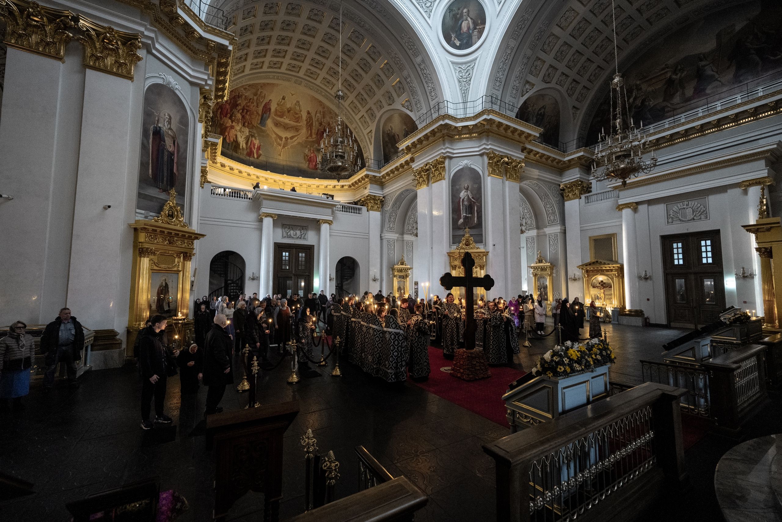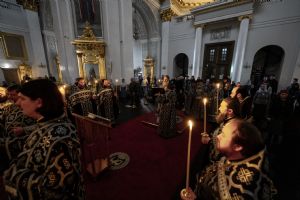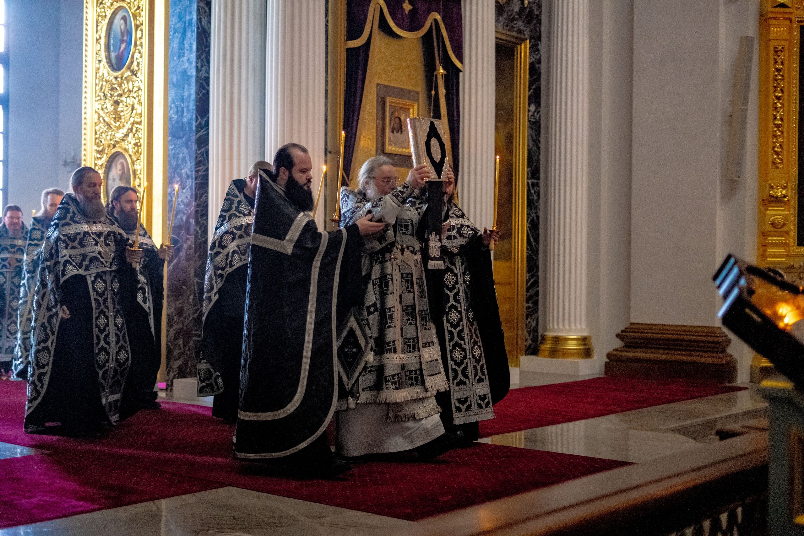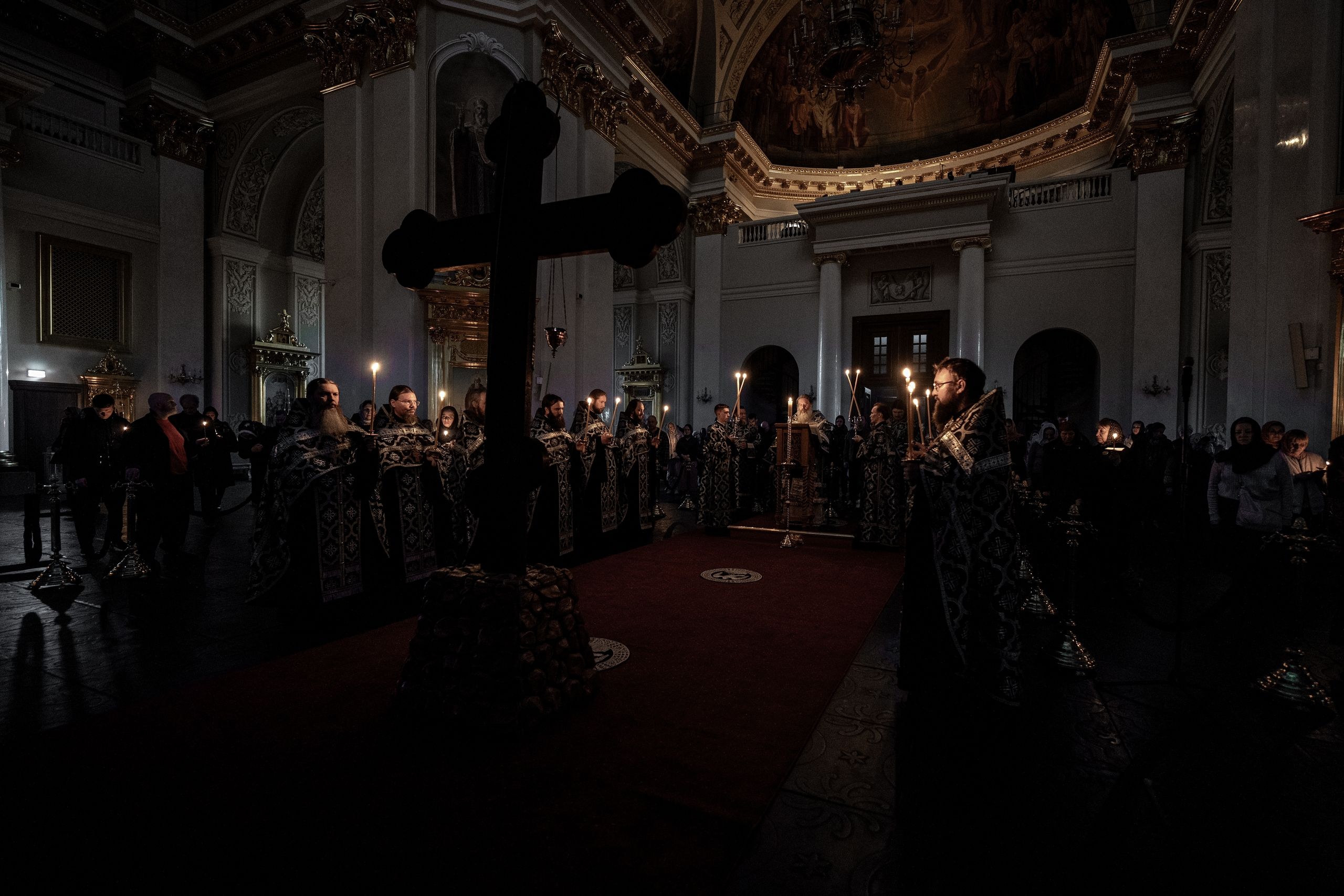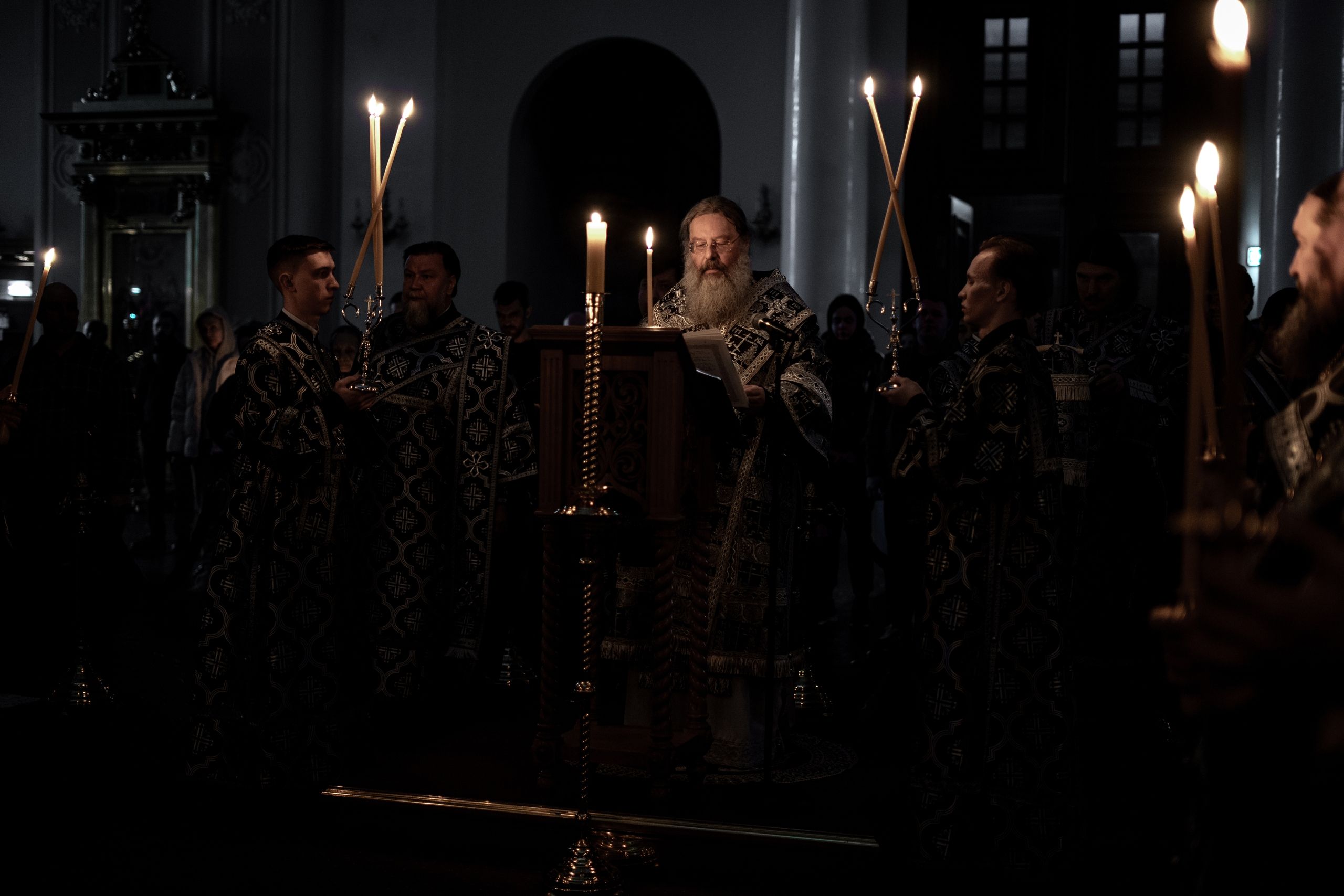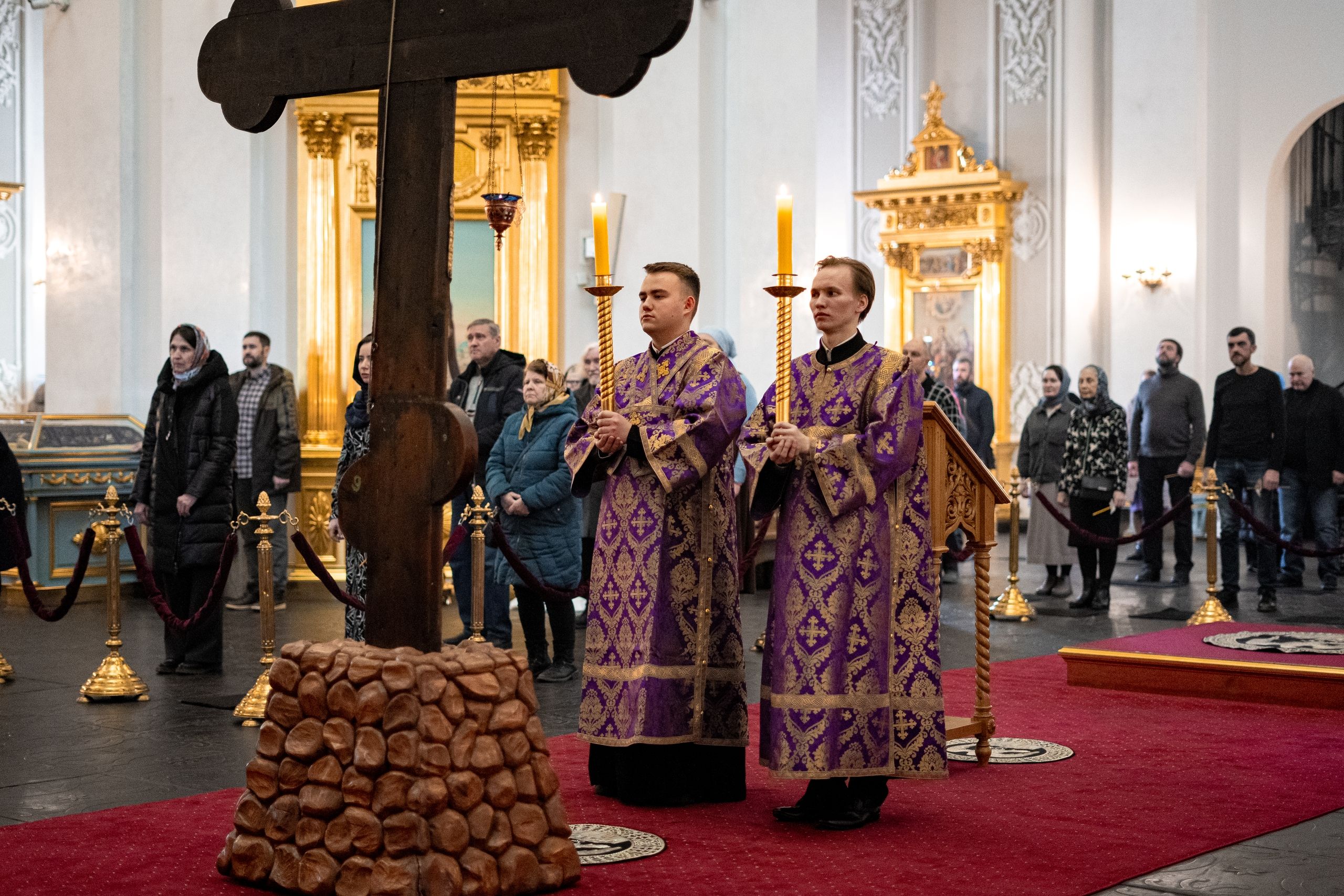 На богослужении было прочитано Евангелие от Матфея, повествующее о страданиях Спасителя.