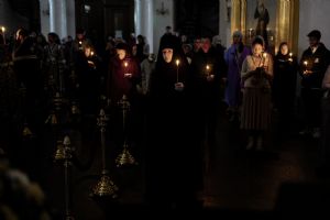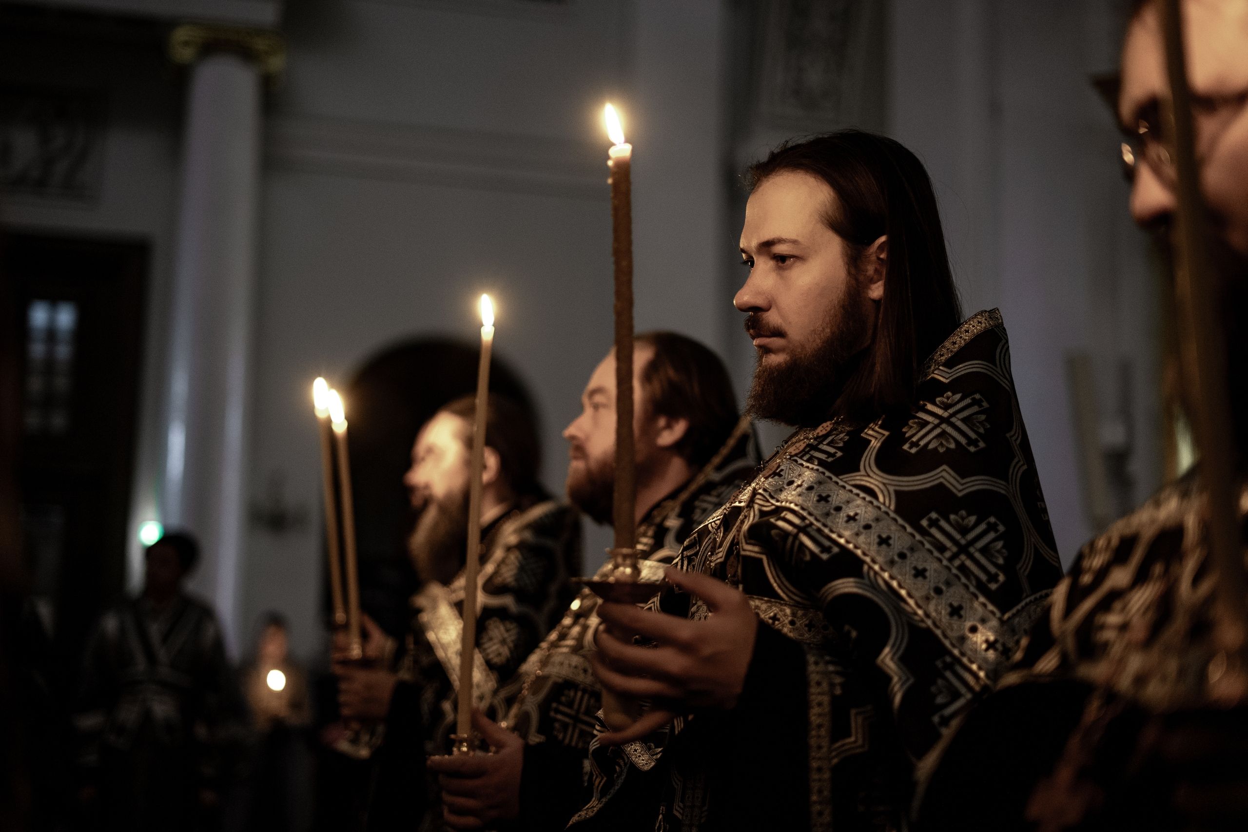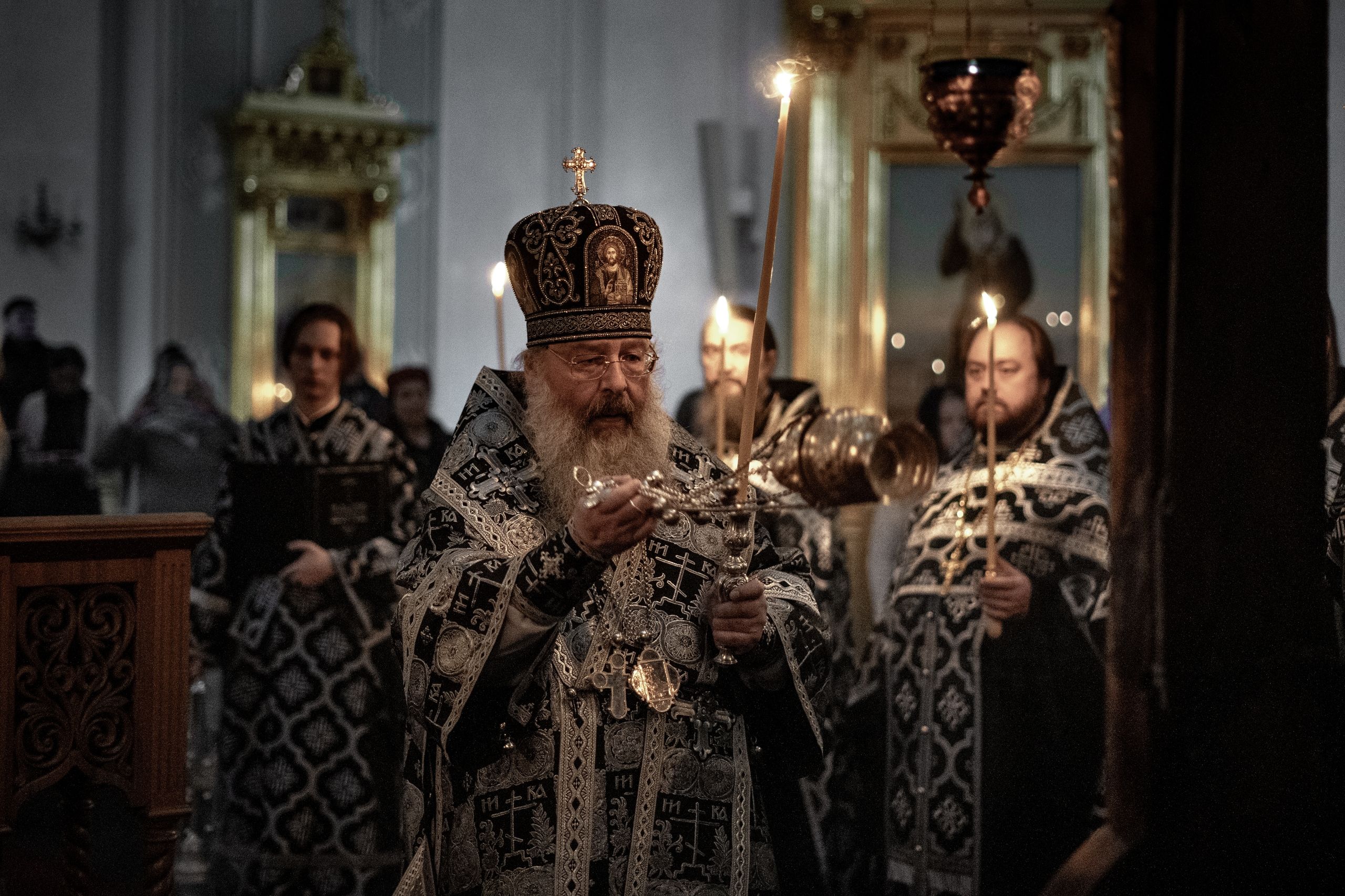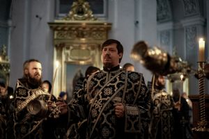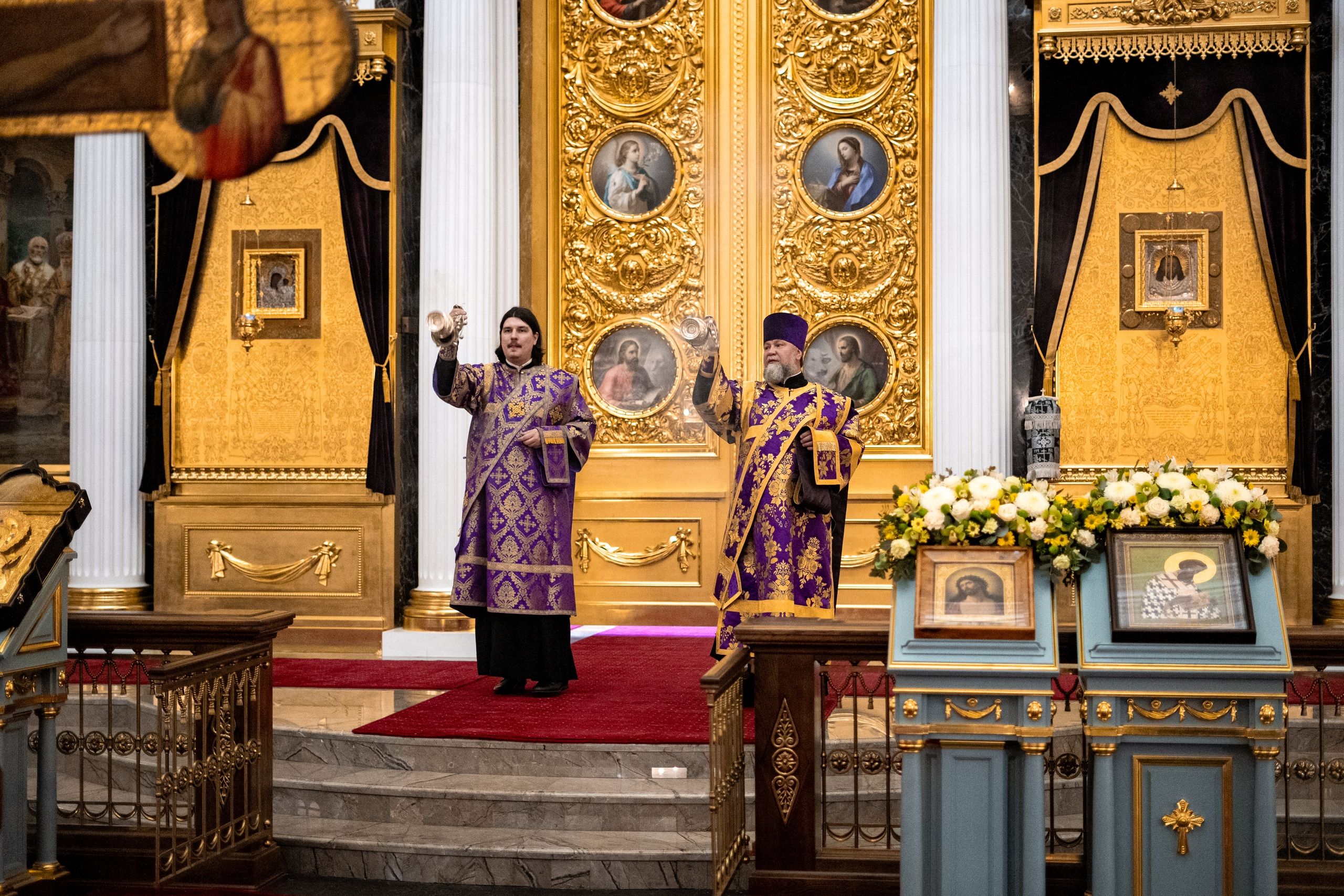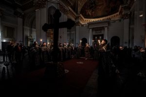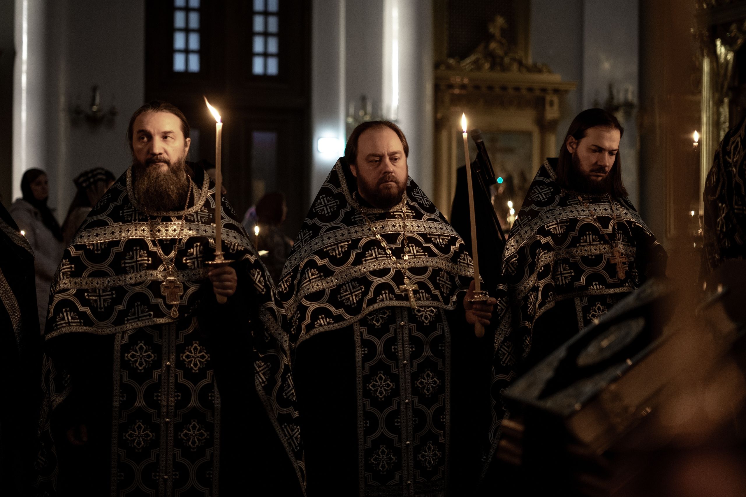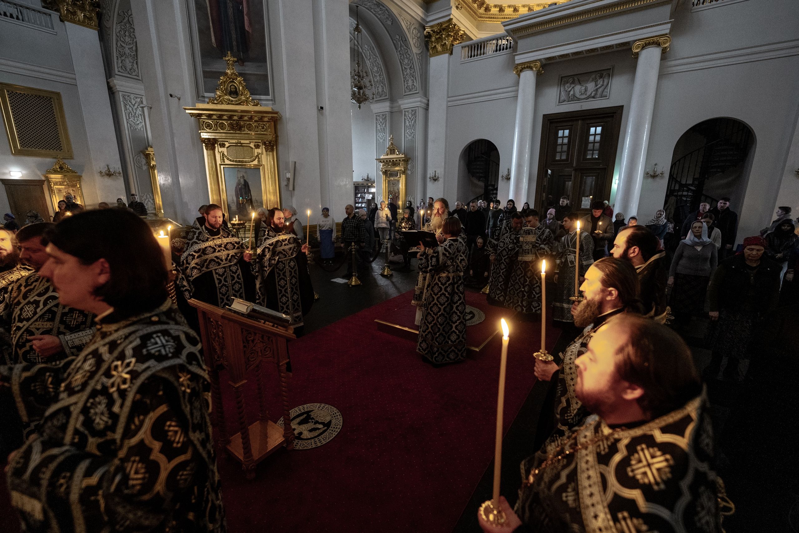 На богослужении было прочитано Евангелие от Матфея, повествующее о страданиях Спасителя.
