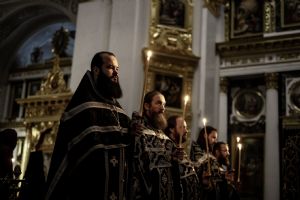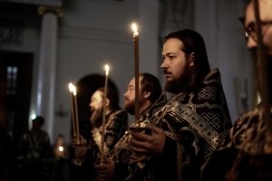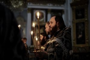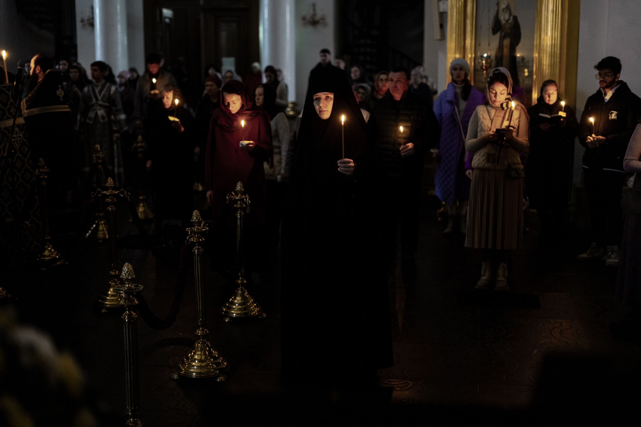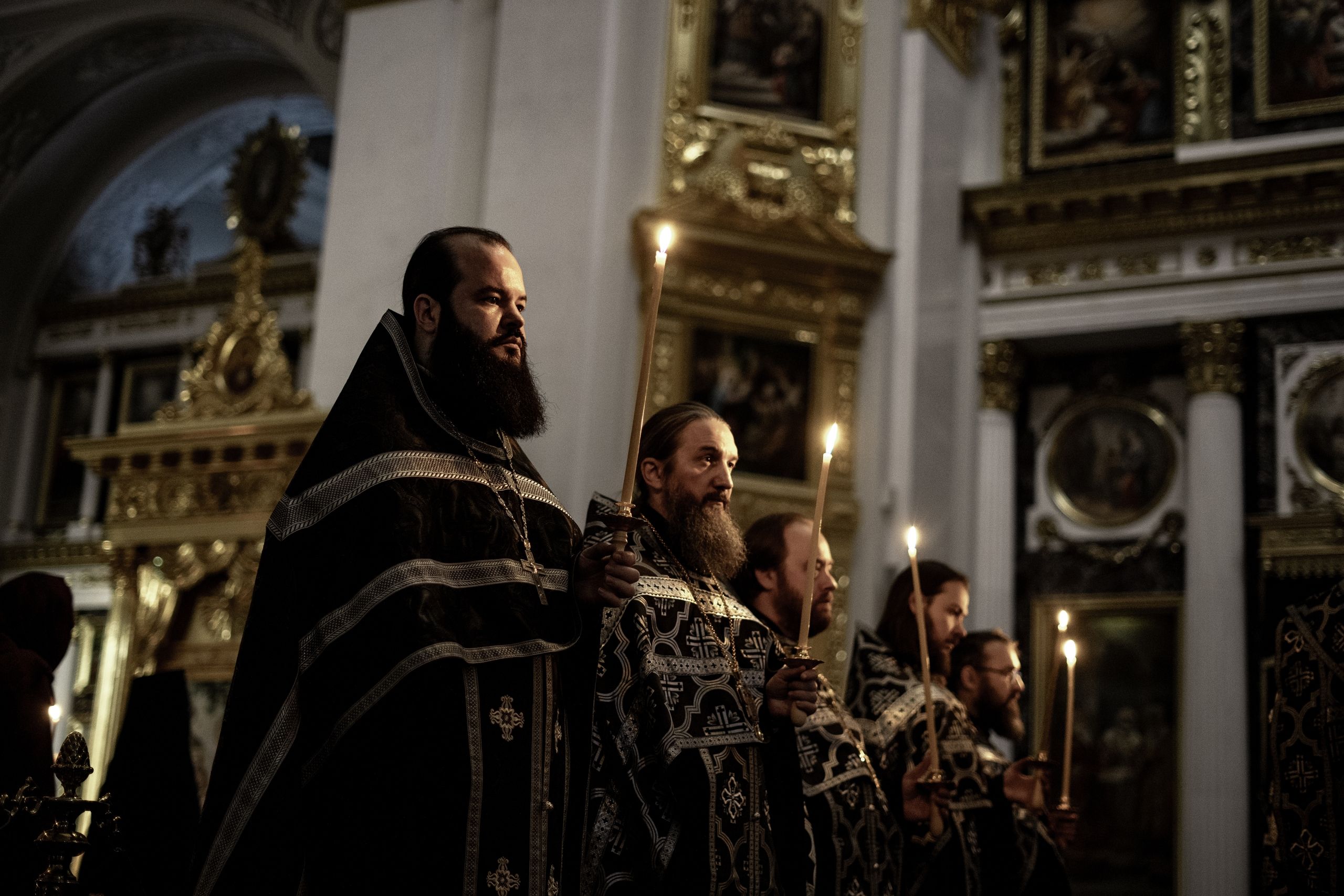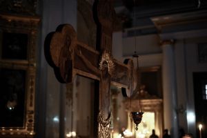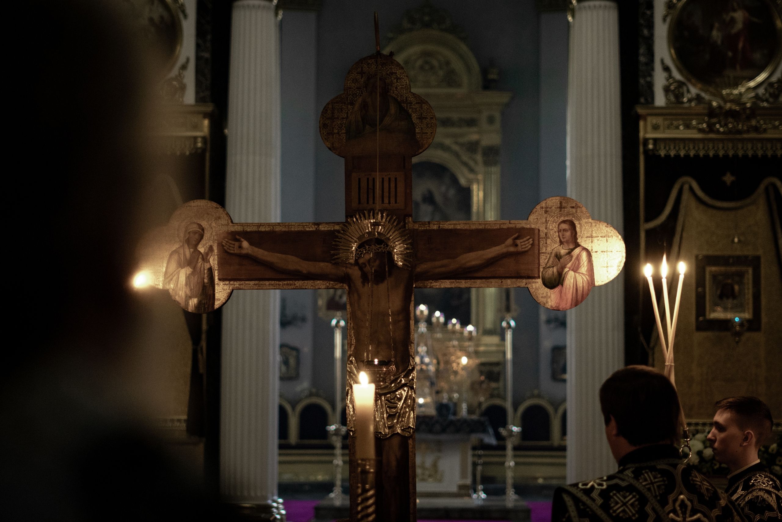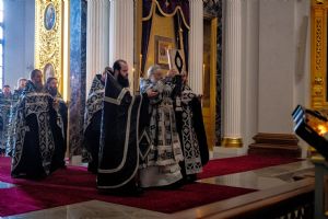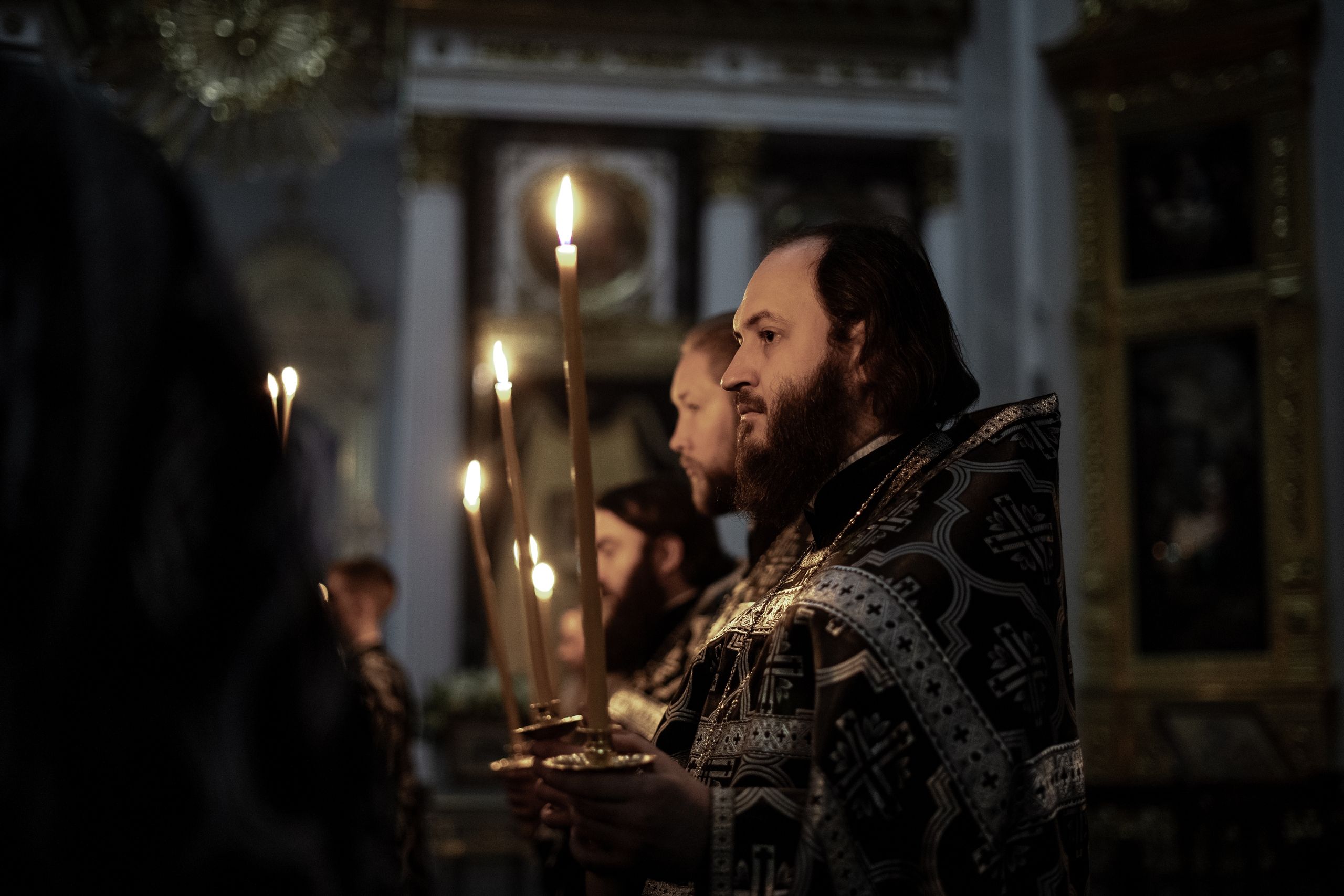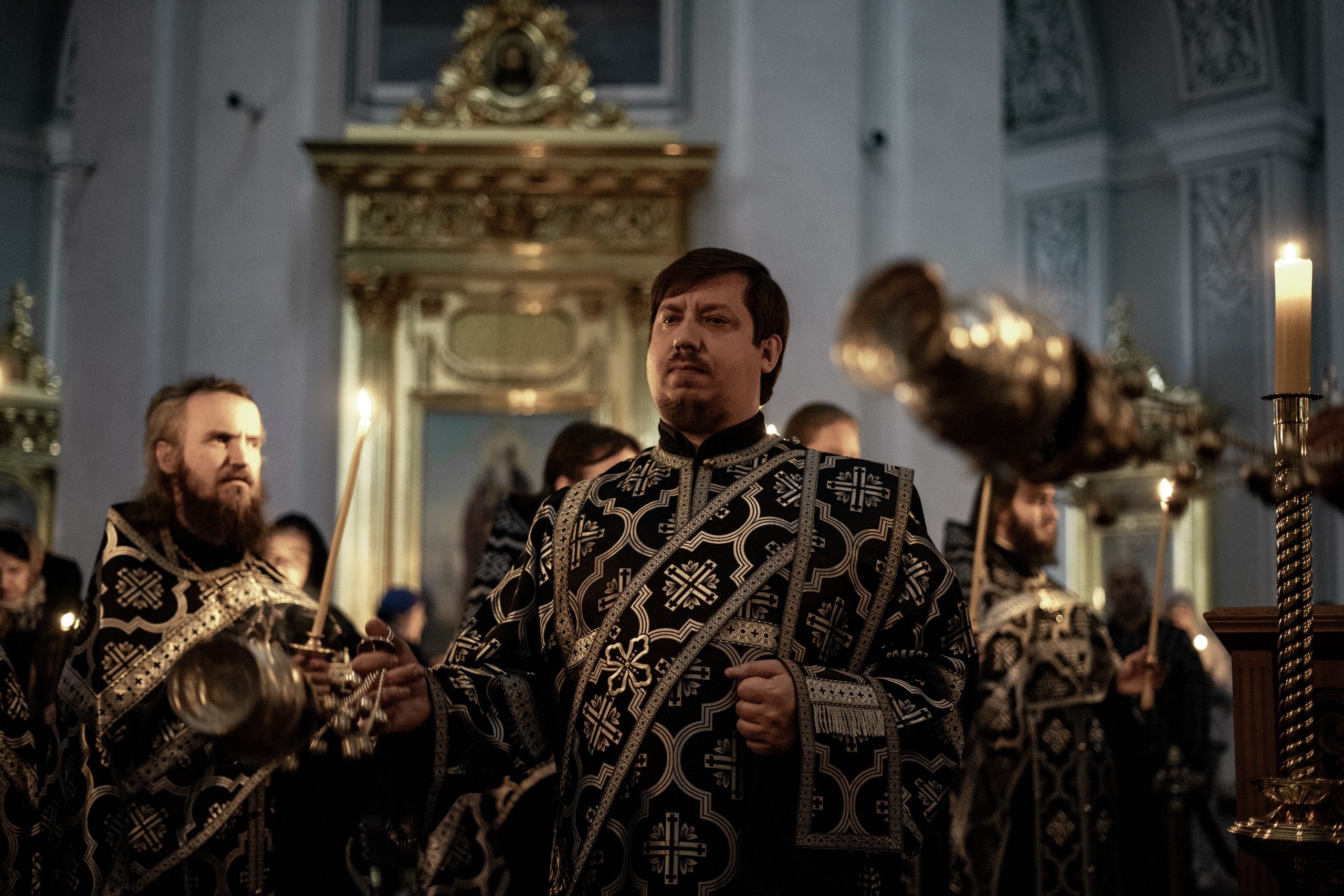 На богослужении было прочитано Евангелие от Матфея, повествующее о страданиях Спасителя.