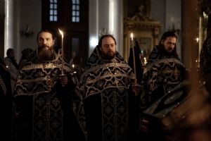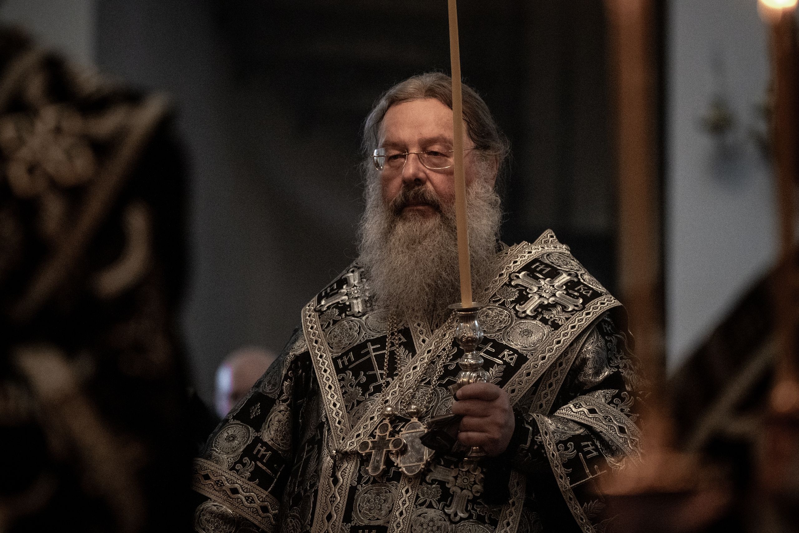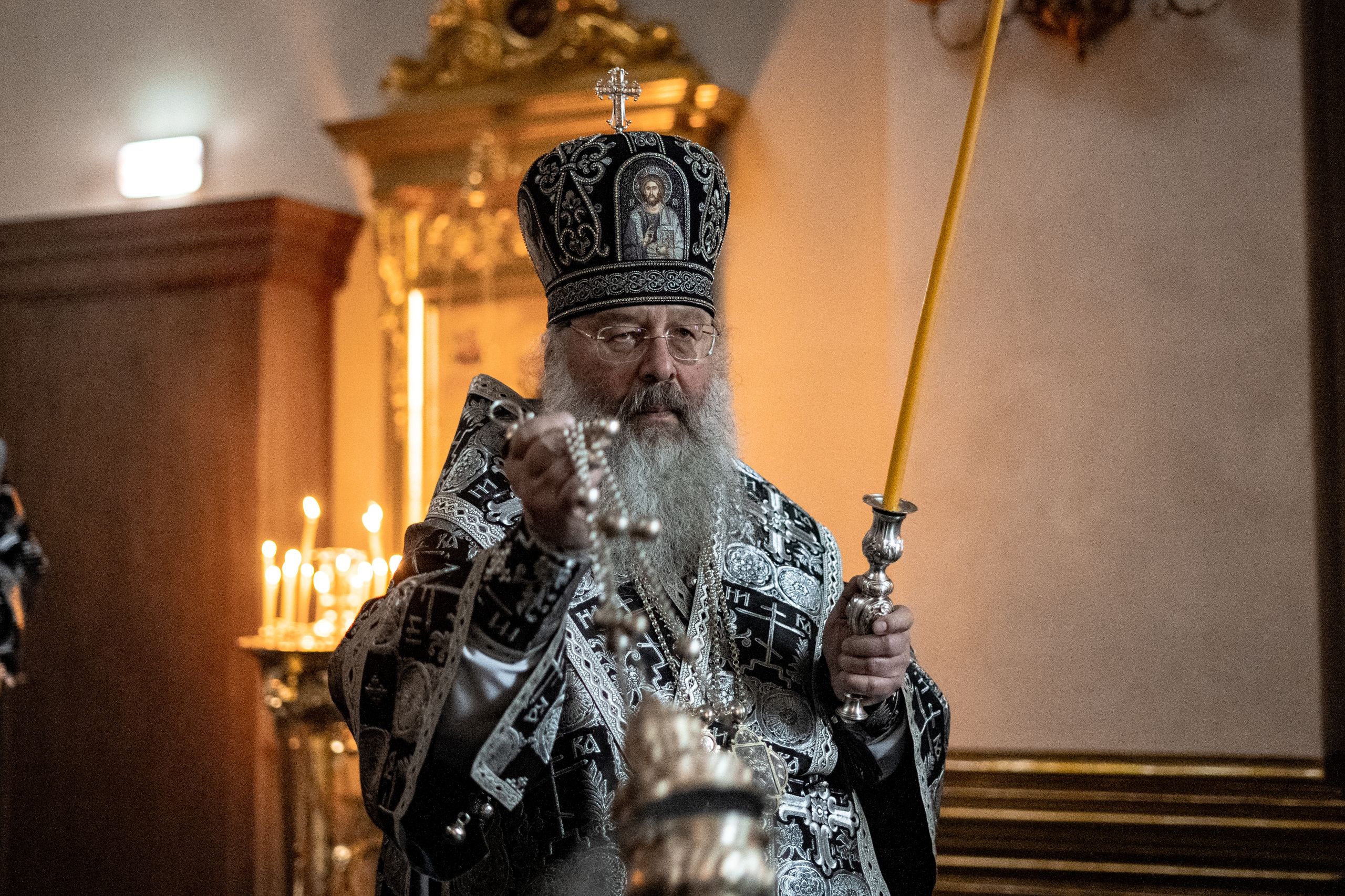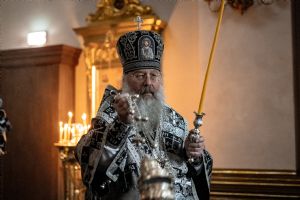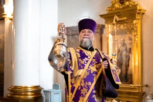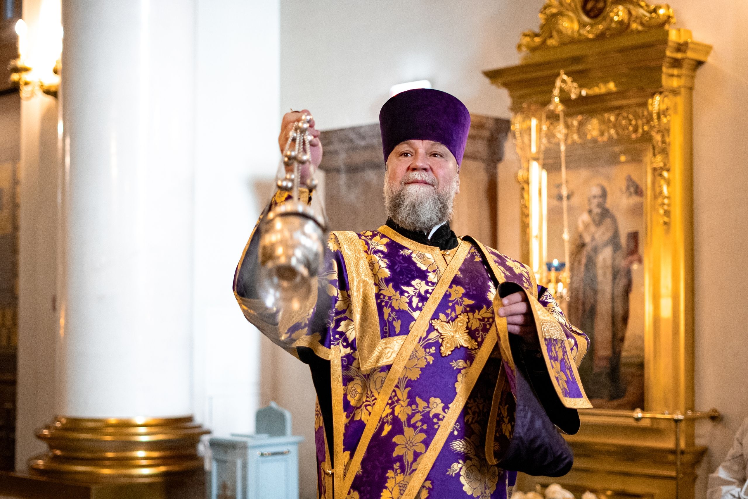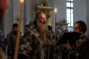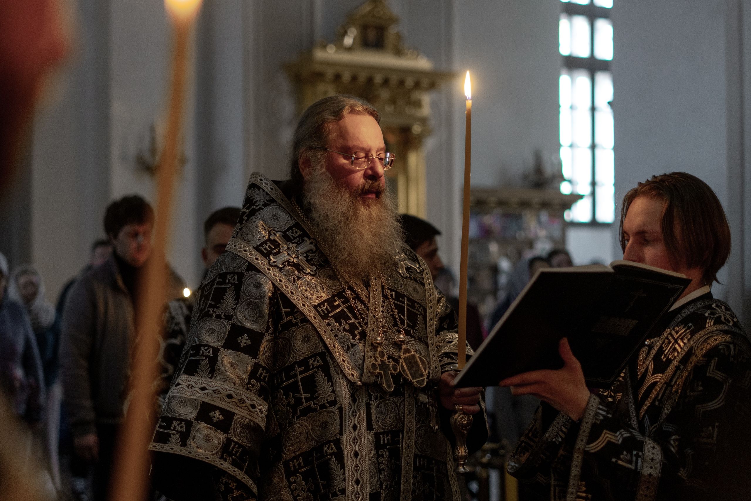 В алтаре собора молился епископ Рыбинский и Романово-Борисоглебский Вениамин.