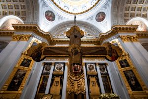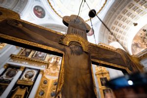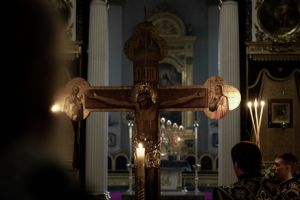 Часто от людей нецерковных или около церковных можно услышать: «Вот вы говорите, что ваш Бог есть любовь. А где же она? В чём проявляется, если вокруг войны, террористические акты, различные грабежи, убийства и так далее?» В двух словах им не объяснить, но никто не хочет долго и серьёзно побеседовать. Но мы с вами, православные христиане, это прекрасно знаем. Вершина этой любви — это вершина Голгофы, где стоит Крест, на котором пребывает Господь и Бог наш Иисус Христос с распростёртыми объятиями. Он хочет обнять всех нас и вместить в Своё вечное и блаженное Царство. Сейчас мы с вами будем прикладываться к кресту Господню. Давайте никогда не забывать, какой дорогой ценой куплено наше спасение. Аминь.