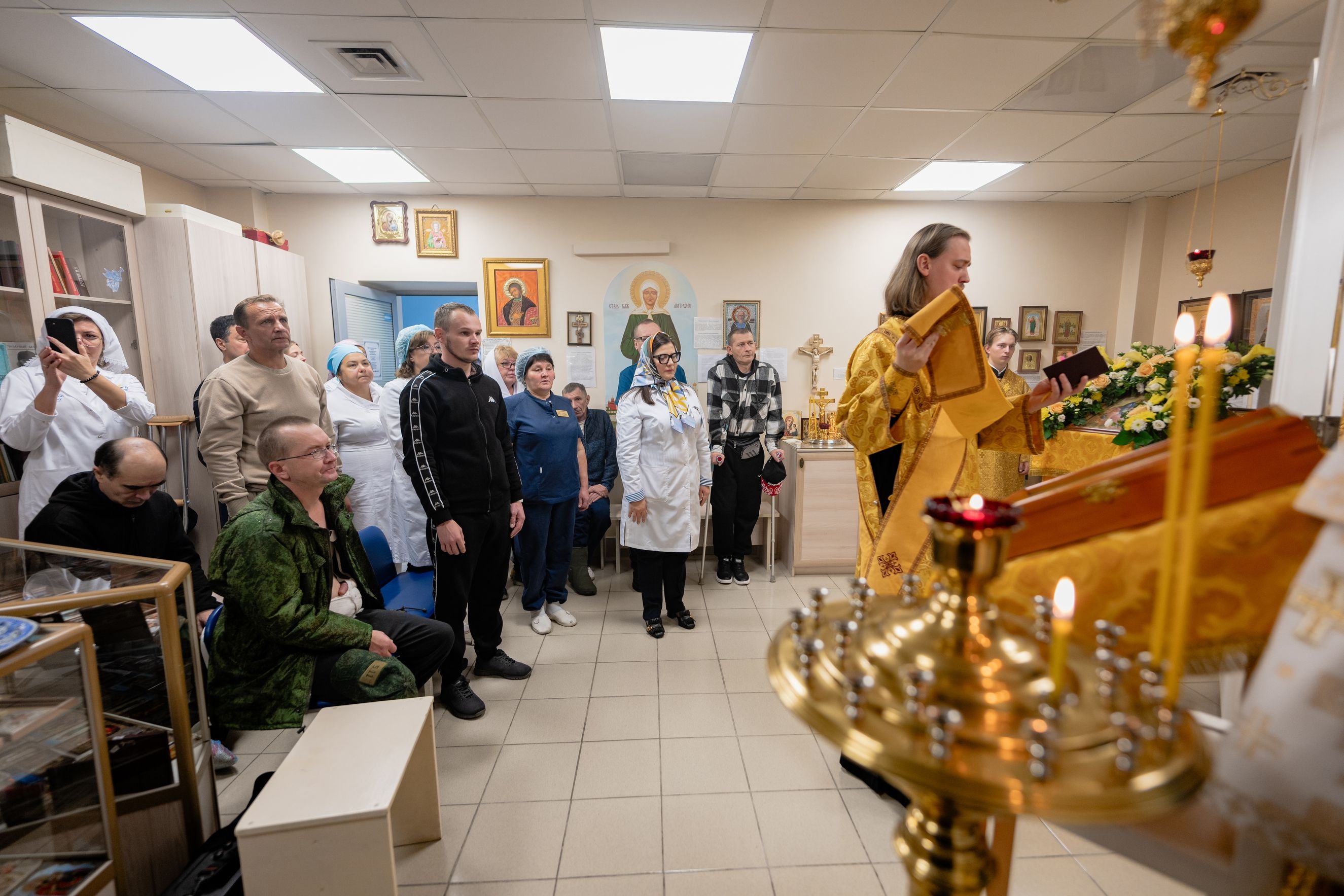 Всем болящим, находящимся здесь, от всей души желаем исцеления. Врачи сказали, что в стационаре находится 1380 человек. Это сложно представить! Население как в большом посёлке. Можно сказать, что здесь собралось целое село, которое жаждет исцеления, жаждет помощи. Слава Богу, эта помощь приходит. Мы надеемся, что вместе с профессиональной врачебной помощью всем находящимся здесь будет сопутствовать помощь нашего Всевышнего Господа. Верим, что Господь даст нашим докторам силы и мудрость и впредь помогать людям возвращаться к нормальной здоровой жизни.