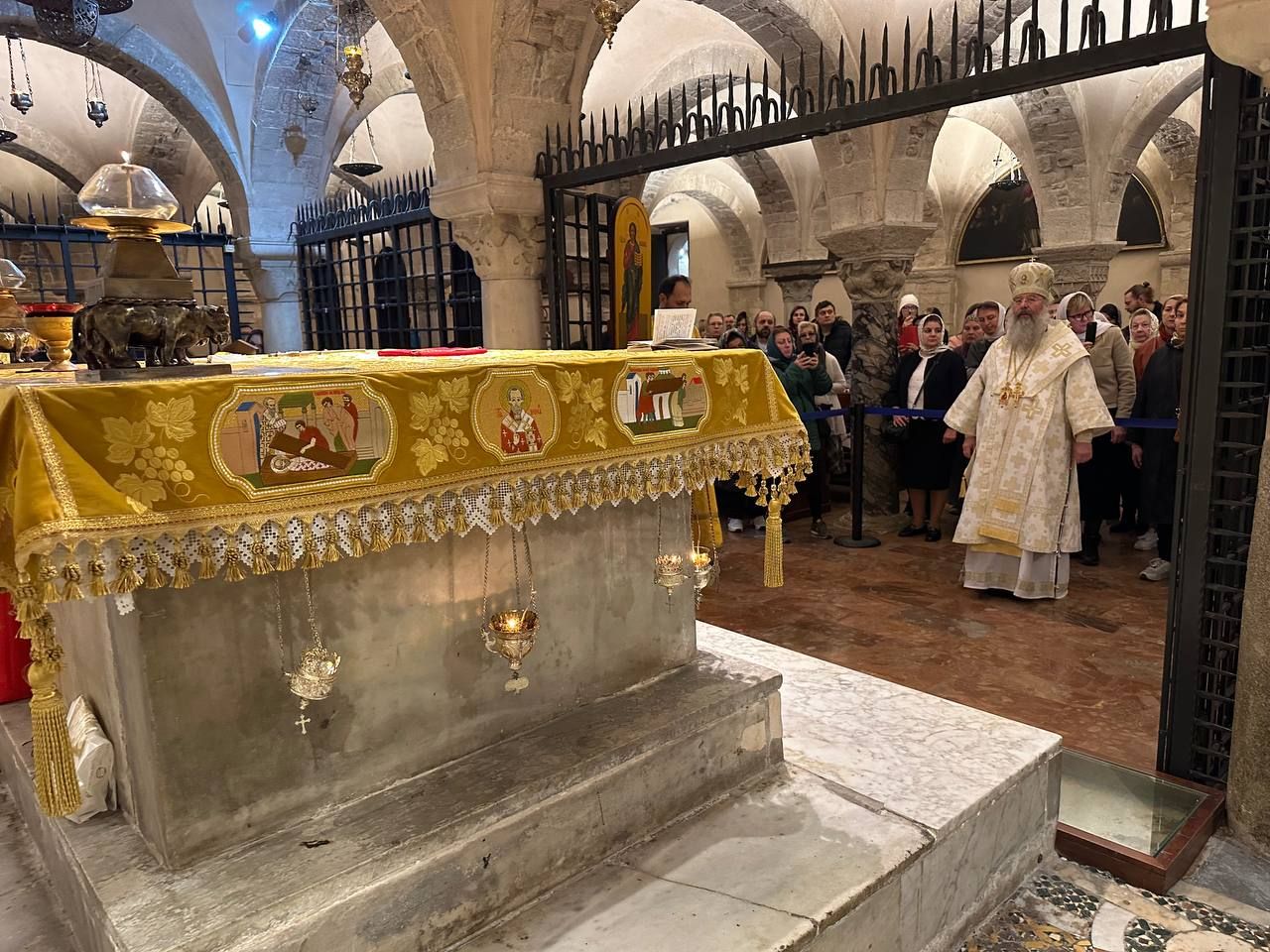 Сердечно приветствую всех, кто прибыл сюда, чтобы помолиться у мощей святителя Николая. Его молитвами Господь Бог да спасет и помилует всех нас с вами.