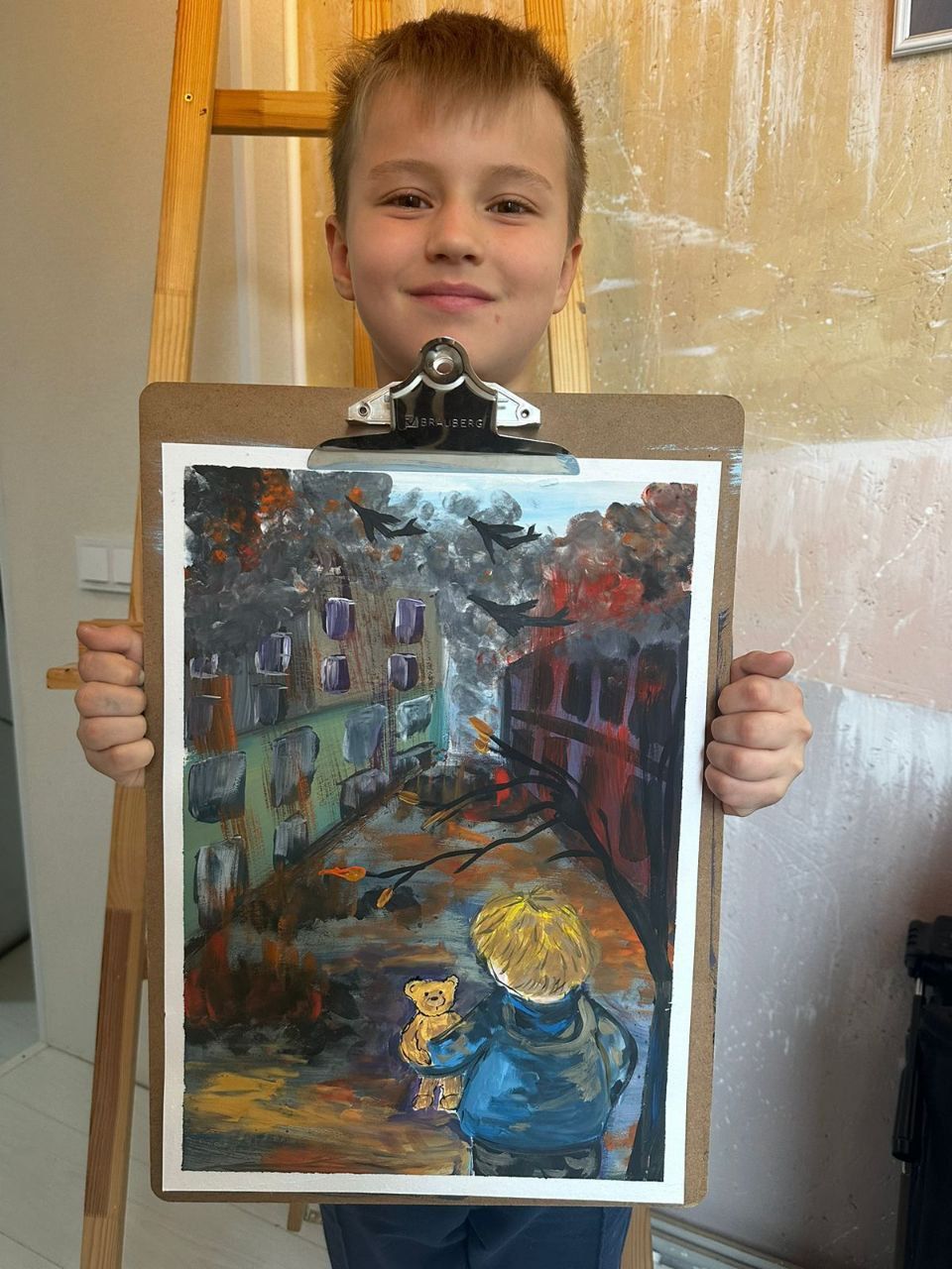 Специального приза телеканала «Радость моя» удостоен воспитанник воскресной школы храма преподобного Серафима Саровского города Казани Тимофей Захаров. 10-летний школьник представил работу «Потерянное детство», в которой отразил переживания детей, на чьих глазах разворачиваются боевые действия.