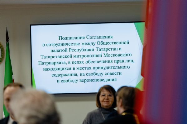 13 февраля 2025 года в Общественной Палате Республики Татарстан состоялось подписание соглашения о сотрудничестве между Общественной палатой РТ и Татарстанской митрополией Русской Православной Церкви. Стороны обязуются совместно содействовать обеспечению прав лиц, находящихся в местах принудительного содержания, на свободу совести и свободу вероисповедания. Подписи на документе поставили председатель ОП РТ Зиля Валеева и митрополит Казанский и Татарстанский Кирилл.