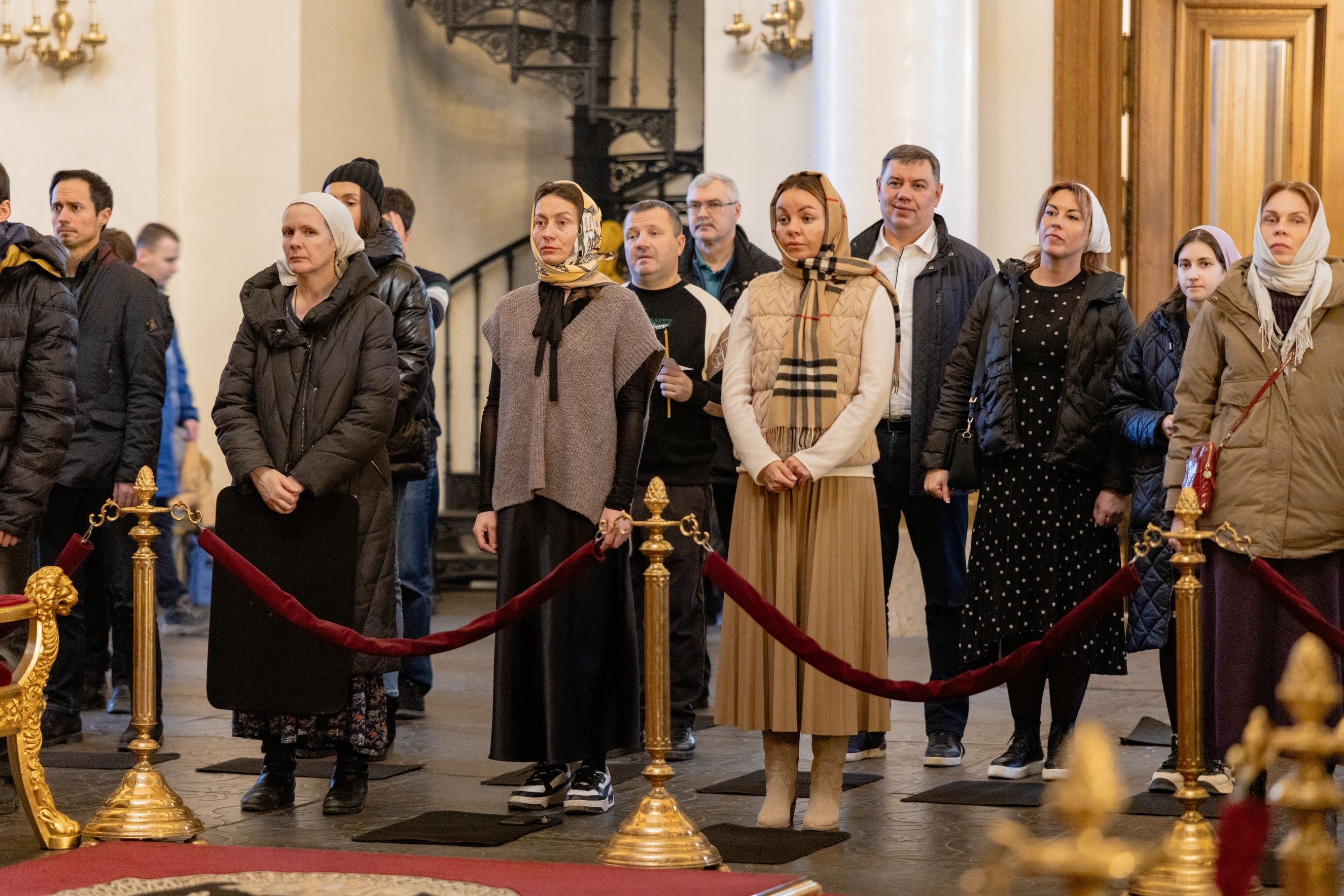 На богослужении было прочитано Евангелие от Марка, повествующее о страданиях Спасителя.