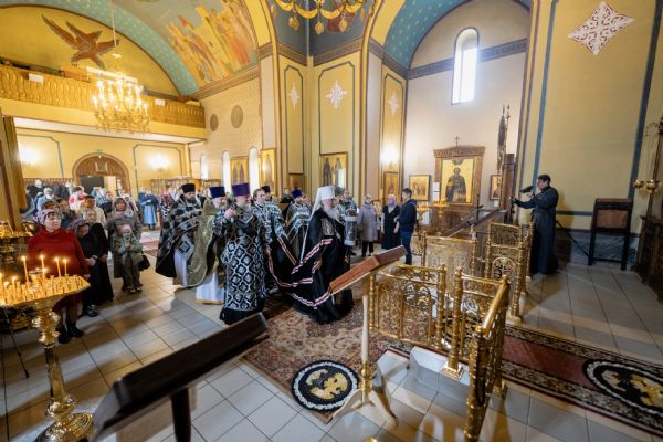На мирной и сугубой ектениях были вознесены молитвы о Российском воинстве и о мире. По запричастном стихе проповедь произнёс протоиерей Александр Павлов.