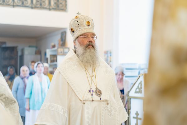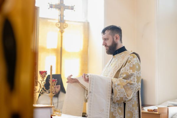 На мирной и сугубой ектениях были вознесены молитвы о Российском воинстве и о мире. По запричастном стихе проповедь произнёс иерей Артемий Серов. В завершение было совершено славление чествуемому ныне святому.