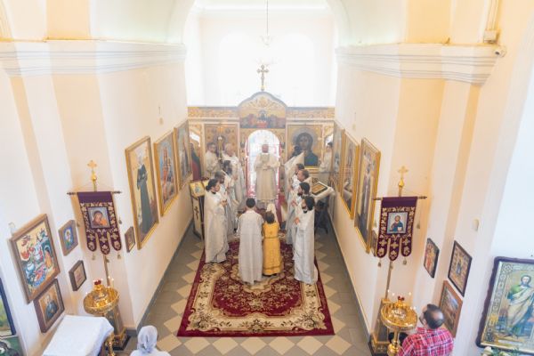 Его Высокопреосвященству сослужили секретарь Татарстанской митрополии иеромонах Кирилл (Корытко), благочинный I Казанского округа протоиерей Владимир Самойленко, настоятель Богоявленского собора протоиерей Алексий Державин, настоятель Введенского Кизического монастыря города Казани игумен Пимен Ивентьев, клирик храма благоверного князя Александра Невского города Казани протоиерей Сергий Хохлов, клирик храма Московских святителей города Казани иерей Артемий Серов, клирики прихода иерей Иоанн Тимофеев, иерей Роман Цвигуненко, иерей Павел Рыбочкин.