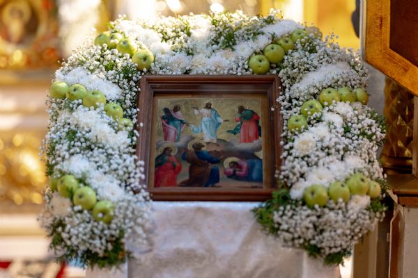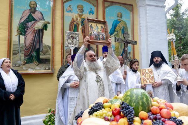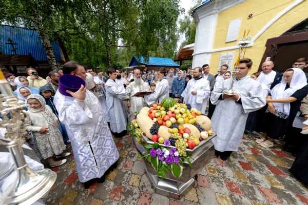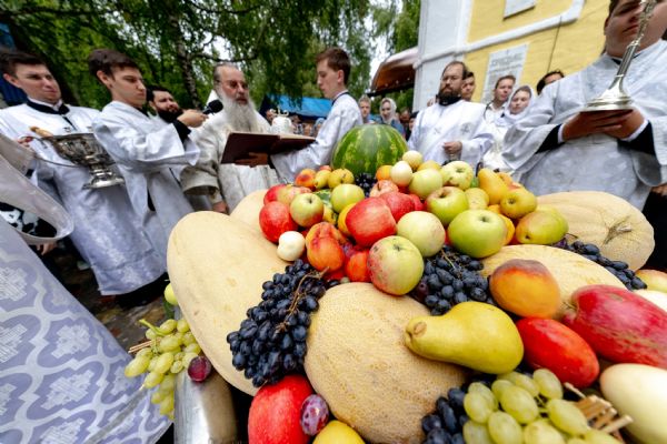 Но Христос Спаситель пришёл в этот мир, чтобы вернуть нас обратно и даровать нам полноту благодати и радости. Он пощадил нас и дал нам утешение, которое мы получаем особенно в праздничные дни, когда в храме освящаются вода и плоды. Сегодняшнее освящение плодов — отголосок той сладкой райской жизни, которой мы лишились, но которую Господь возвращает нам через труд, молитву, пост и всё то, через что человек должен пройти на этой земле.