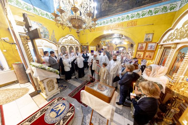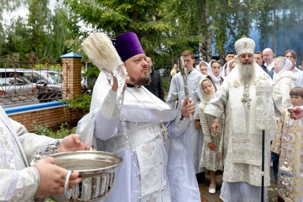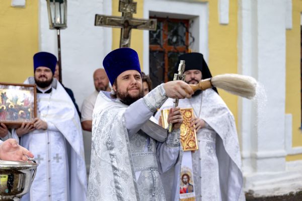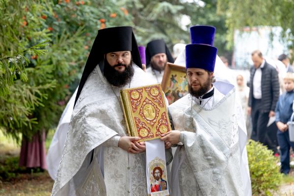 На мирной и сугубой ектениях были вознесены молитвы о мире и о Российском воинстве. По запричастном стихе проповедь произнёс иерей Никита Кузнецов. В завершение на территории храма состоялся крестный ход.