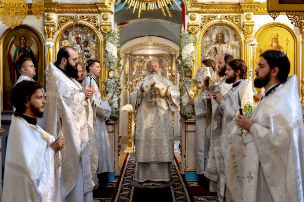 За Литургией Его Высокопреосвященству сослужили секретарь Татарстанской митрополии иеромонах Кирилл (Корытко), благочинный Лаишевского округа протоиерей Алексий Державин, ректор Казанской духовной семинарии иерей Никита Кузнецов, наместник Казанского Богородицкого монастыря игумен Марк (Виленский), настоятель Преображенского прихода иерей Роман Цвигуненко, клирик храма праведного Иоанна Кронштадтского при Казанской духовной семинарии иерей Павел Рыбочкин.