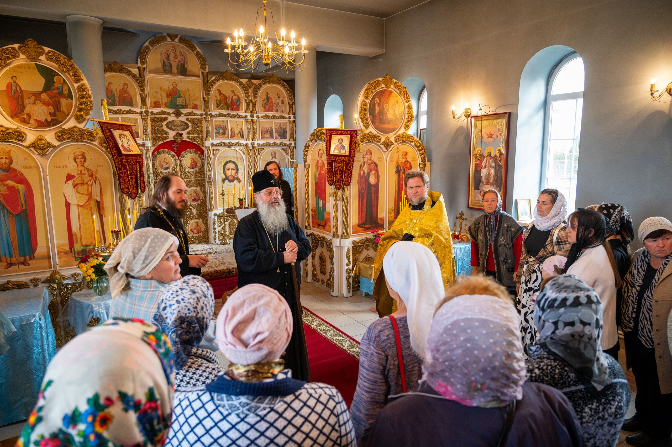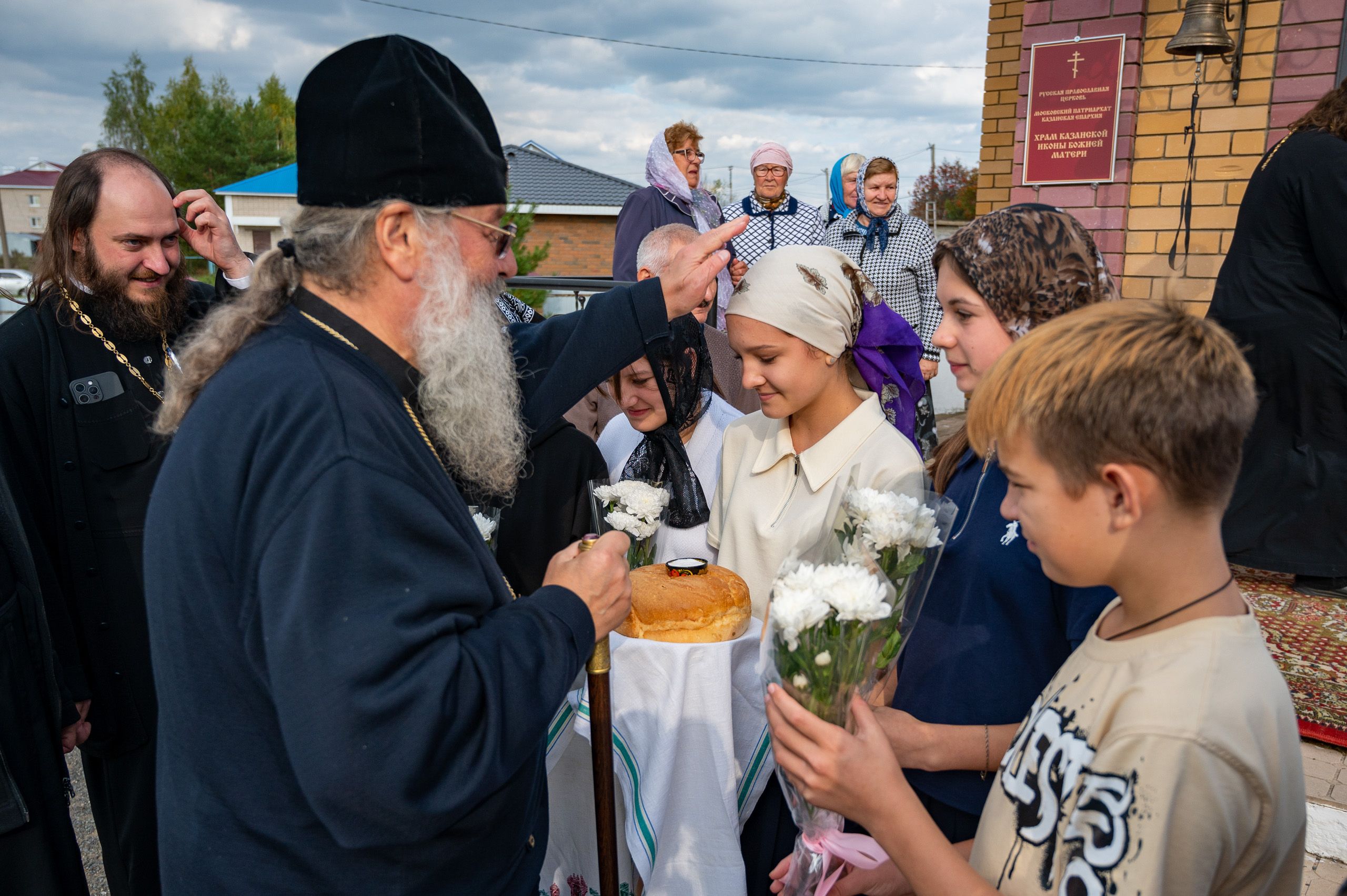 Первым владыка осмотрел храм Казанской иконы Божией Матери в селе Ленино-Кокушкино. Настоятель прихода протоиерей Сергий Мельников рассказал архипастырю о строительстве церкви, которое осуществлялось с 2006 по 2012 год, о развитии приходской жизни, о работе воскресной школы, где проводятся вероучительные и творческие занятия для детей и взрослых. Владыка поблагодарил отца Сергия за труды и благословил готовить храм к великому освящению. Архиерей пообщался с прихожанами, передал им Казанские иконы Божией Матери с Патриаршим благословением.
