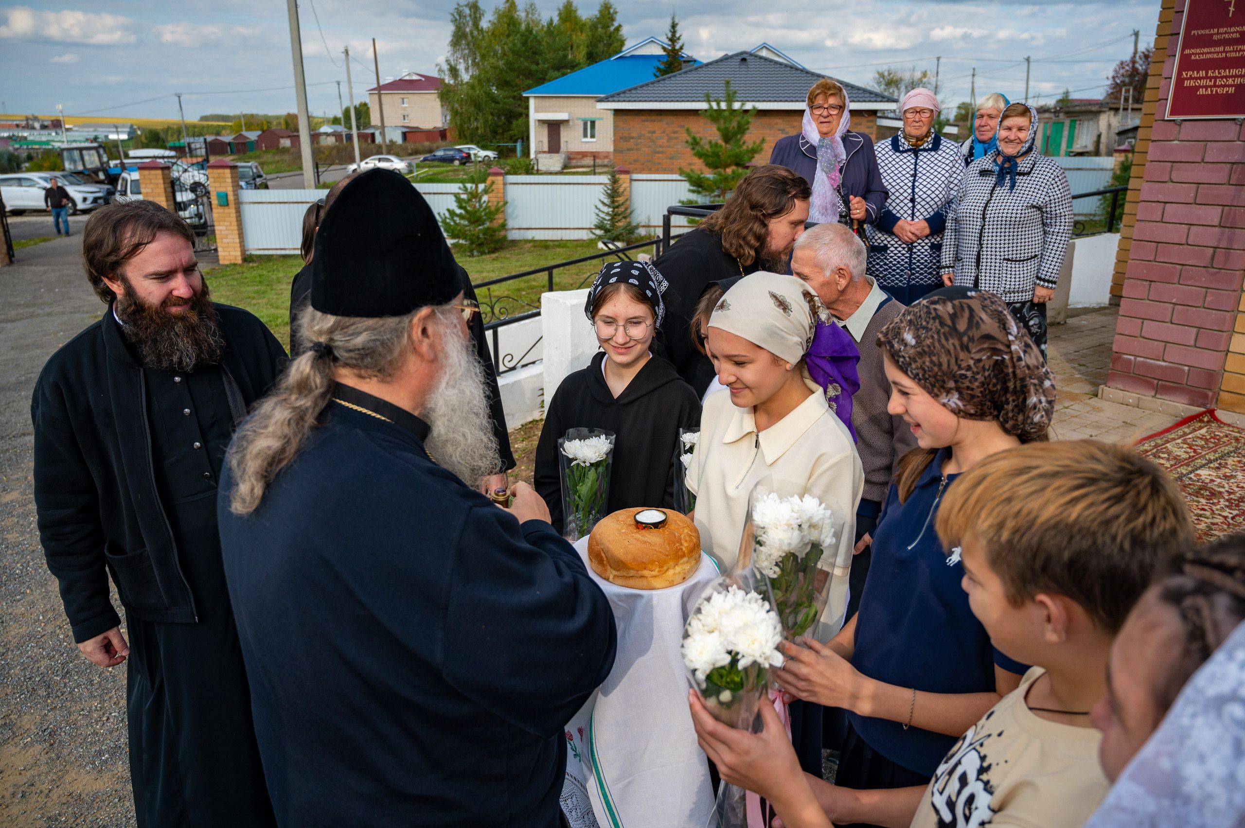 Затем митрополит Кирилл в сопровождении Раиса Сулейманова прибыл в село Ковали. Владыка посетил часовню-купель во имя Архистратига Божия Михаила, которая была освящена 13 января 2024 года. У входа в часовню архипастыря приветствовали местные жители. Представители кряшенской общины исполнили народные песни. Владыка пообщался с верующими за трапезой.