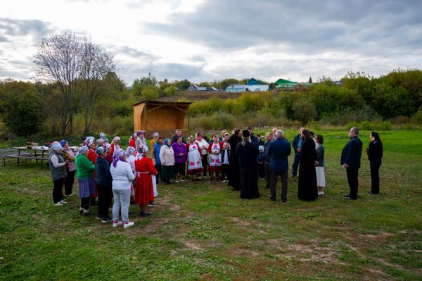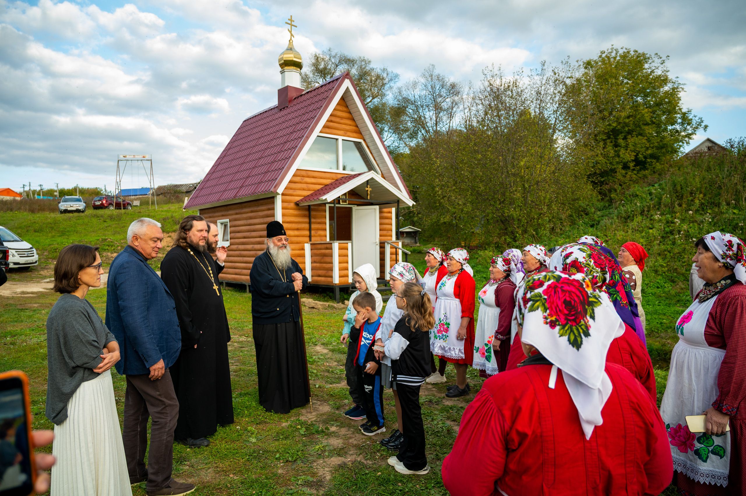 В завершение митрополит Кирилл и Раис Сулейманов осмотрели деревянный храм Архангела Михаила в селе Ковали. Глава Татарстанской митрополии и глава Пестречинского района обсудили вопросы восстановления святыни и ответили на вопросы региональных СМИ.